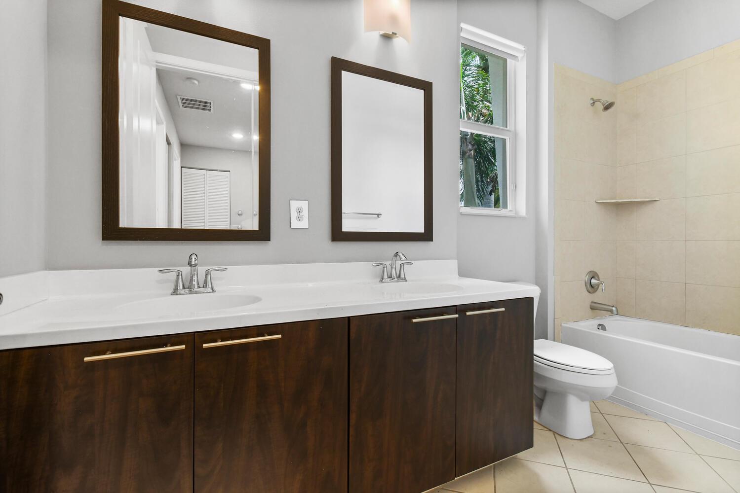 In the heart of Central Boca Raton, within an A+ rated school district, lies this stunning 3-bedroom, 2-bath townhome in the exclusive gated community of Centra. This luxurious corner unit offers exceptional space, natural light, and designer details throughout. From the elegant marble floors and rich Chicago brick accents to the open, airy floor plan, every detail creates a warm and welcoming ambiance.The stylish, modern kitchen features shaker-style cabinetry, granite countertops, stainless steel appliances, and a large island perfect for entertaining or everyday living. The expansive primary suite boasts a private balcony, an oversized walk-in closet, and a spa-like ensuite with dual sinks, a soaking tub, and a glass-enclosed shower.Additional highlights include a spacious