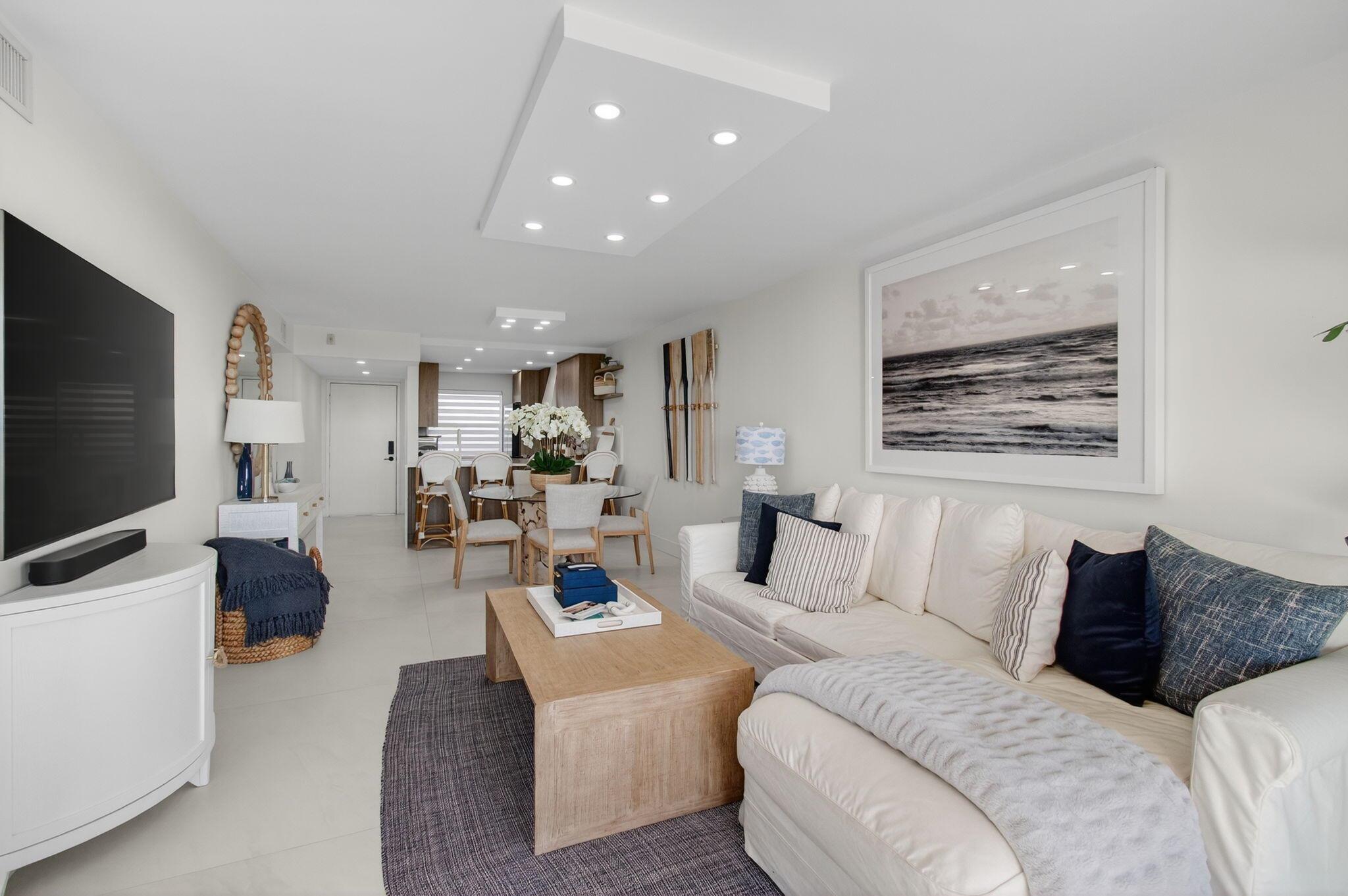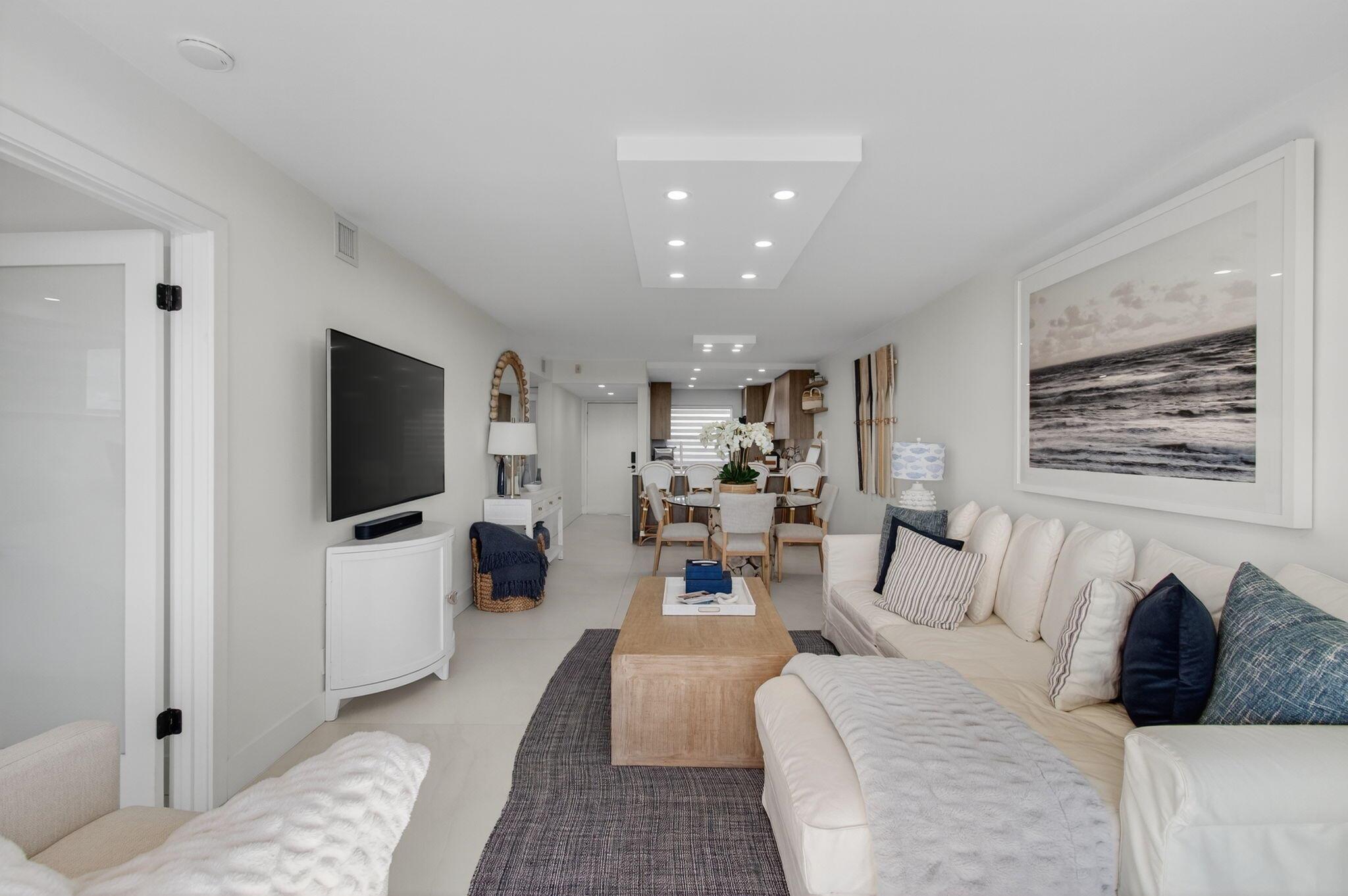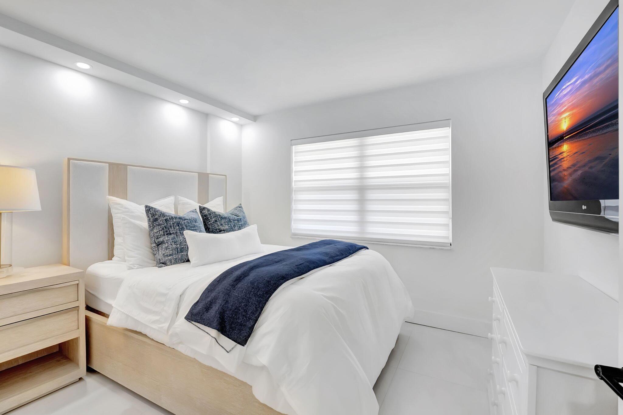Experience luxurious coastal living in this stunning, modern 2-bedroom, 2-bathroom top-floor corner unit, offering breathtaking pool views. Available for the month of January 2026. Also, May through October (off season price), with a preferred stay of four months, this residence is fully furnished by a professional decorator. The gourmet kitchen features quartz countertops and ample cabinet space, ideal for culinary enthusiasts. The apartment boasts large-format white porcelain flooring throughout, creating a sleek and cohesive look. The thoughtfully designed split bedroom layout allows for privacy and comfort, with electric window treatments enhancing convenience. Step out onto the spacious balcony that overlooks the pool, providing a serene retreat to relax and enjoy the scenery