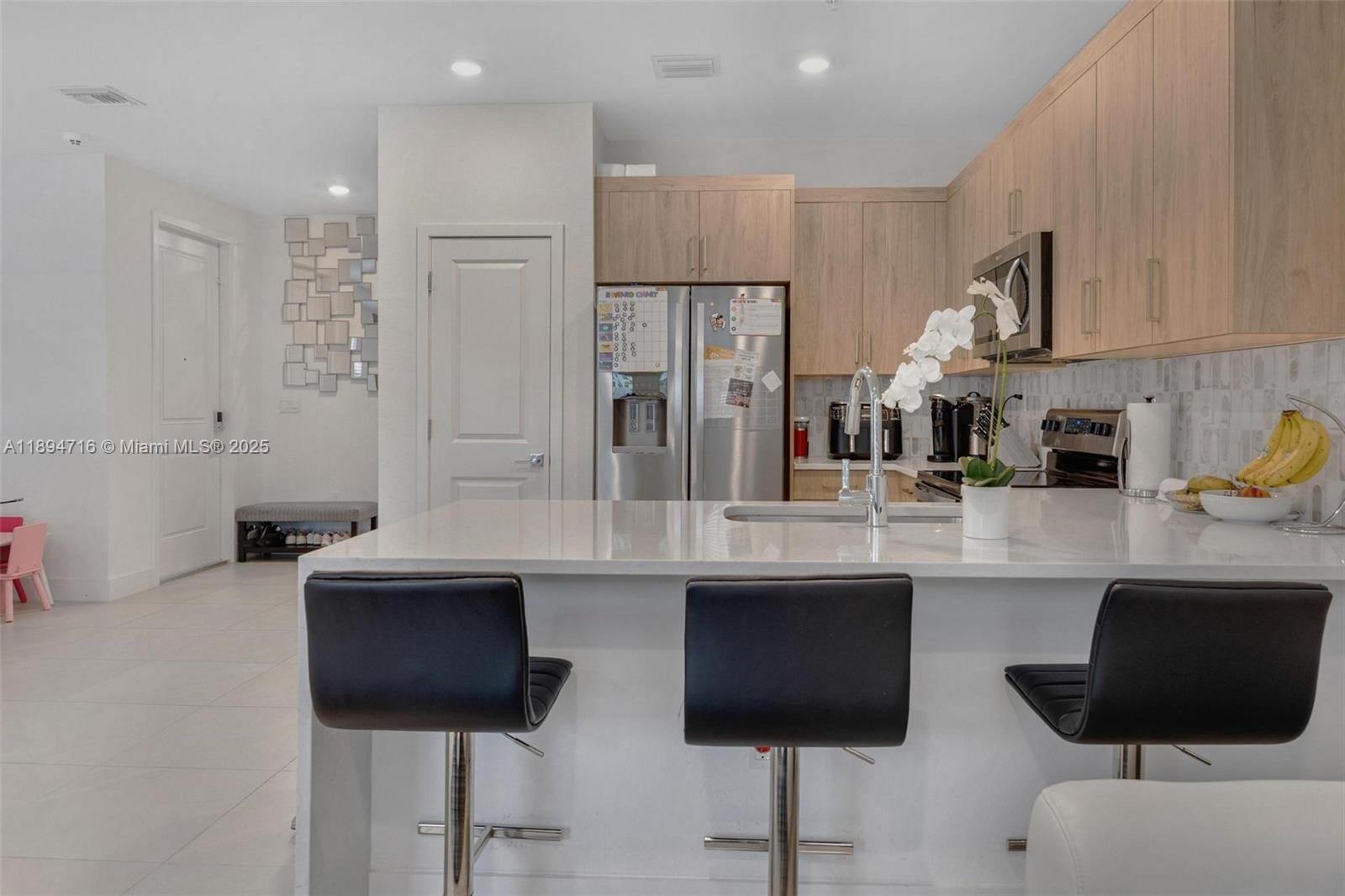 Stunning 4-bedroom / 3-bath corner townhouse in the desirable Merrick Square community! This modern home offers an open layout with a convenient first-floor bedroom and bath — perfect for guests or extended family. Enjoy high-end finishes throughout: quartz countertops, waterfall island, tile flooring, frameless glass showers, smart home features, and a water filtration system. Offered fully furnished, with furniture negotiable if preferred. Move-in ready and beautifully maintained — come see it today!