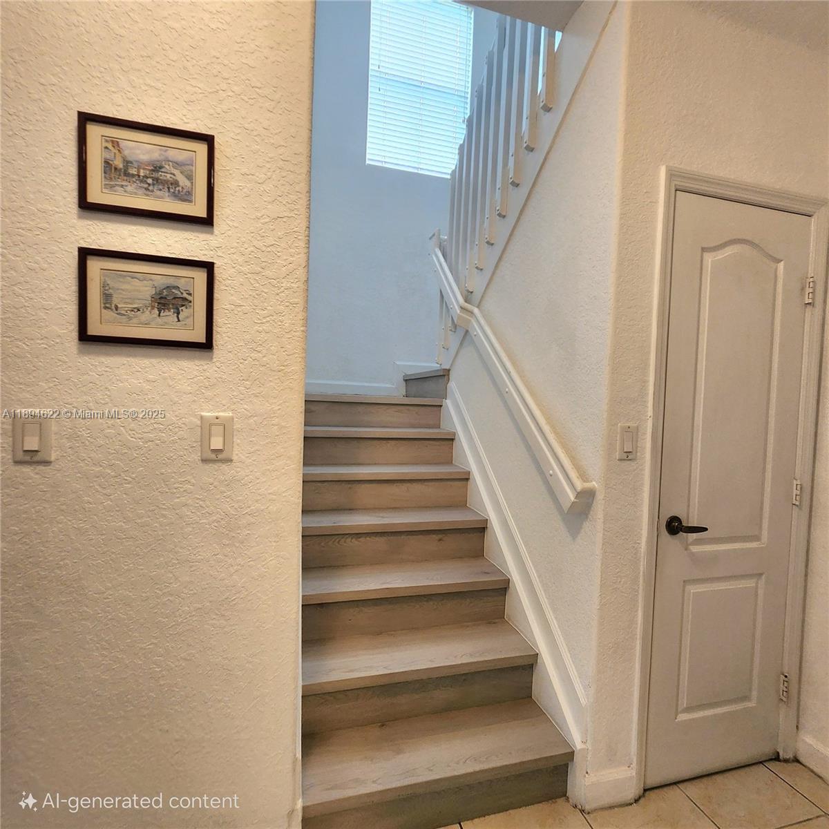 Live in style in this beautiful coach home with a functional layout. The first floor offers a bedroom and full bath, ideal for guests or elderly family members. The second floor is fully renovated with new flooring, three bedrooms, two bathrooms, and a laundry area. Enjoy a private patio, a two-car garage, and a spacious driveway for three more vehicles. Excellent location in a community with pool, gym, and green spaces. Close to A+ schools, parks, restaurants, and major highways.