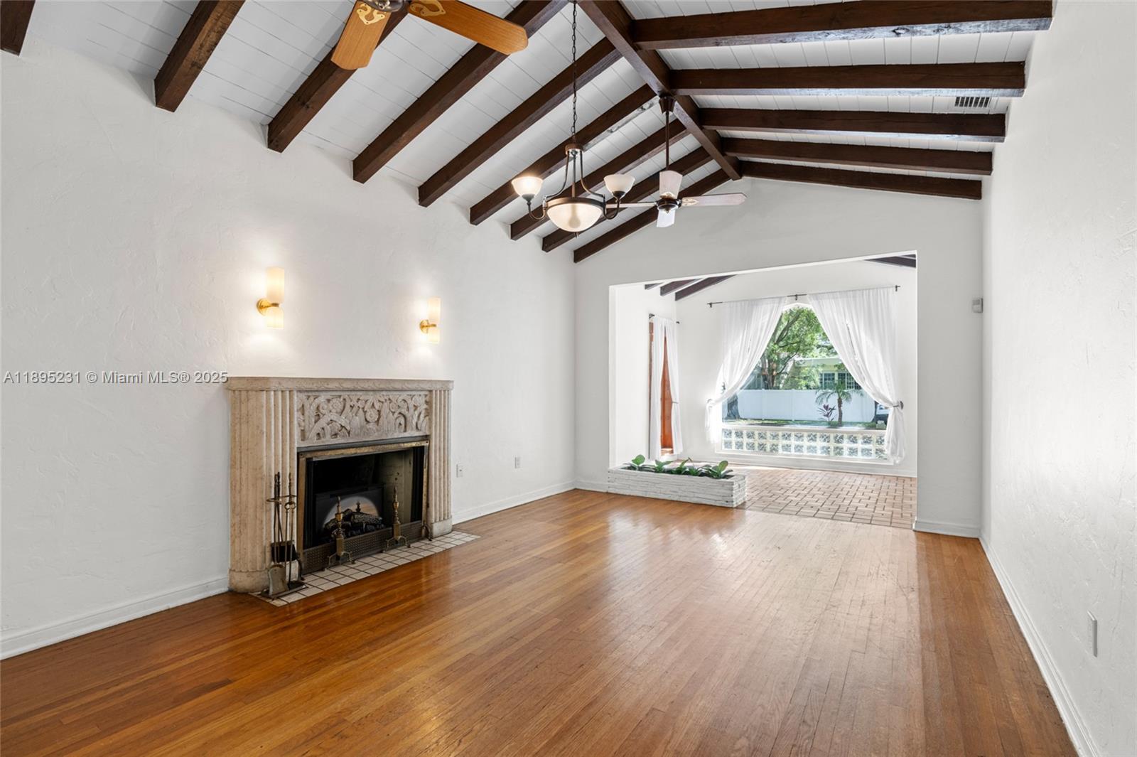 Welcome to this beautifully updated Art Deco–inspired home in the heart of Miami Shores! Featuring 3 bedrooms, 2 baths, and over 2,100 sq ft of living space, this residence offers timeless charm with modern updates. Enjoy 10’ ceilings with exposed wood beams, a spacious family room overlooking the new patio, formal dining area, and remodeled bathrooms. The stylish kitchen includes a hardwood peninsula, gas range, stainless steel appliances, and a deep single-bowl sink. Additional features include a new AC with Nest thermostat, tankless water heater, 1-car garage with storage, and circular driveway with parking for 3 cars. Near Miami Shores Country Club.