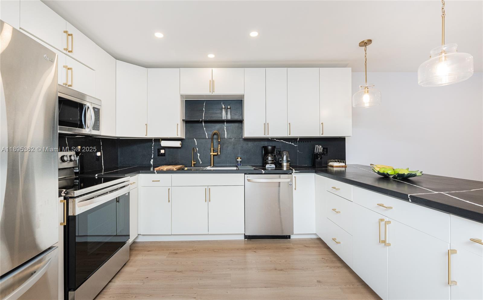 A fully remodeled and spacious 1 bed, 1.5 bath unit with charming garden views from the balcony. The unit features an open floor plan, a custom-designed kitchen with top-of-the-line appliances, and a stunning granite countertop illuminated by recessed lighting. Located in the Olympus Complex in the heart of East Hallandale on Three Islands, the condo offers state-of-the-art amenities, including a modern gym with a sauna, billiard room, table tennis, two pools (one Olympic-sized), five tennis courts, a BBQ picnic area, covered gated bike storage, a car wash, and Intracoastal access with private boat docks.