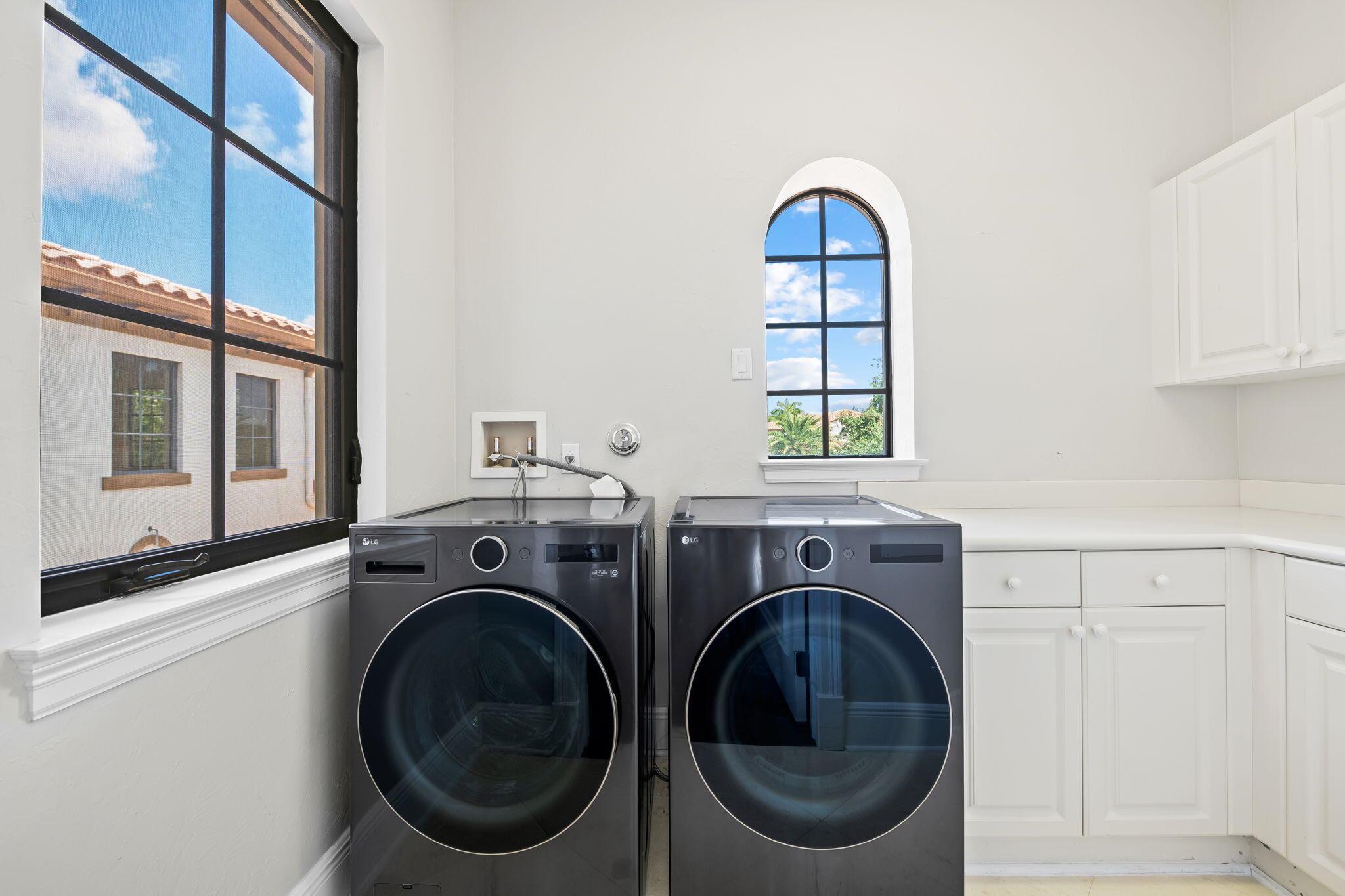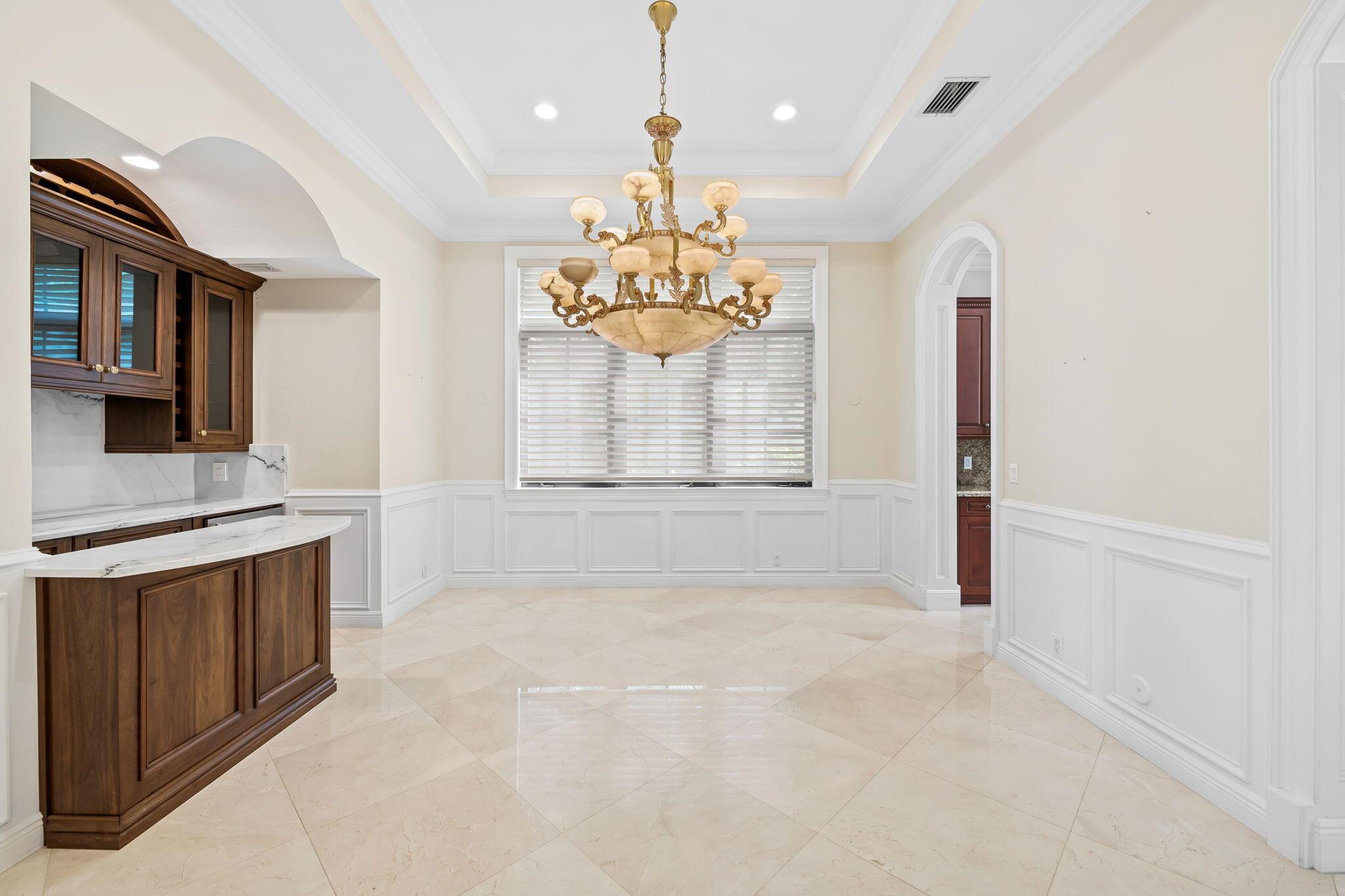 This stunning home offers breathtaking golf and water views, making it a true gem in Parkland Golf. Constructed with CBS materials, including the second floor, and equipped with all impact windows and doors, this Tuscan-inspired residence ensures both safety and elegance. Boasting five bedrooms, four and a half baths, and a spacious three-car garage, this home is situated on one of the most sought-after streets, featuring large lots and fantastic views.Upon entering, you'll be captivated by the soaring ceilings, intricate crown moldings, solid core doors, and numerous architectural details that add a touch of sophistication throughout. The first floor includes a guest suite with a sitting area, providing a comfortable and private space for visitors. The formal living room,