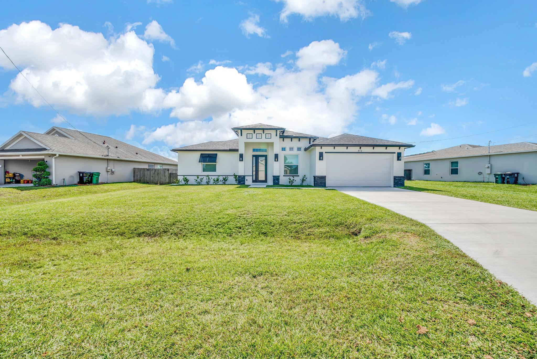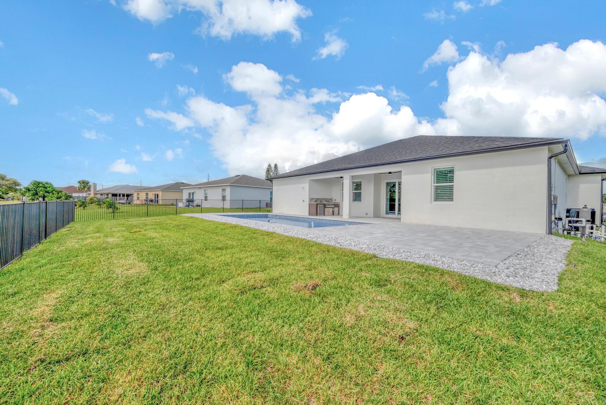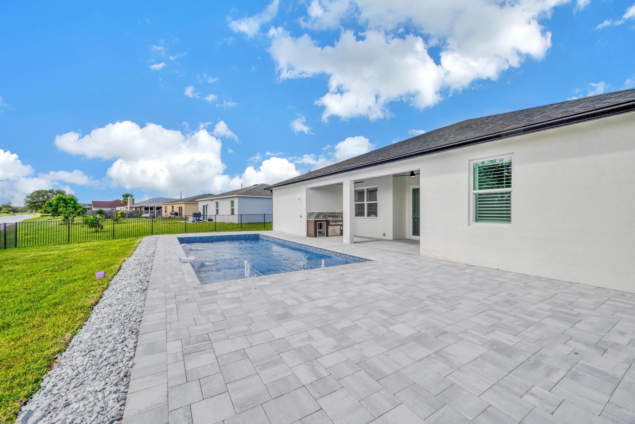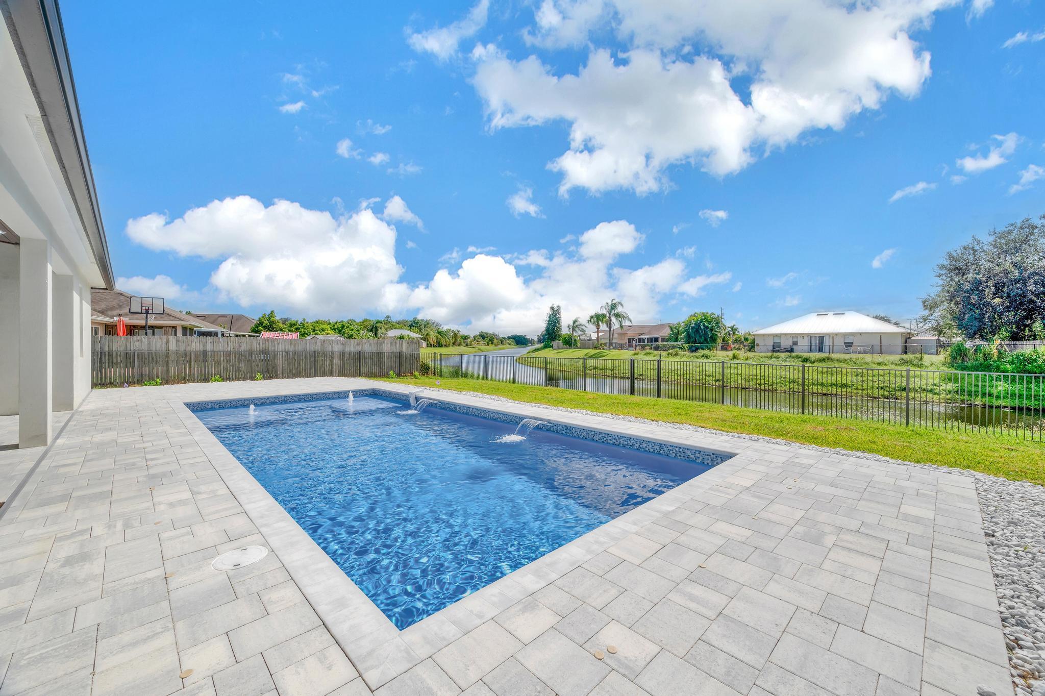 Spectacular BRAND NEW POOL HOME in prime location on the Treasure Coast ! 4 bedroom + DEN/ 3 bath / 2 car garage and BRAND NEW HEATED NEW POOL . This house features all bells and whistles: wood like tile, gourmet kitchen, OPEN PLAN LIVING AREA, TWO MASTER SUITES, 2 car garage, outdoor kitchen, salt water heated POOL ,SUMMER KITCHEN and FENCE! Enjoy Florida outdoor living in this amazing pool home overlooking the canal. IMPACT GLASS WINDOWS THROUGHOUT! Minutes to TRADITION & MET STADIUM .Easy access to main roads, short drive to the beach. Lawn care and irrigation and indoor PEST control included in the rent price. Probably one of the nicest homes in the area with no HOA. Note this is UNFURNISHED rental . Also available for FURNISHED seasonal rental, min 3 months @7.5k a month in season