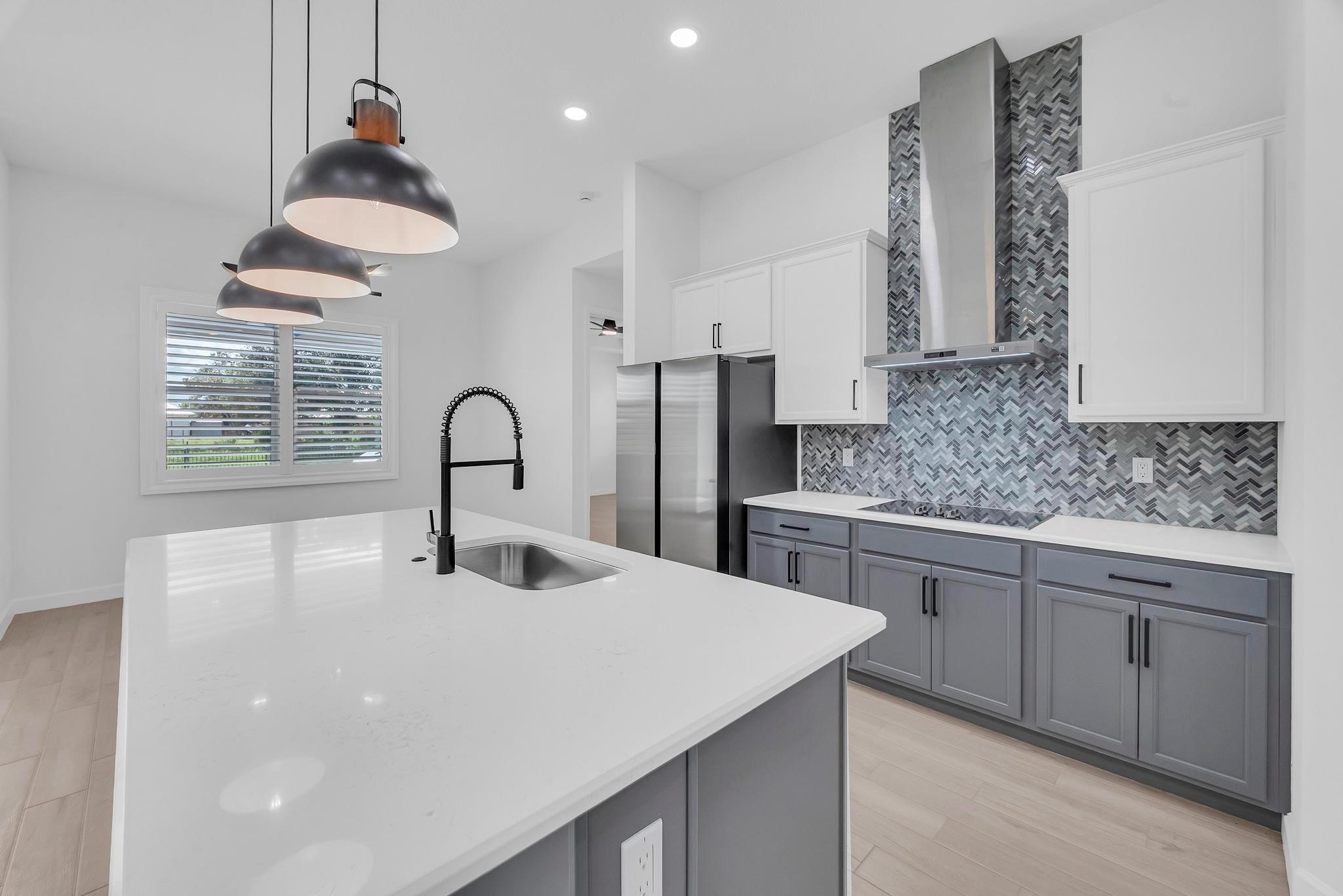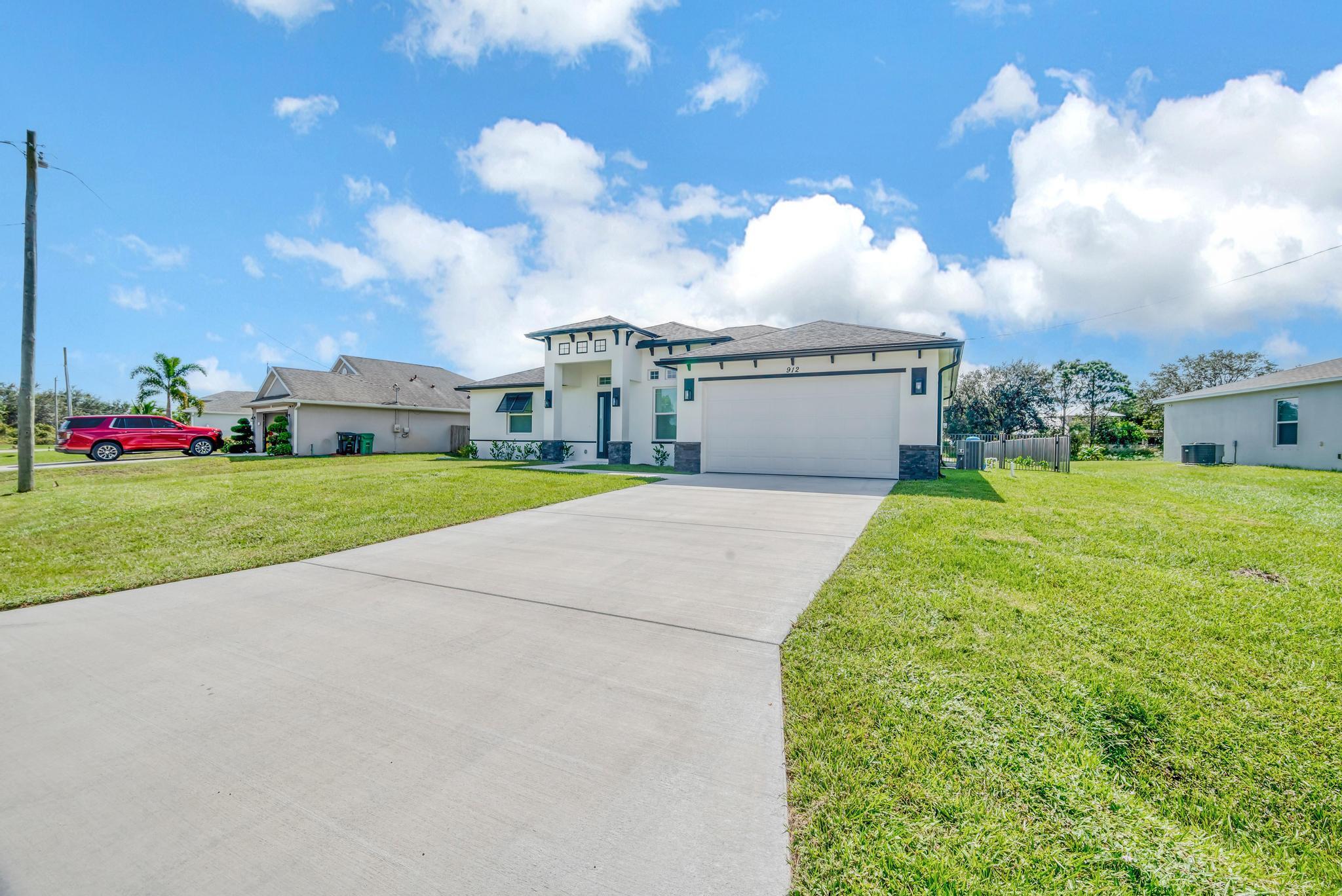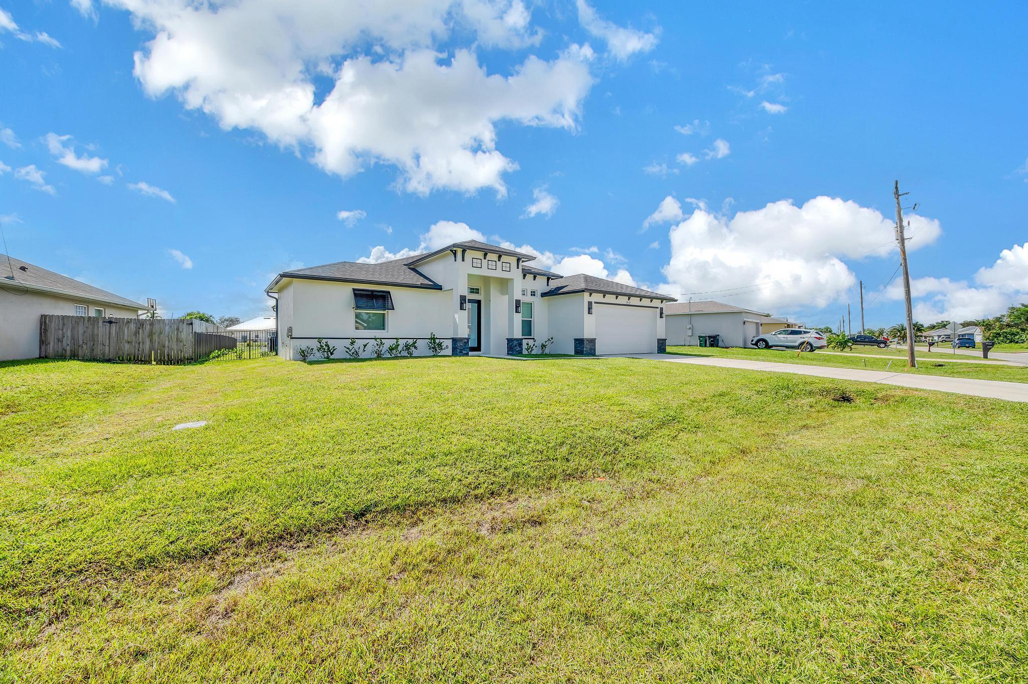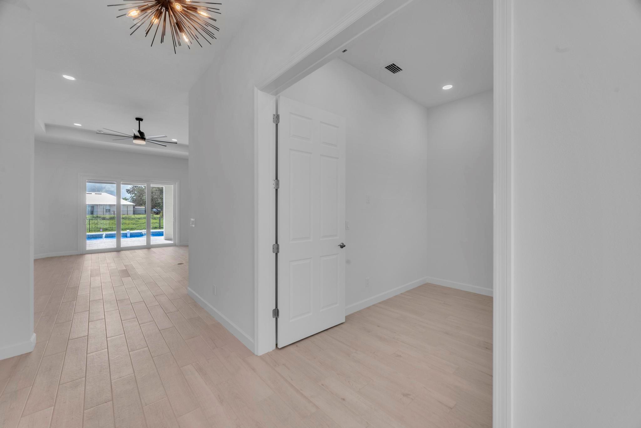 Spectacular BRAND NEW POOL HOME in prime location on the Treasure Coast ! 4 bedroom + DEN/ 3 bath / 2 car garage and BRAND NEW HEATED NEW POOL . This house features all bells and whistles: wood like tile, gourmet kitchen, OPEN PLAN LIVING AREA, TWO MASTER SUITES, 2 car garage, outdoor kitchen, salt water heated POOL ,SUMMER KITCHEN and FENCE! Enjoy Florida outdoor living in this amazing pool home overlooking the canal. IMPACT GLASS WINDOWS THROUGHOUT! Minutes to TRADITION & MET STADIUM .Easy access to main roads, short drive to the beach. Lawn care and irrigation and indoor PEST control included in the rent price. Probably one of the nicest homes in the area with no HOA. Note this is UNFURNISHED rental . Also available for FURNISHED seasonal rental, min 3 months @7.5k a month in season