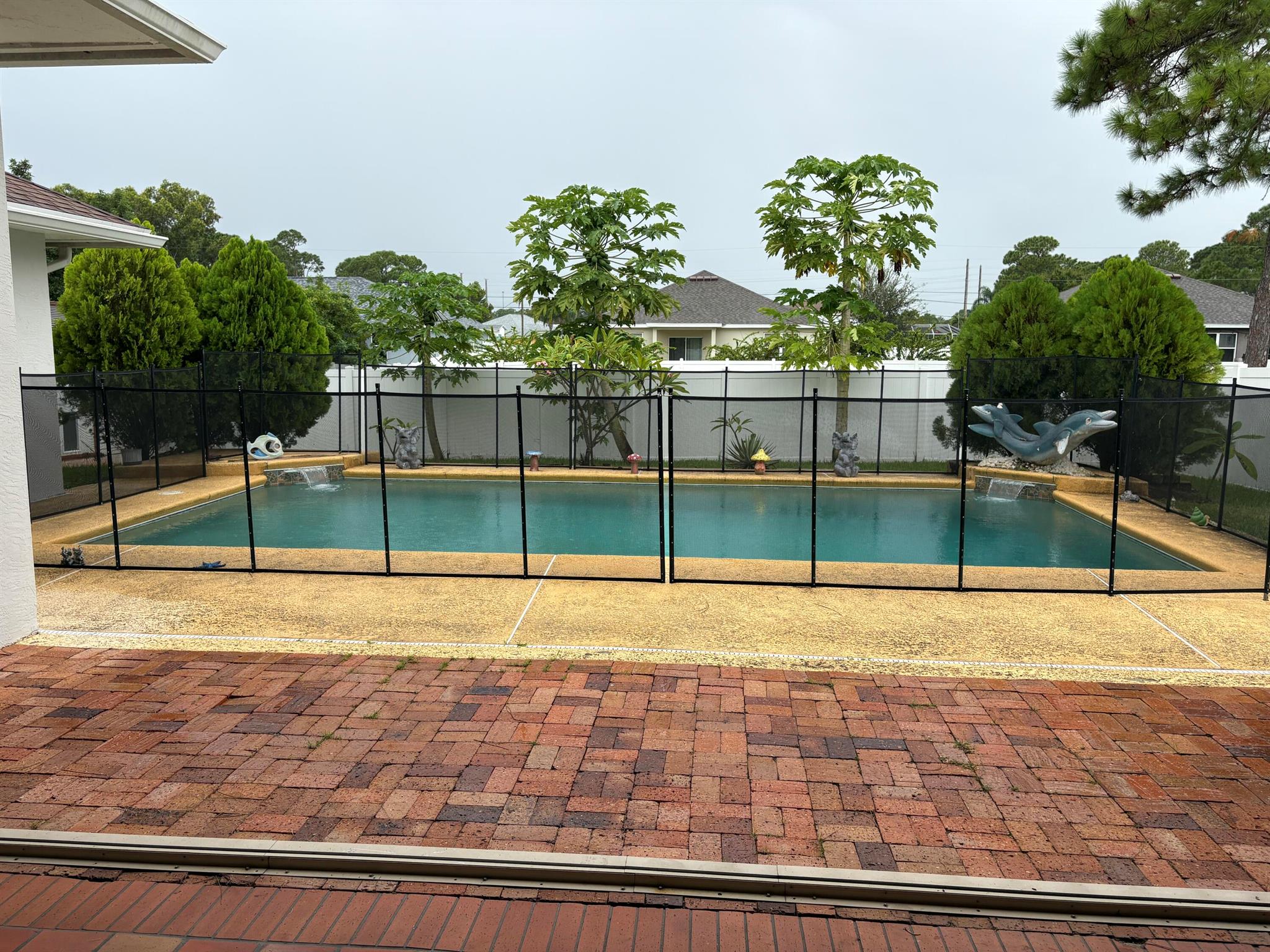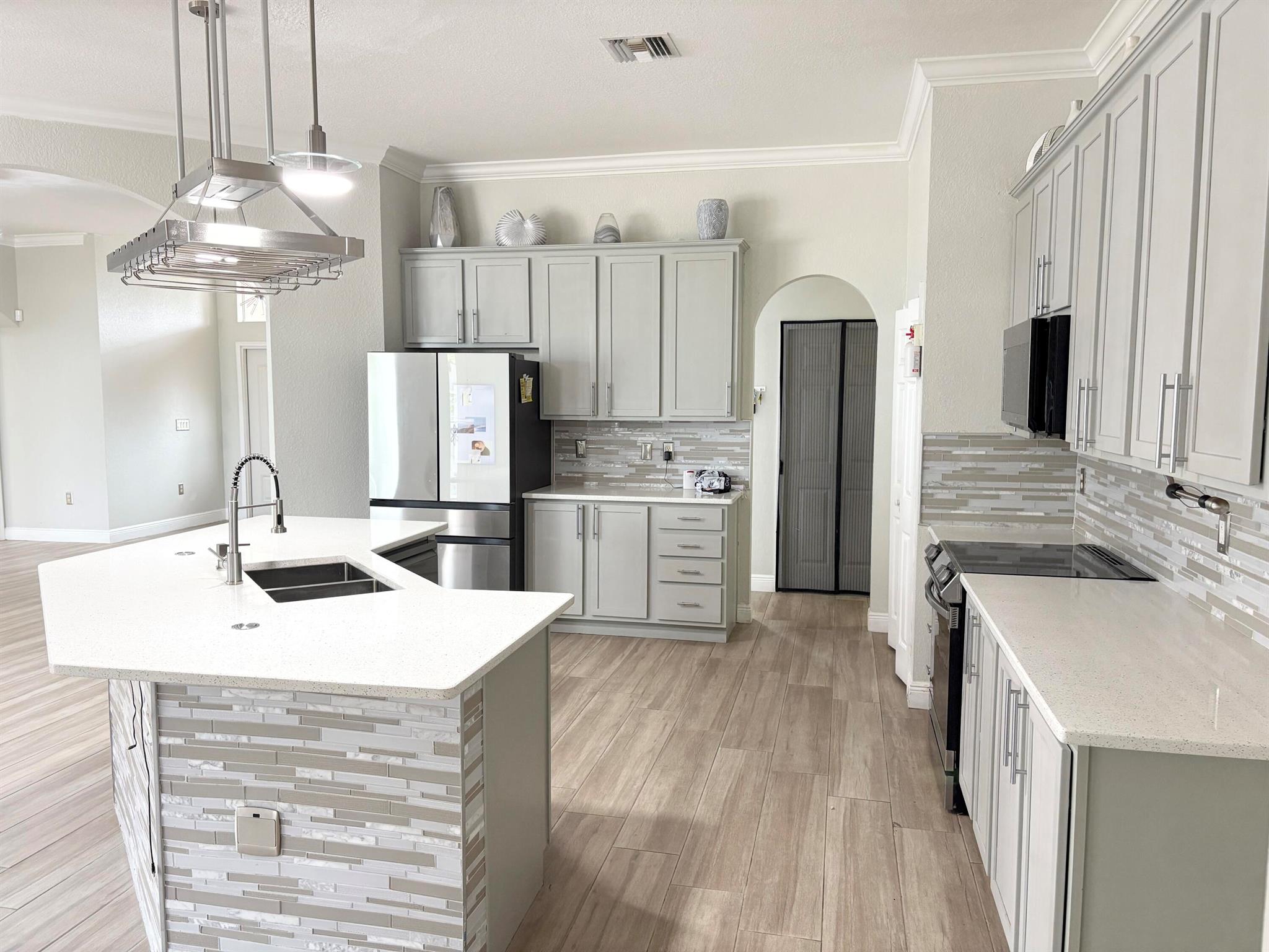 This stunning and spacious 4-bedroom, 3-bath, 2-car garage pool home offers luxury living at its finest. The home features numerous upgrades throughout, including high-end appliances and beautiful quartz countertops in the kitchen and bathrooms. Elegant tile flooring flows seamlessly through the entire home. The master suite includes custom California closets and a spa-like bathroom with a separate soaking tub and walk-in shower. Perfect for entertaining, the home boasts a cabana bath leading directly to the sparkling pool and a large covered patio ideal for outdoor gatherings. The oversized, fenced-in yard provides plenty of privacy and includes a shed for extra storage. A circular driveway adds convenience and curb appeal, making access to and from the and from the home effortless.