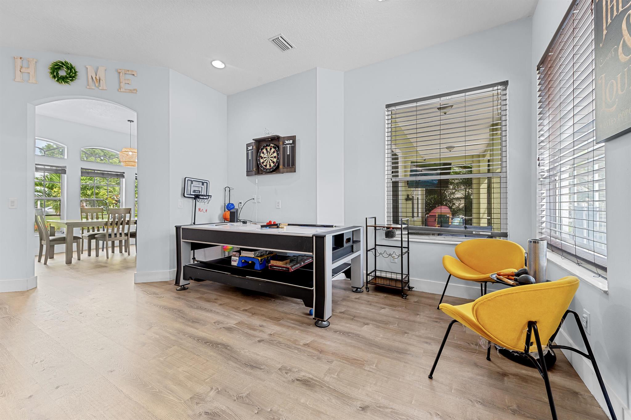 Updated Pool Home with Modern Touches & Private Office! Enjoy all-new flooring throughout, modern light fixtures, and updated bathrooms with stylish new vanities and finishes. The kitchen and living areas flow seamlessly, complemented by a private office--perfect for working from home. Exterior highlights include lush new landscaping, an oversized driveway, updated garage door, plus a new alarm system. Available for 365 day lease.