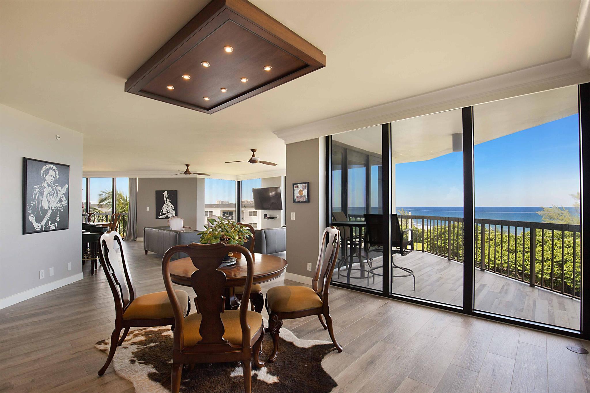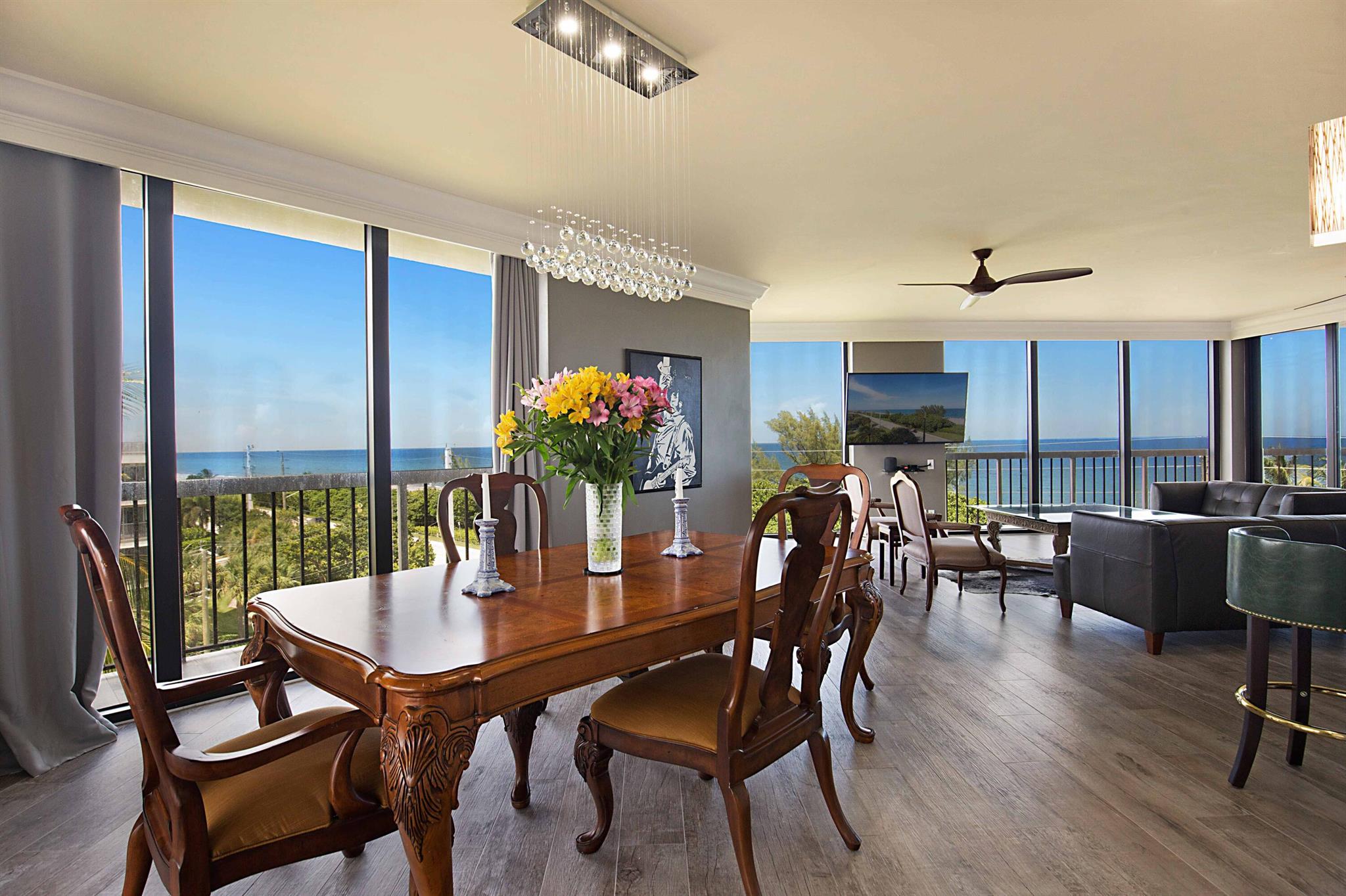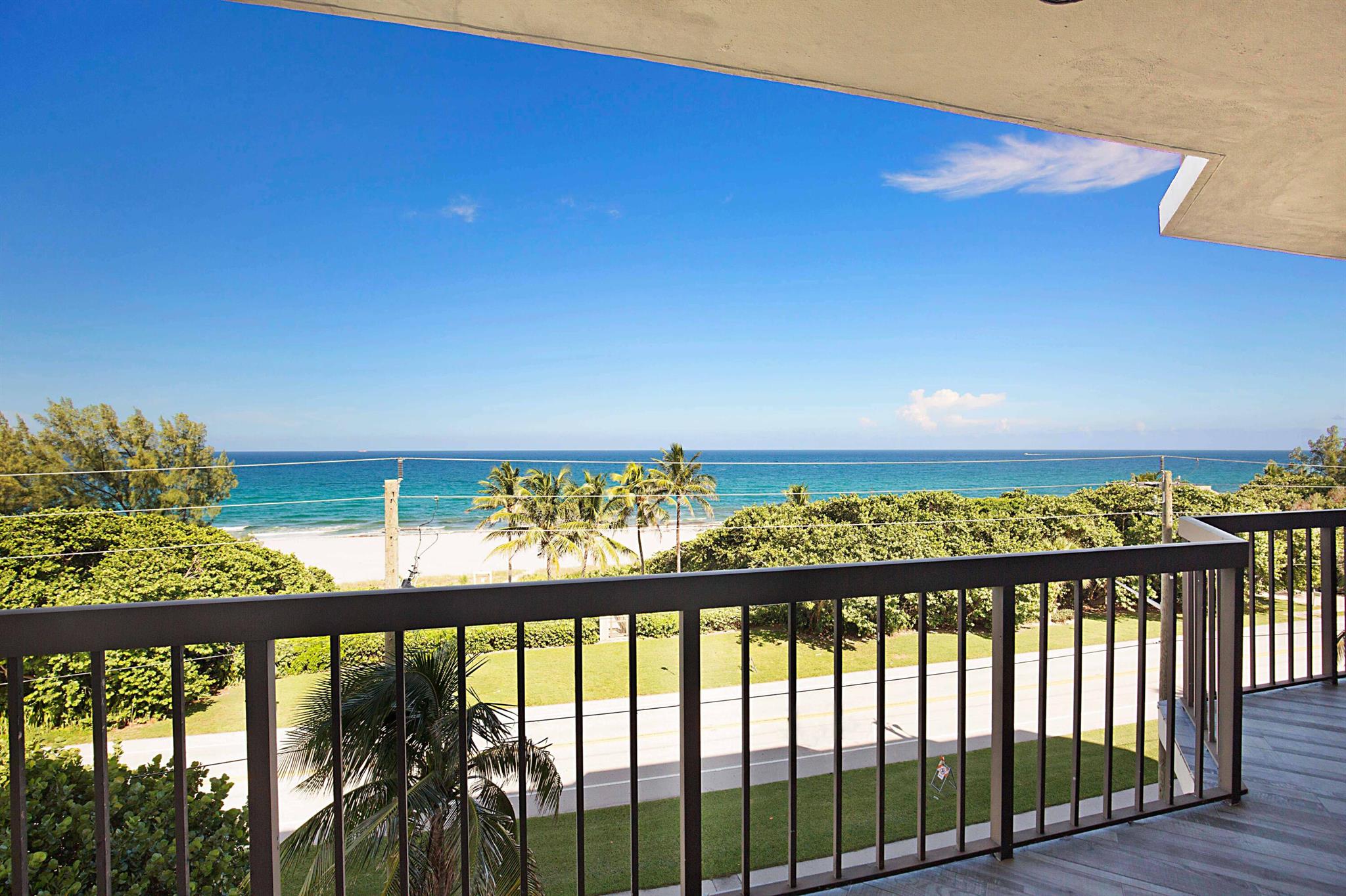 This is a RARE opportunity to rent a half-floor residence with unmatched panoramic ocean views in the exclusive, boutique building of The Ocean Club in Boca Raton. Owning 300 feet of private beach and with only 2 units per floor, 15 total units in the building, The Ocean Club is coveted and exceptionally desirable. This spacious, open, light and bright, 3 bedroom/3 bath condo has been beautifully remodeled and converted to a 2 bed/2.5 bath + expanded living area, which can easily be converted back to a 3 bedroom should renter desire. With 2,490 sf of living space, an open split bedroom floorplan, black marble and driftwood porcelain flooring, an abundance of floor-to ceiling impact windows and doors, and 3 separate balconies (one screen enclosed) off of the large living areas and