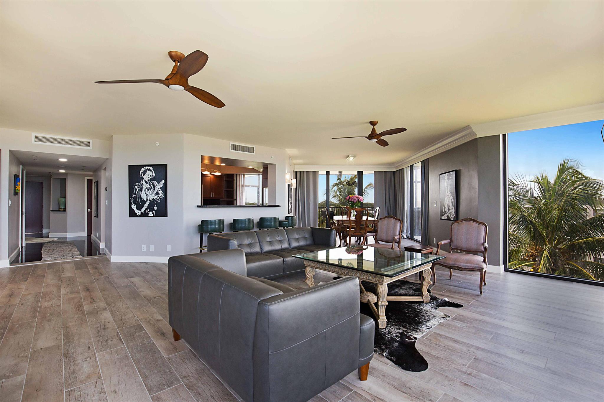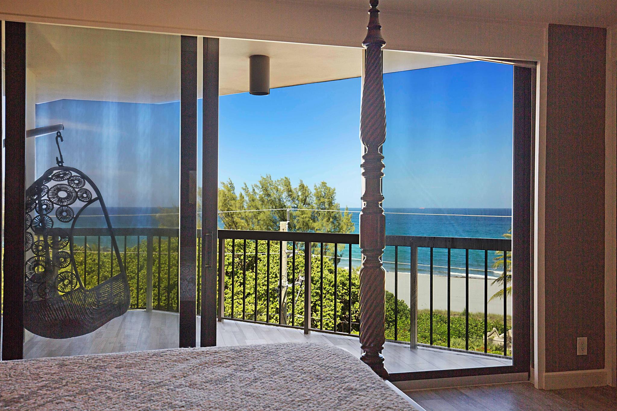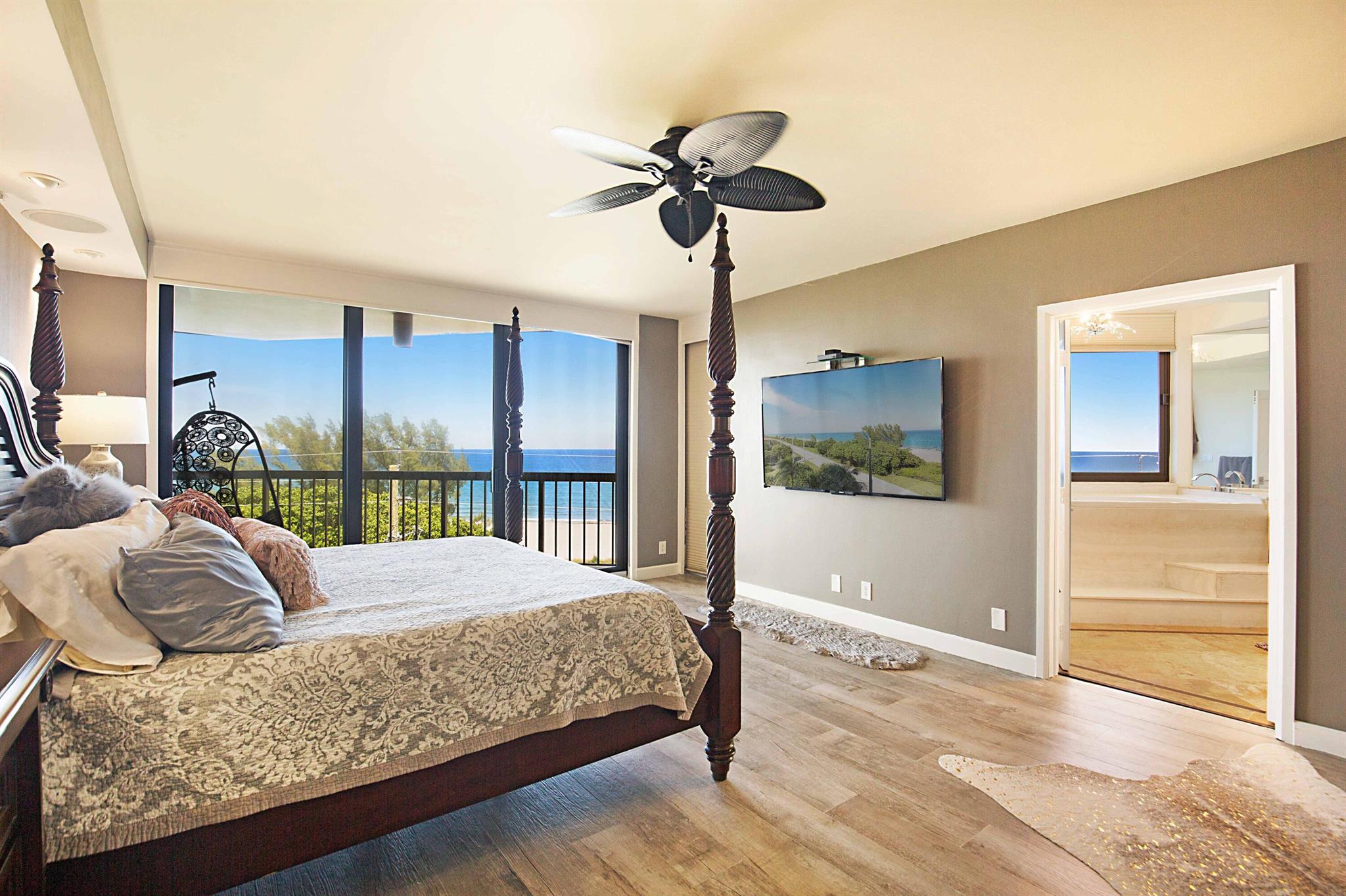 This is a RARE opportunity to rent a half-floor residence with unmatched panoramic ocean views in the exclusive, boutique building of The Ocean Club in Boca Raton. Owning 300 feet of private beach and with only 2 units per floor, 15 total units in the building, The Ocean Club is coveted and exceptionally desirable. This spacious, open, light and bright, 3 bedroom/3 bath condo has been beautifully remodeled and converted to a 2 bed/2.5 bath + expanded living area, which can easily be converted back to a 3 bedroom should renter desire. With 2,490 sf of living space, an open split bedroom floorplan, black marble and driftwood porcelain flooring, an abundance of floor-to ceiling impact windows and doors, and 3 separate balconies (one screen enclosed) off of the large living areas and