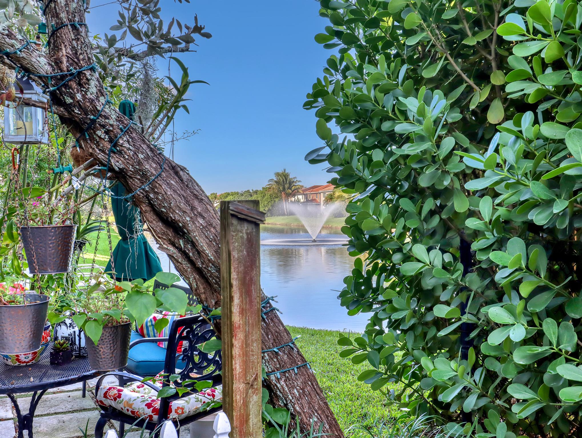 IMMEDIATE AVAILABILITY Move-in ready, beautiful townhouse with side water view. 3-bed, 2.5bath, with screened patio, 1 car garage, plus EXPANDED parking for 3 additional cars. Fresh paint throughout and laminate wood floors in the entire house. Kitchen featuring stainless steel appliances and granite countertops. Spacious master bath with separate shower and double sinks. HOA fee includes building, free internet, insurance, roof maintenance, landscaping, and Cable TV. A gated community with a 24/7 guard at the gate offers excellent amenities.