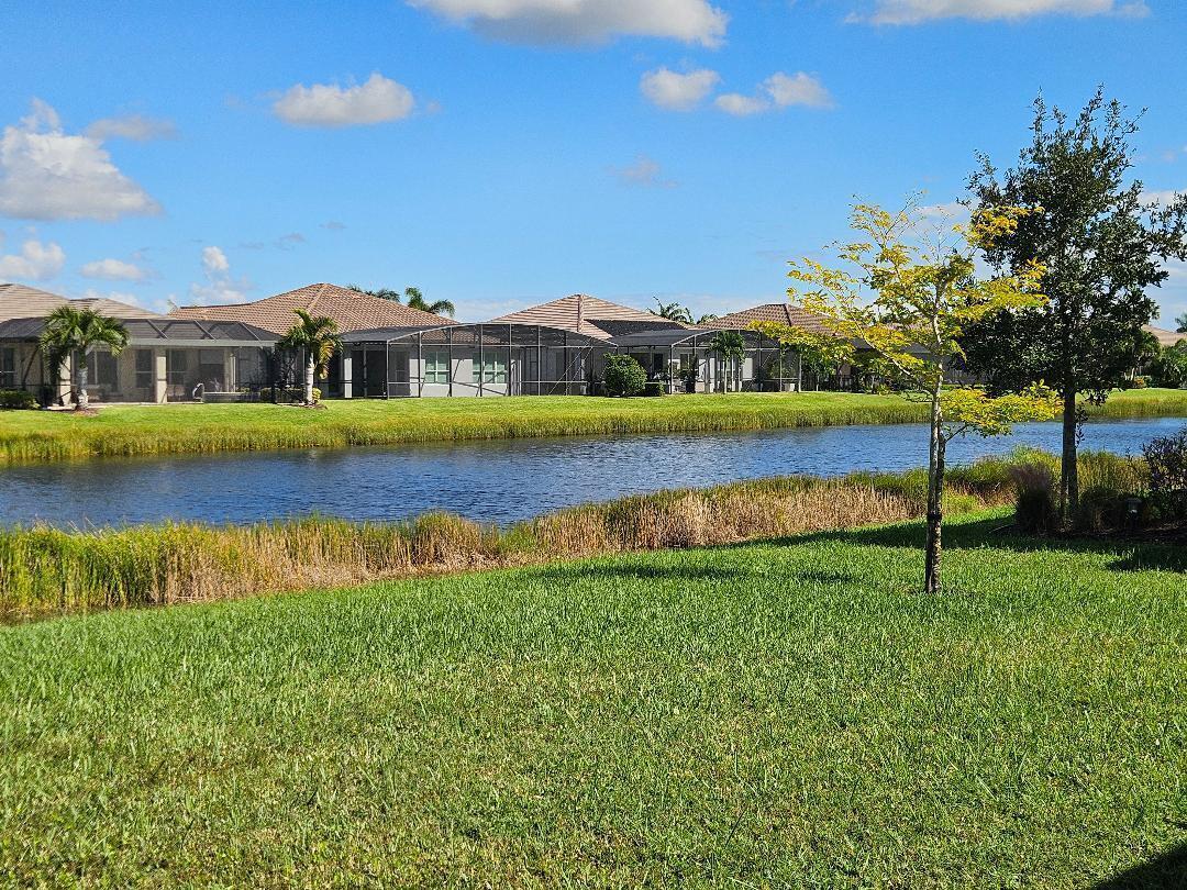 This is a must see lakefront home in exceptional condition (only used 6 months a year by owner). Two bedrooms PLUS separate office/bonus room located in the gated community of Vitalia in Traditions! Beautiful lakefront location looking over a peaceful flowing lake and Luxury homes across water along with a screened/covered 18.4 x 9.4 Liana! Enjoy tile floors through-out the home (other then carpeted bedrooms), beautiful kitchen cabinetry with pull outs, Gas Range and SS appliances & stylish Plantation Shutters & handsome ceiling fans. Separate Laundry-room with grey high end washer/dryer, sink & cabinetry. Rent includes Internet and Cable television, Lawn Care, Alarm Monitoring, & use of all club house facilities! BEAUTIFULLY remodeled club house includes state of art ... (continue
