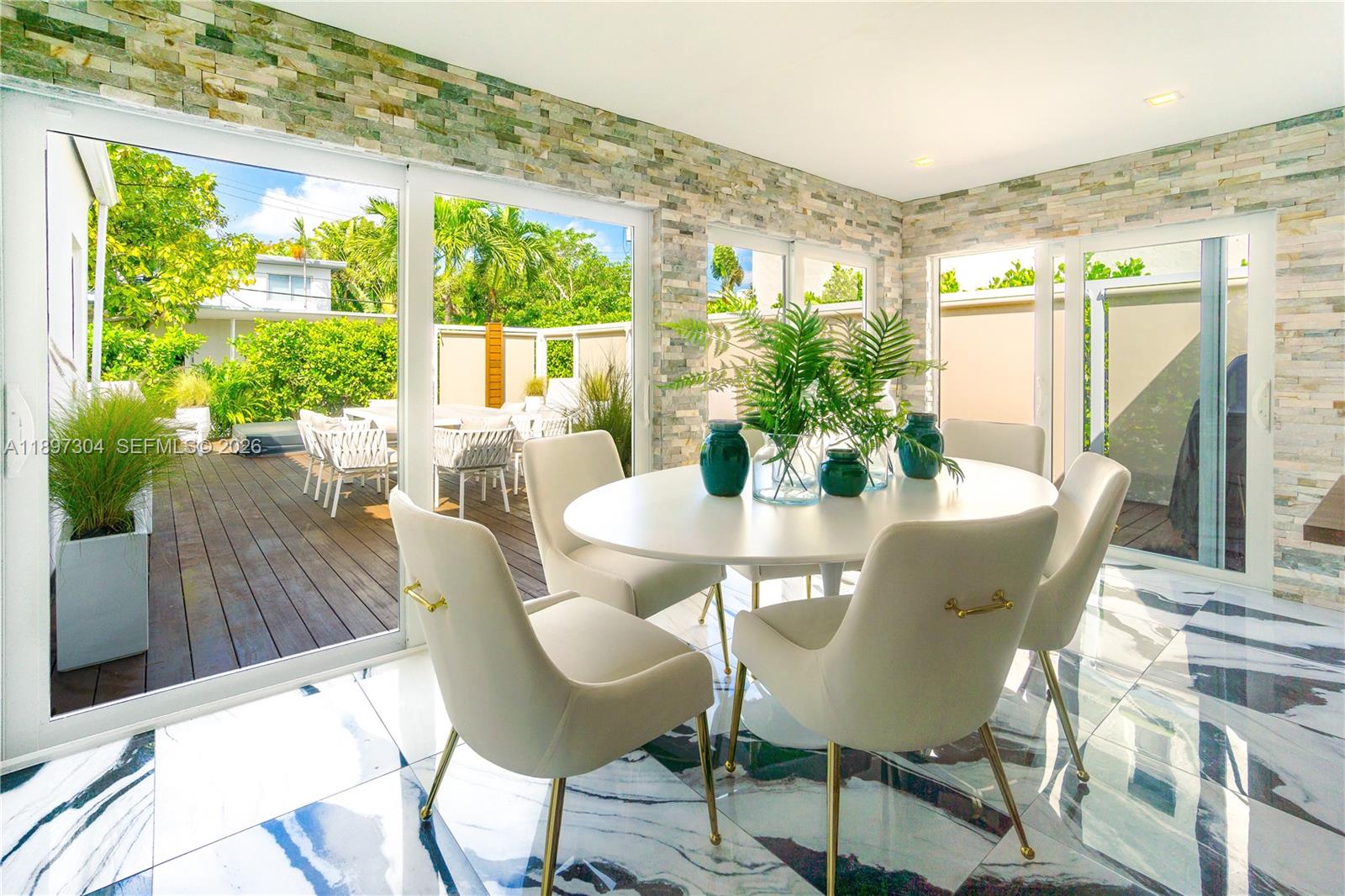This beautifully remodeled contemporary style, furnished, 3 bedroom, 3.5 bathroom, single family home, boasts high ceilings and an open floor plan with private parking. With oversized impact balcony doors and windows that open up to a spacious private deck with abundant seating. This home has it all, custom built-ins, eat-in kitchen, abundant cabinet storage, stone countertops, high end stainless steel appliances, perfect blend of high style and modern conveniences. Located steps away from Lincoln Road, blocks away from great shops and the beach.