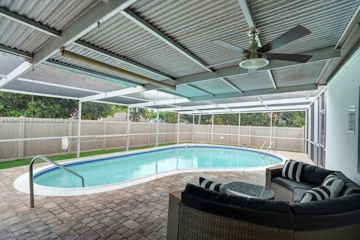 Embrace coastal living in this stunning 4-bedroom, 3-bath Hollywood Lakes rental, just minutes from the beach and boardwalk. This spacious, beautifully furnished home offers a bright open layout with contemporary décor, a fully equipped kitchen, and abundant natural light throughout. Enjoy the perfect balance of relaxation and entertainment with a private pool, inviting patio, and a fun-filled game room. Ideal for families or guests seeking comfort, style, and convenience, this home provides everything you need to unwind and enjoy the best of South Florida living.