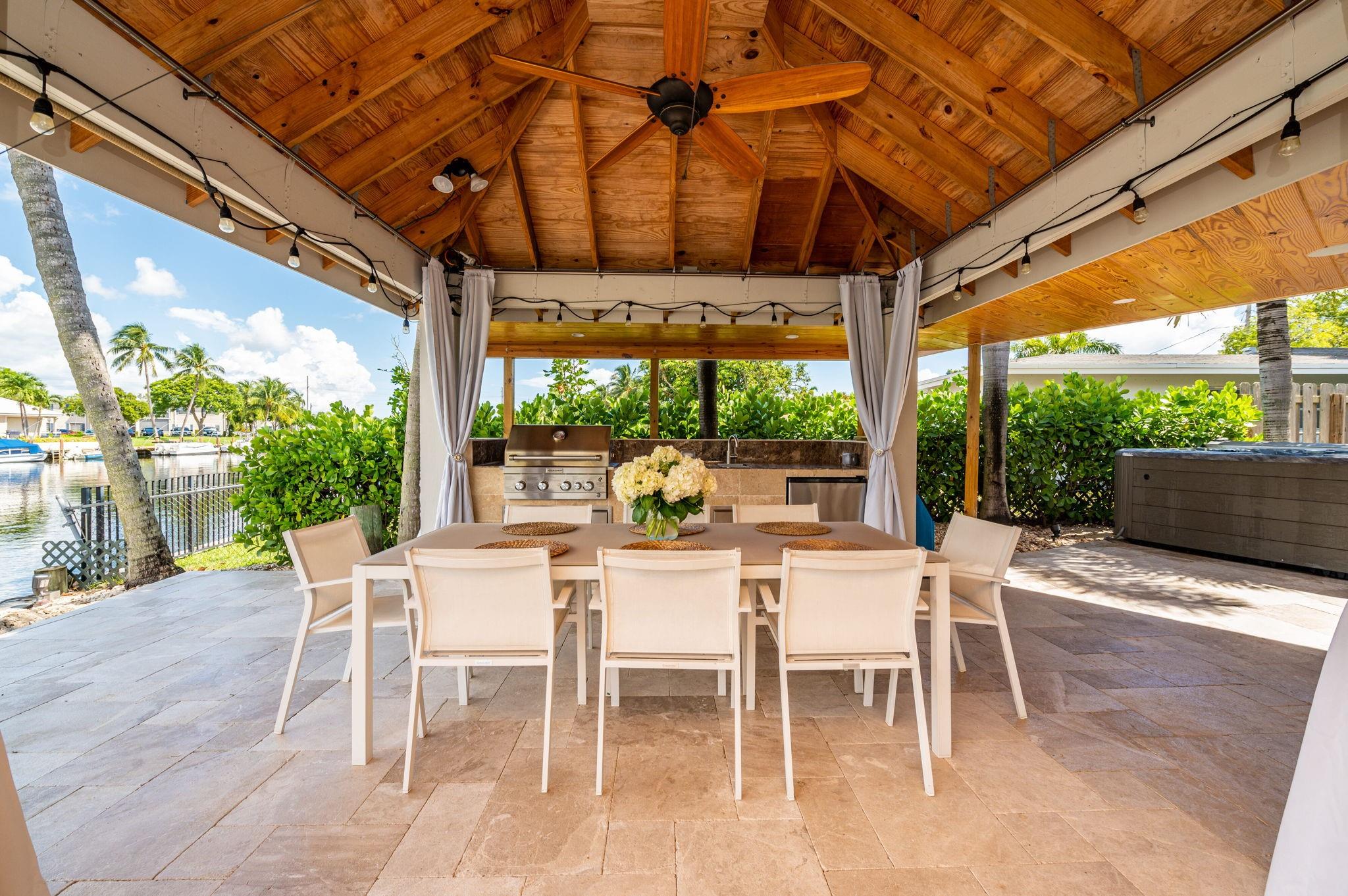CUSTOM-BUILT WATERFRONT MASTERPIECE – Recently renovated 5-bedroom, 3.5-bath home with 2-car garage on a private cul-de-sac. This one-of-a-kind residence offers approx. 3,200 sq. ft. under air and 140 feet of waterfront with a 120-ft dock w/water & electric, providing space for a large boat and jet skis. Enjoy wide-water views, impact windows & doors, and an entertainer’s backyard with a heated pool, hot tub, summer kitchen, wet bar, tiki hut, gazebo, fire pit & covered patio..Perfect for gatherings or relaxed coastal living. Inside features an open layout, modern finishes, oversized beverage fridge, primary suite with a w/built-in bar. A true entertainment paradise where luxury meets waterfront lifestyle.- Property is available for Seasonal Rental as well as Annual