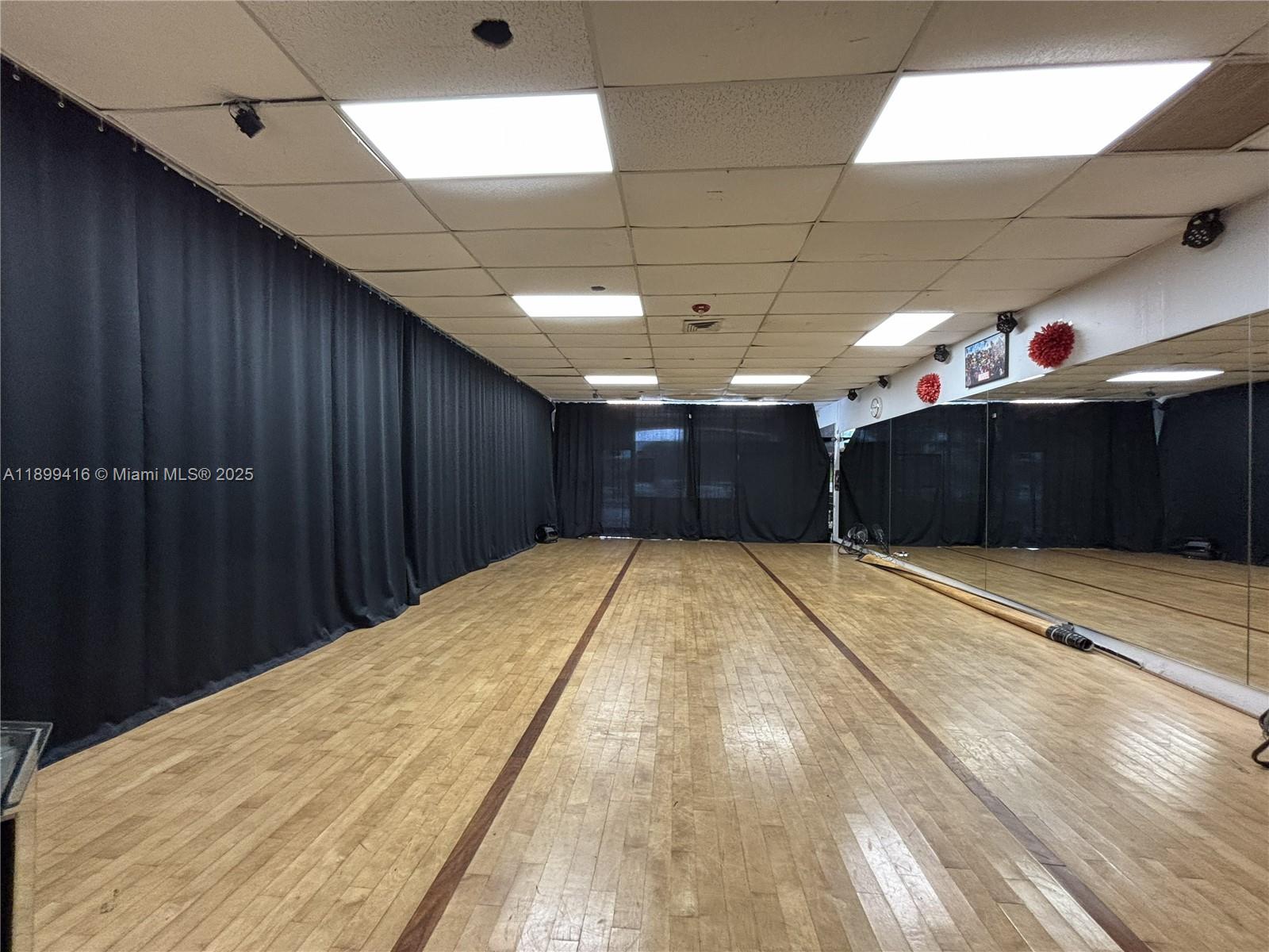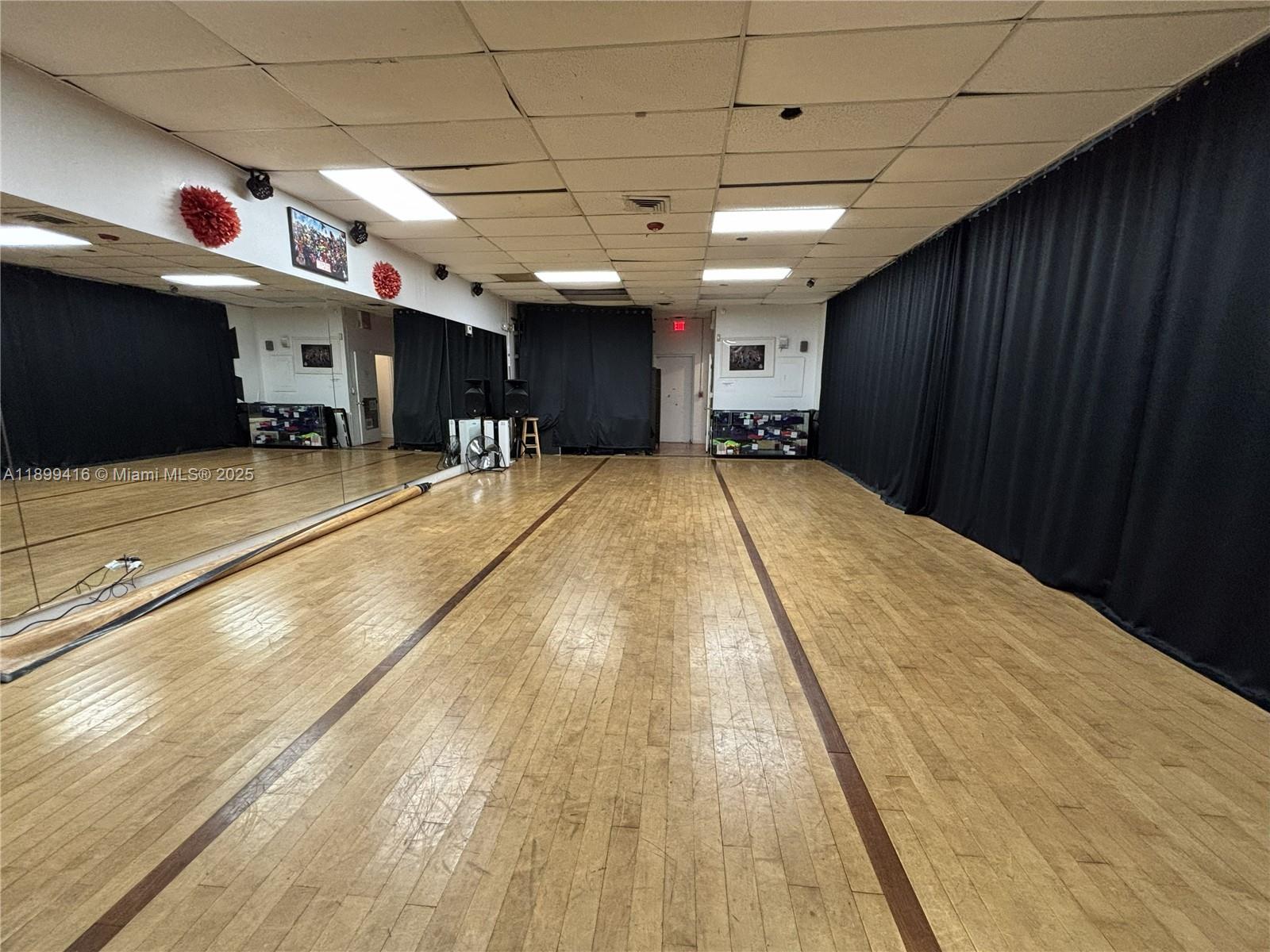 1,000 SF dance studio in prime Pembroke Pines location (Douglas Rd & Pembroke Rd) available for sublease. Use limited to Monday–Friday, 9AM–5PM only—studio is not in use during these hours, so subtenant will have exclusive access. Ideal for therapists, coaches, massage/bodywork, or other quiet, low-traffic uses. No storage or signage allowed. Must leave no trace daily. Mirrored walls, hardwood floors, flexible layout with open/close curtains. Secure entry—clients must be let in or buzzed in. Sublease must complement existing use. Studio has operated 16 years. High-traffic intersection with excellent visibility. $2,000/month gross lease includes utilities. Contact Listing agent - Jonell Matthews for a showing.