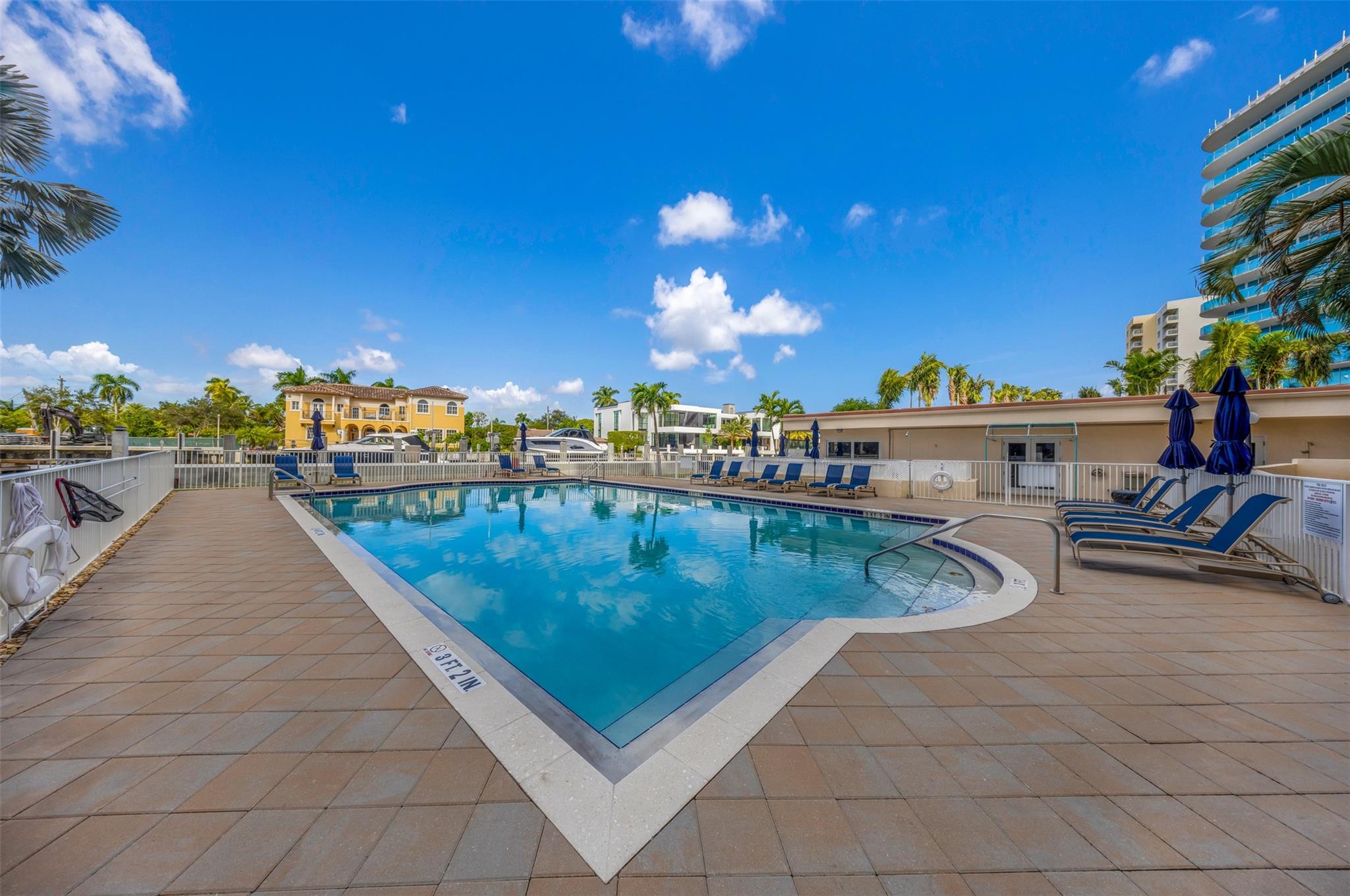 Enjoy private beach access just across the street! This first-floor, 2-bedroom, 2-bath unit overlooks the pool and Intracoastal, offering stunning water views. Situated in the exclusive Ocean Boulevard area, one of Pompano Beach’s most luxurious neighborhoods, the unit is steps from fine dining and right next to the luxury Ritz-Carlton development. The building features a large pool area, clubhouse, full kitchen, and BBQ space, perfect for entertaining. Includes assigned parking and easy access to the beach, restaurants, and all the best that South Florida living has to offer. Easy to show!
