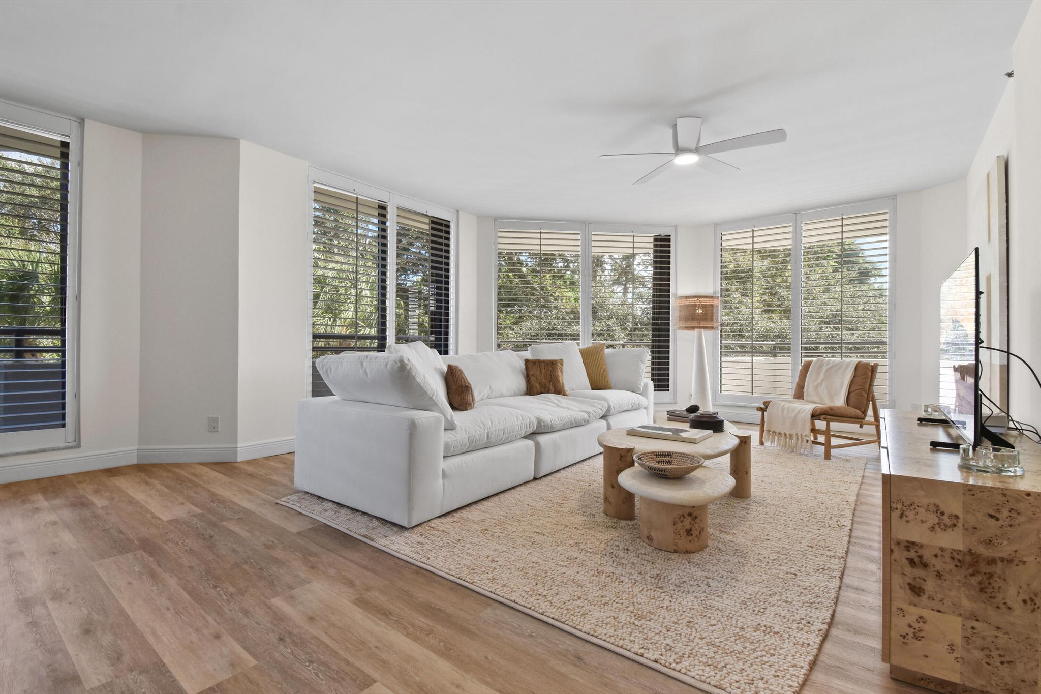 Step into this exquisitely reimagined condo in the prestigious Southporte One Building at Jonathan's Landing, Jupiter, where luxury meets unparalleled tropical serenity. Perched on the 3rd floor, this 2-bedroom, 2-bathroom residence offers breathtaking, unobstructed views of the lush golf course capturing the essence of South Florida's coveted lifestyle. Fully turnkey, this home has been meticulously redesigned with custom, high-end finishes, including a state-of-the-art kitchen featuring imported cabinetry, premium Thermador appliances, and Calacatta marble countertops. Both bathrooms boast designer vanities with stonework, complemented by white oak plank flooring and plantation shutters.