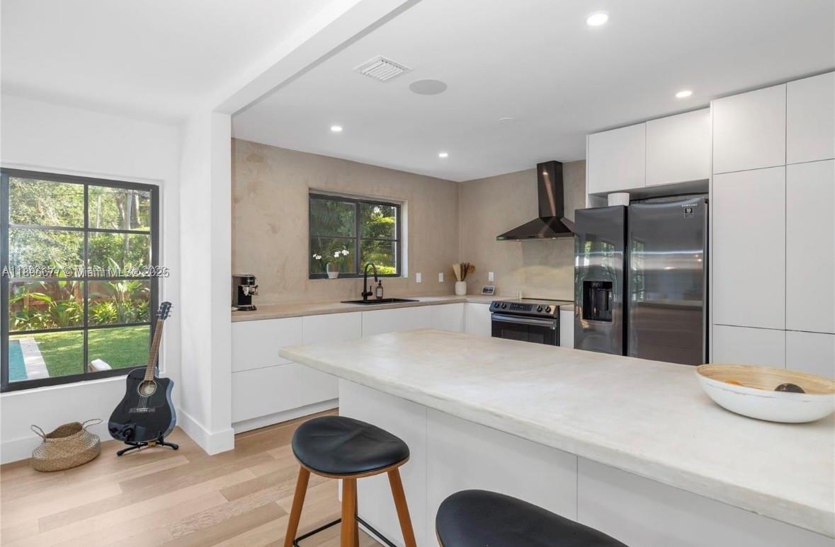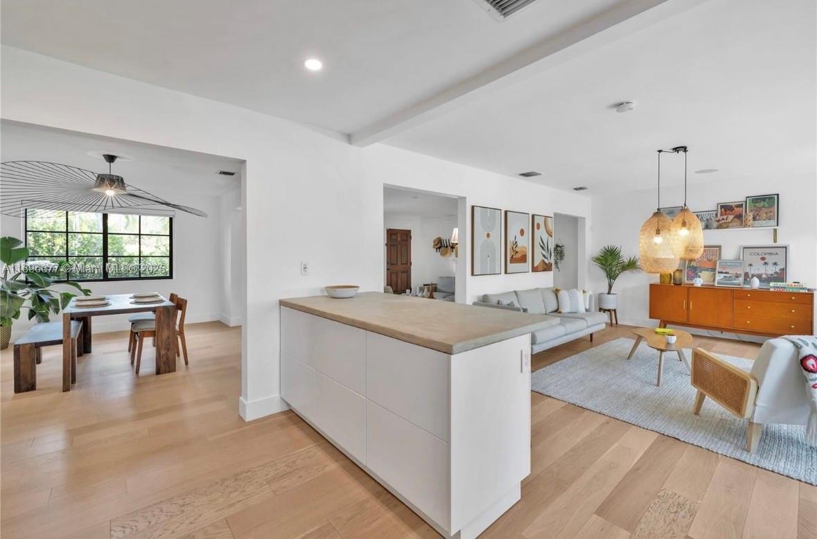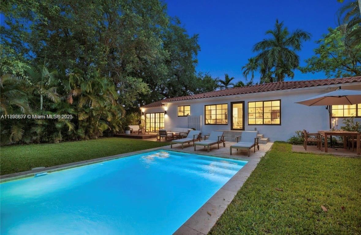 Welcome to your private oasis in Miami Shores. You'll feel like you're living in your own personal hideaway in this meticulously designed mid century home with a seamless fusion of modern sophistication and timeless charm. Highly desirable open flow living with wide plank hardwood floors, art deco fireplace, gourmet eat-in kitchen, elegant designer baths, impact windows and doors and smart home automation. Paradise awaits in the peaceful rear garden retreat with lush privacy landscaping, entertainment deck, pool and privacy fence. Enjoy carefree luxurious living, just a few blocks to downtown Miami Shores. Credit check and paystubs required and Teant to obtain renter's insurance.