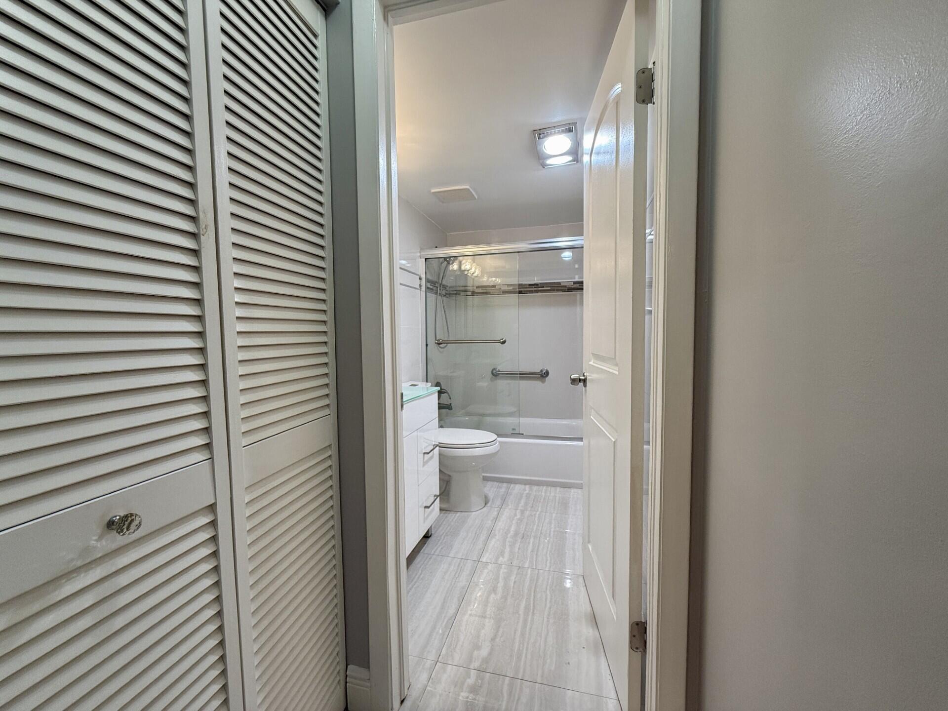 Stunning, 1st floor unit with your own private patio paradise. This amazing unit features gleaming, ceramic tile floors, updated kitchen and baths and central air conditioning. A washer and dryer in the hall closet completes this wonderful unit. Spacious Bedroom Suite With Wall of Closets and Full Ensuite Bath. Complete hurricane shutters for your protection. Freshly painted & ready for you to enjoy all that Century Village has to offer! Century Village Is A 55+ Community with So Much to Offer..