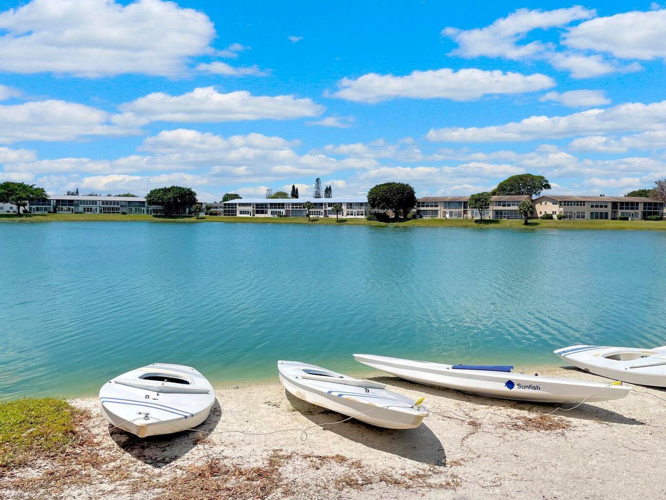 Presenting a quiet, bright, modern, renovated, WATERVIEW 1 bed/1.5 Bath in the AGE-RESTRICTED/OVER 55 community of Century Village featuring brand new luxury vinyl floors and completely renovated bathrooms. This second story condo has the benefit of expansive waterviews, while having the convenience of an elevator just steps to your door. Serenity awaits as you sit on your balcony, feel the breeze & listen as the birds sing. Welcome home to your new tropical paradise, where you can experience amenities galore in this active, gated 55+ community! Take a sailboat lesson, see a new release movie or show in the 1200 seat theater, or try woodworking in the massive clubhouse. Cool off in one of 17 pools, exercise in the gym or resistance pool or take the free shuttlebus to shop!