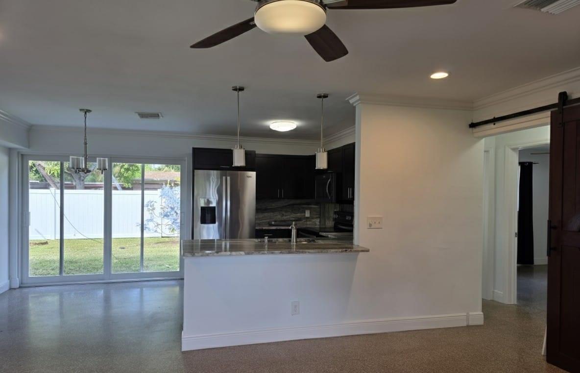 JUST REDUCED. Your home search can end right here with this charming 3-bedroom, 2-bathroom single-family home, complete with a carport. Step through the front door into an inviting open-concept layout, featuring terrazzo floors throughout. The modern kitchen boasts granite countertops, dark cabinetry, and stainless steel appliances Enjoy a large, fenced backyard with gated access on both sides and ample parking spaces in the front of the house. This home offers a great location near Downtown Delray Beach and Atlantic Avenue, and it is close to major highways, parks, schools, a hospital, and grocery stores. Tenant pays landlord an extra $200.00 for Landscape and Water.