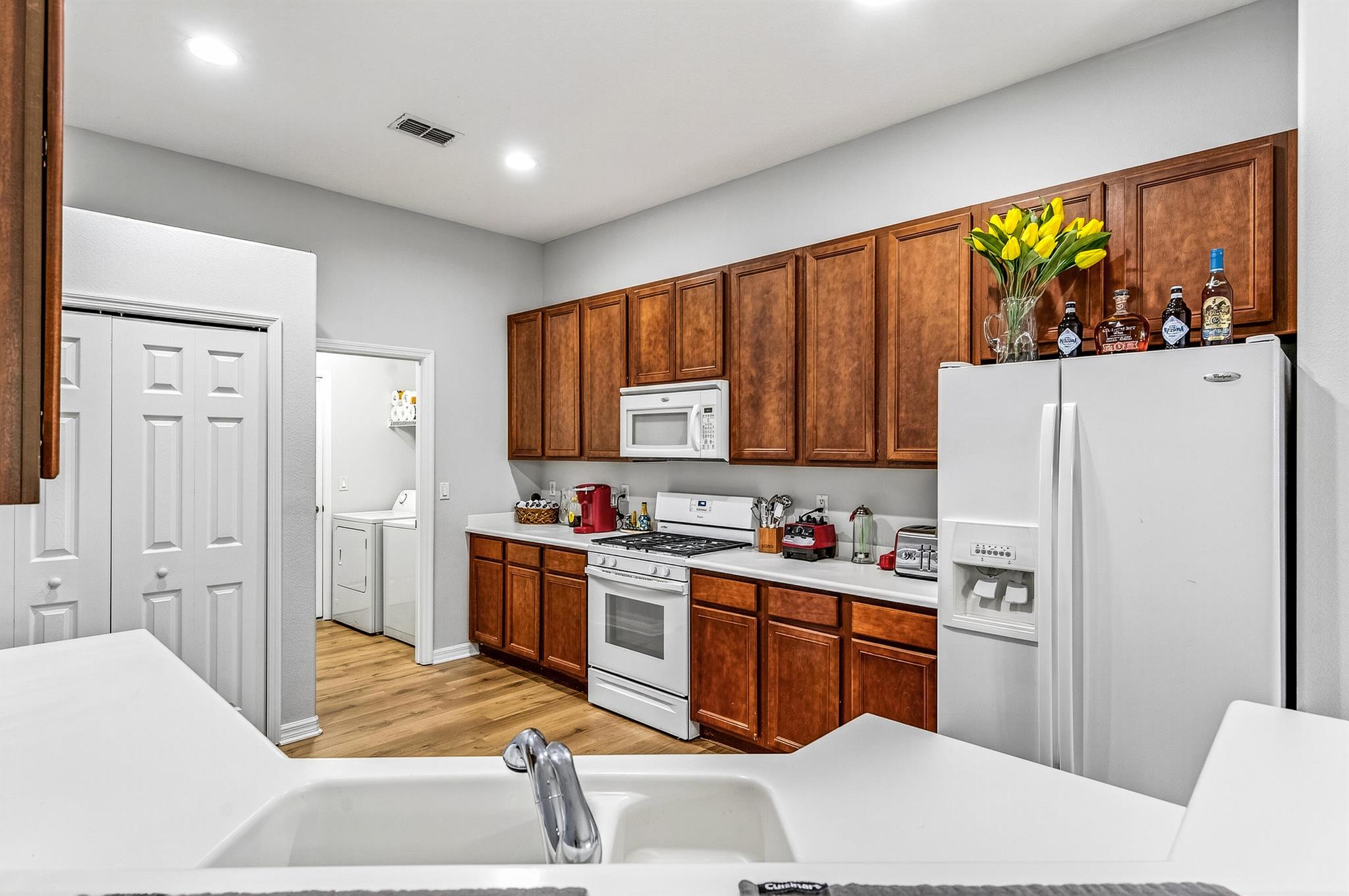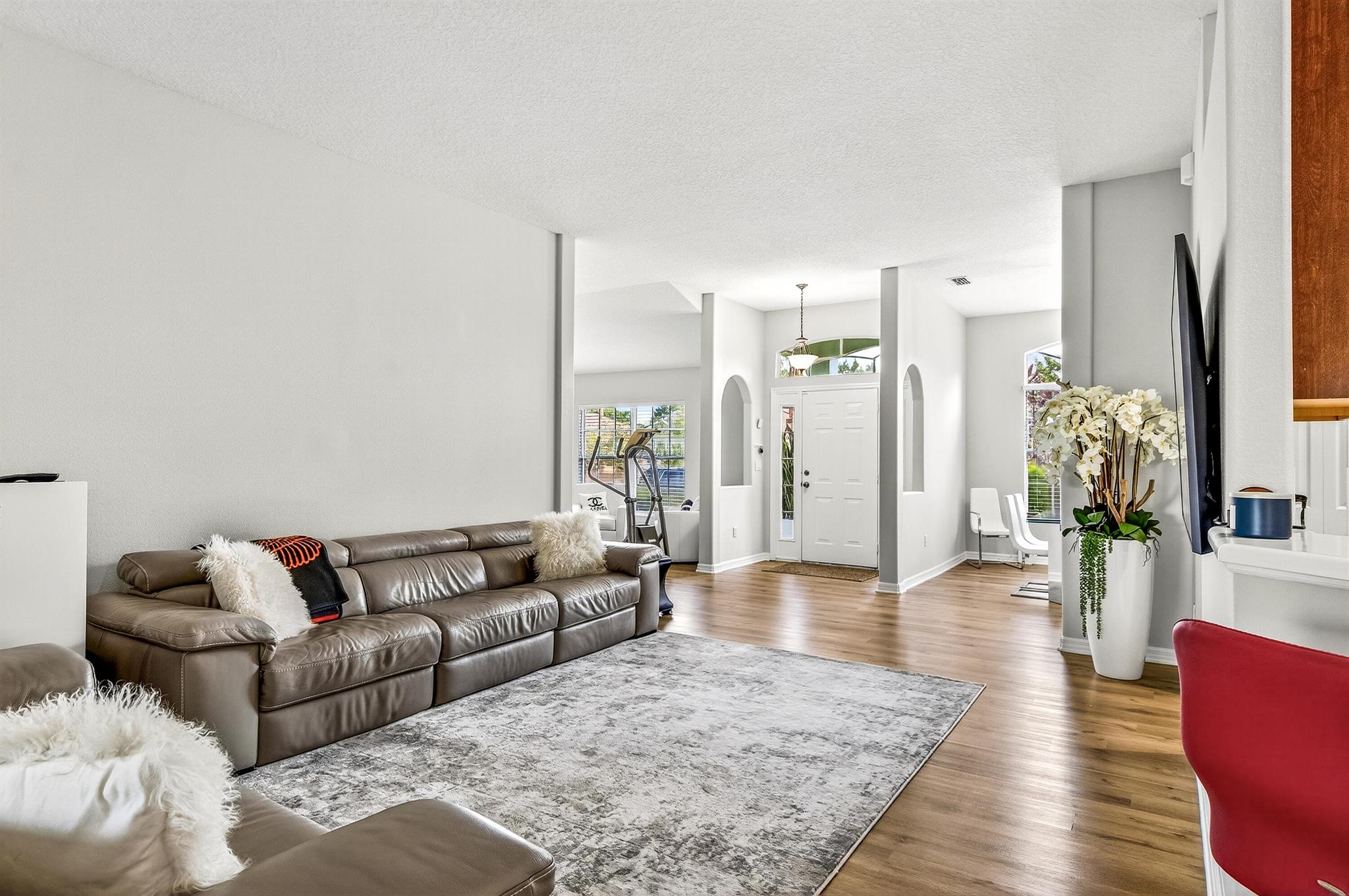 Beautiful home, formal living and dining room areas, breakfast nook, large screened porch, master bath with 2 vanities, roman tub and separate shower. Kitchen with Corian counter tops, gas stove. Recently Painted interior and Exterior. Deluxe vinyl Faux Wood Flooring throughout. Community offers large pool overlooking lake, Gym, Tennis Courts, and well-appointed clubhouse for special events.