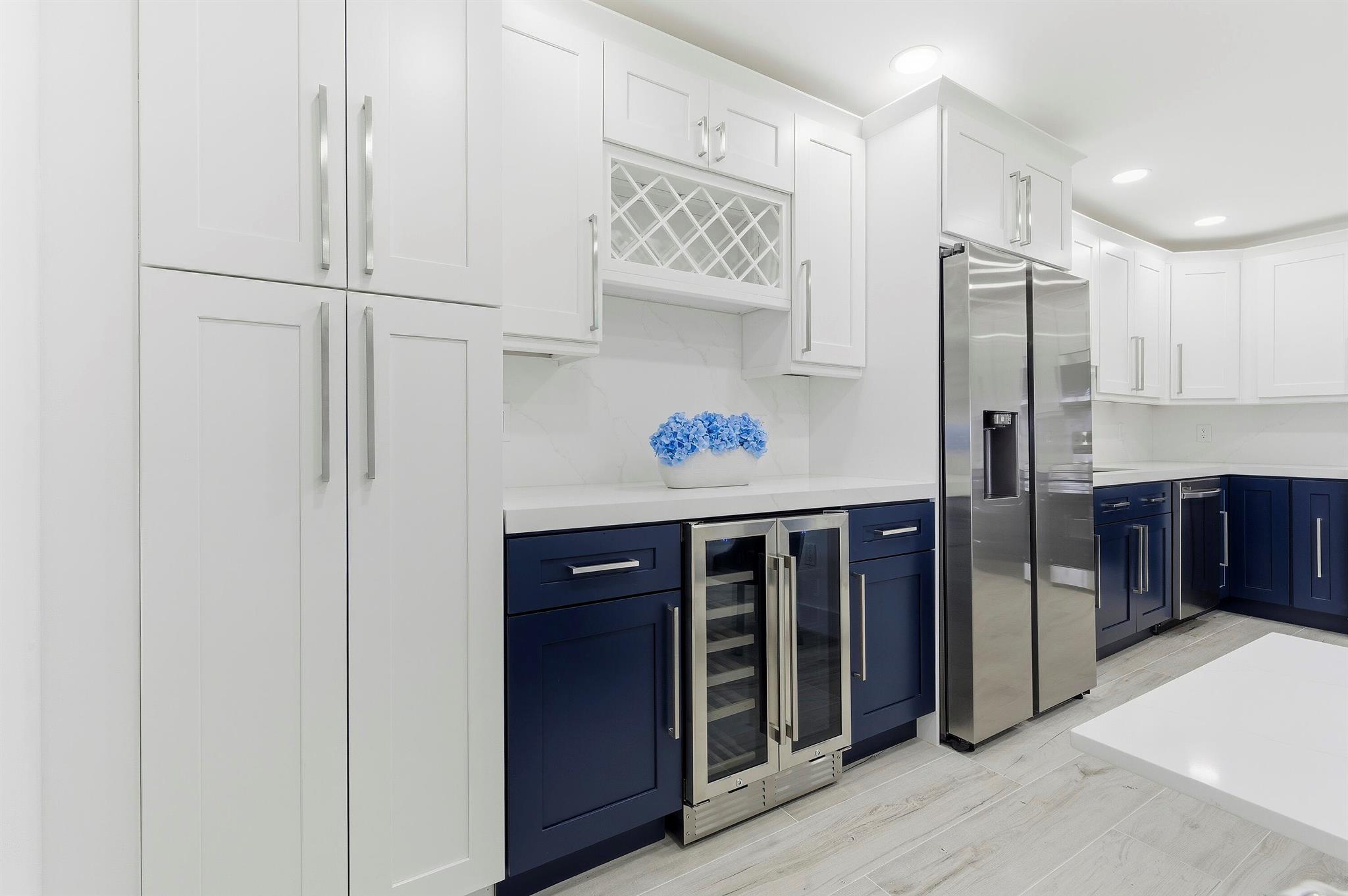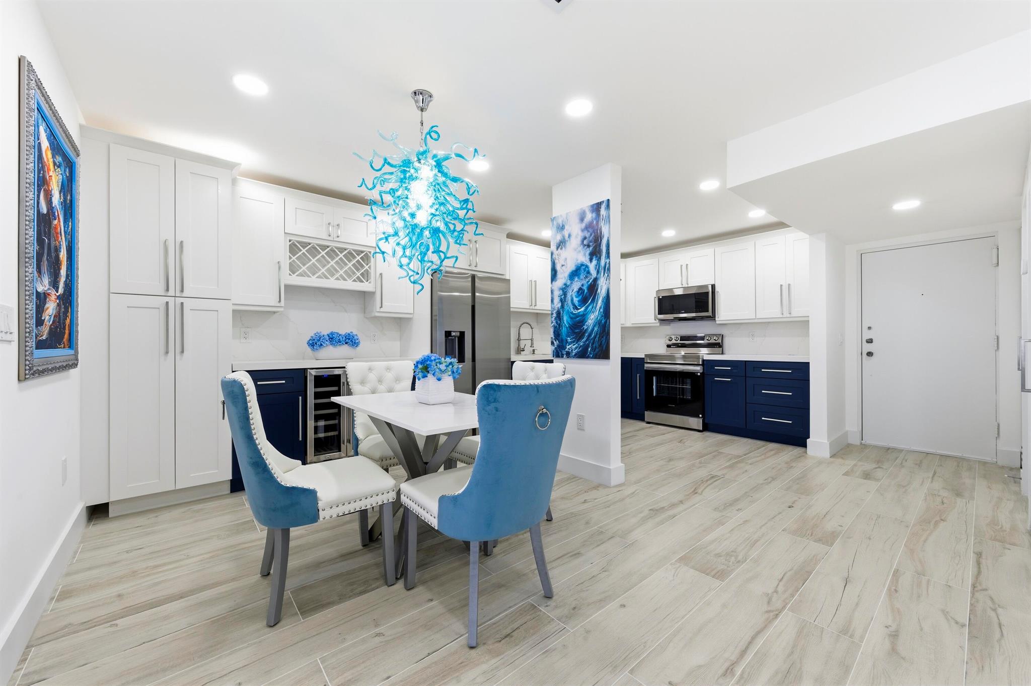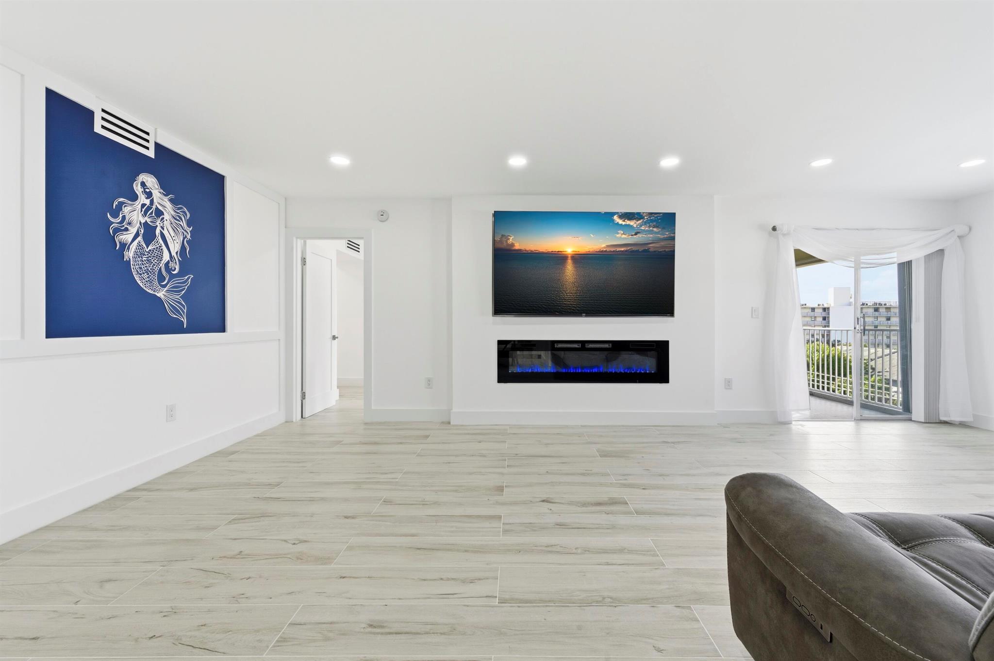 Experience beachfront luxury in this fully renovated 2-bedroom, 2-bath condo. This sophisticated residence features an open floor plan with brand-new kitchen cabinets, stainless steel appliances, and a bar area with a wine cooler, perfect for entertaining. The bathrooms have been modernized with double sinks and upscale fixtures. Enjoy the seamless tile flooring throughout, complemented by high hats and stylish finishes.Relax in the spacious living area with an 86'' TV and a cozy fireplace. The master suite boasts a walk-in closet and 2 additional closets; the condo comes fully furnished with an in-unit washer and dryer. The community offers an array of amenities, including a pool, gym, billiard room, cards room, barbecue area, party room, and sauna, providing a resort-style lifestyle.