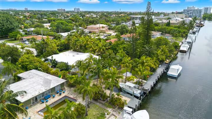 Welcome to The Hibiscus House! This one-of-a-kind Pompano retreat sits on a rare 30,000 sq ft lot surrounded by lush, tropical landscaping reminiscent of Costa Rica. This 4-bed, 4-bath oasis features 3 tiki huts, a pond with waterfall, pool, jacuzzi, and mature trees creating a private paradise. Boaters will love the 150-ft dock with boat lift on a deep canal--just 8 minutes to the ocean. Elevated property with impact windows, travertine floors, and a renovated kitchen overlooking the exotic grounds. A true South Florida gem!