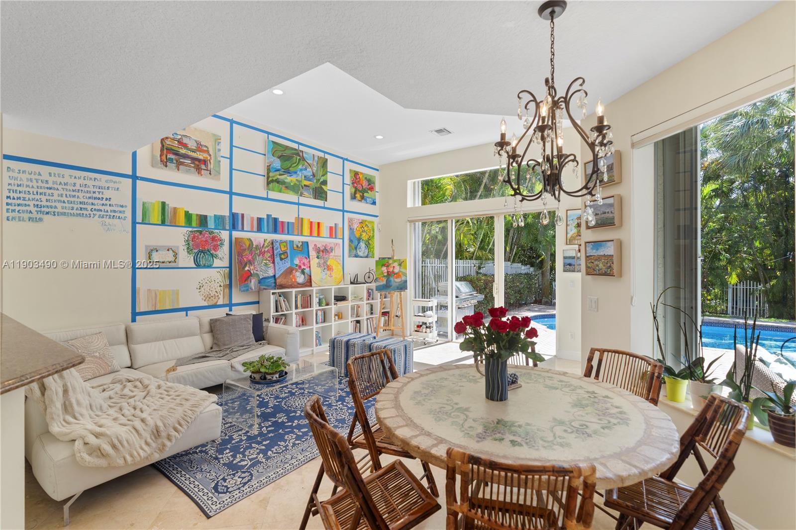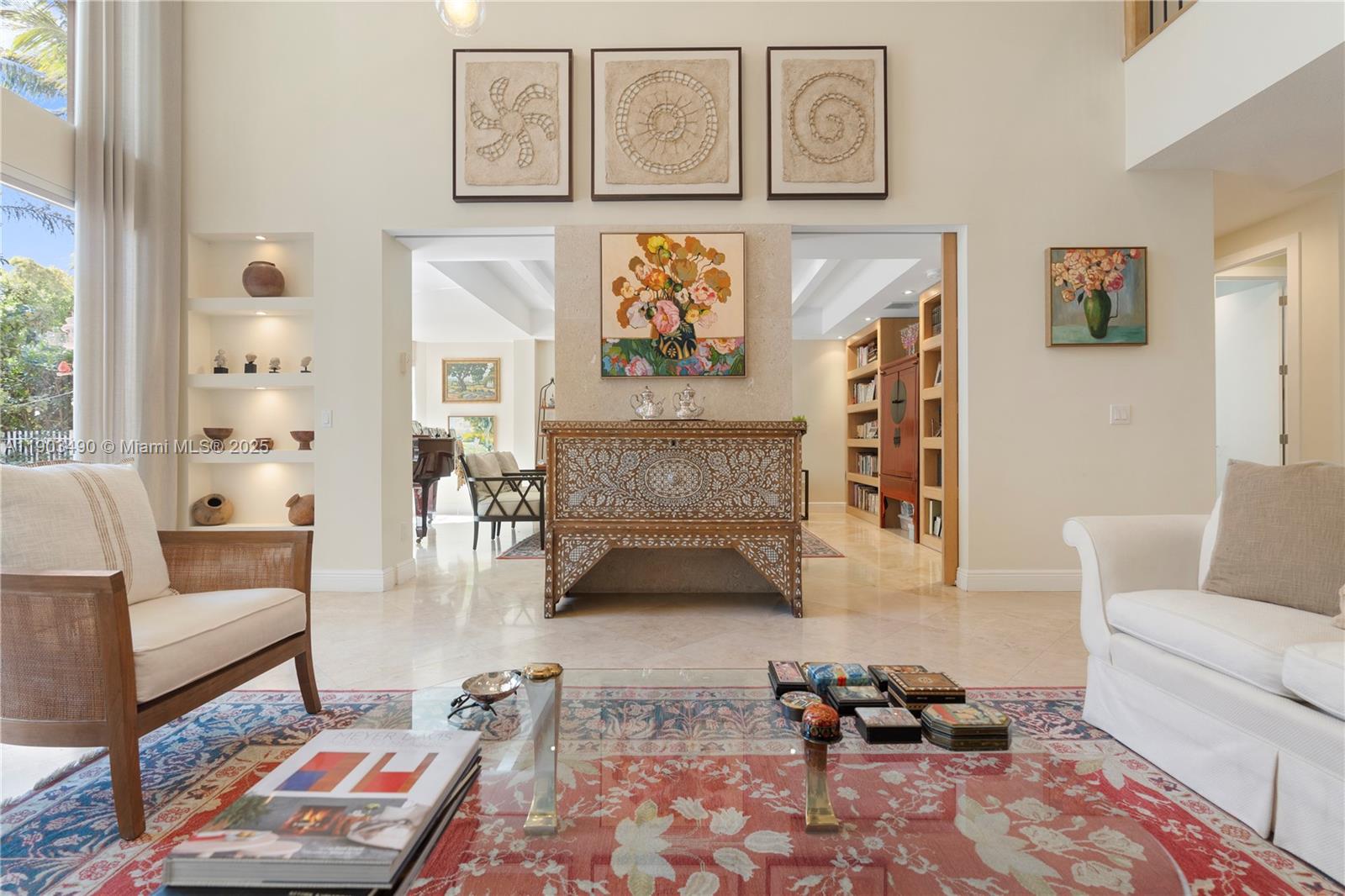 Exceptional opportunity to rent a home in the prestigious Presidential Estates gated community, defined by light, calm, and connection. The open living room with double-height ceilings flows into soft natural tones and a stunning library framed by palm trees and bougainvilleas. A warm toned kitchen opens to a light-filled family room w/tall windows & sliding doors to an inviting patio and sparkling pool. The lush garden w/irises and bird of paradise offers privacy and tranquility. Main Level Guest suite w/walk-in closet and private bath, additional room, bathroom, laundry and 2-car garage. Upper Level Sun-filled primary suite w/luxurious marble bath plus 3 bedrooms & 2 more baths. All within a short drive to top schools and major roads-perfect blend of serene living and convenient location