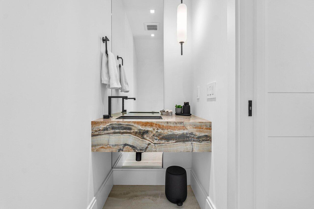 Nestled in Delray Beach's coveted Palm Trail neighborhood, this 4-bedroom, 3.1 bath residence spans 3,853-square-foot and offers stunning modern architectural features and ideal walking proximity to the famed Atlantic Avenue. Designed to embody a seamless indoor-outdoor lifestyle, this newly built home showcases exquisite interiors that flow effortlessly with the lush surroundings. Every detail is meticulously curated, featuring engineered hardwood floors, bar with wine cooler, elevator, exquisite Primary Suite, Open Kitchen w/ gas stovetop, private pool, built-in gas grill & summer kitchen, and an upgraded lighting package that includes under-cabinet and under-shelf fixtures. A versatile flex space is perfect for a home office or den, completing this unique coastal retreat!