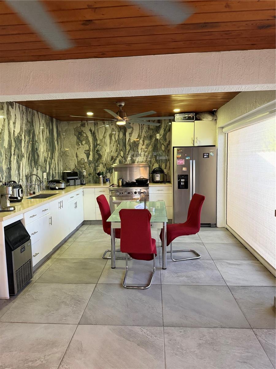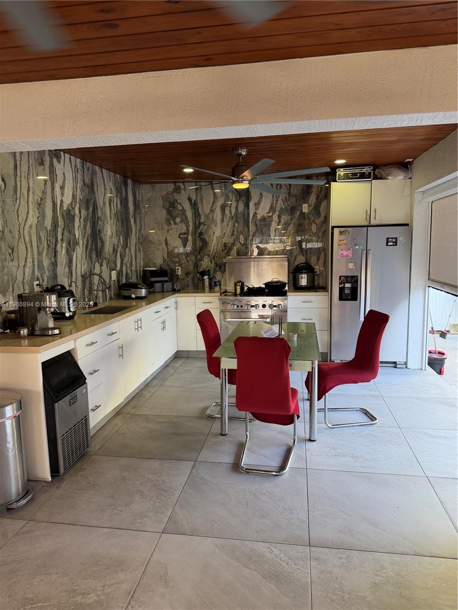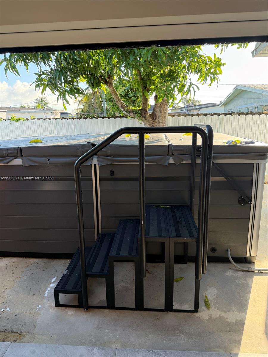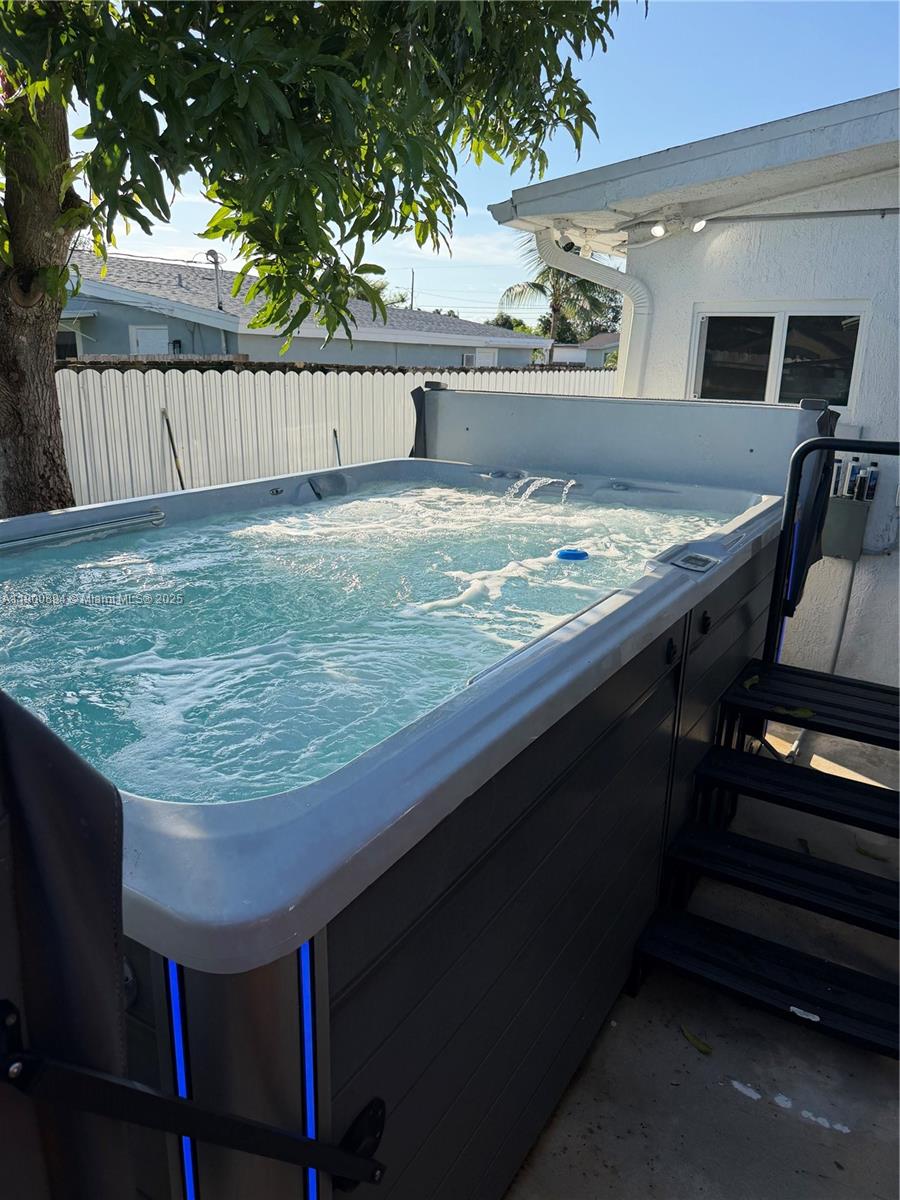 Completely remodeled residence with 3 bedrooms and 3 bathrooms featuring luxury finishes. Spacious driveway with enough space for parking. Modern washer and dryer with a confortable space of laundry. Modern indoor kitchen with a quartz counter top and enough spaces for storage. Terrace with outdoor kitchen. The jacuzzi shown in the photos is negotiable. Electric blinds throughout the property (including the terrace). Modern purified water system for the entire property. Impact windows and doors. Schedule your visit today.