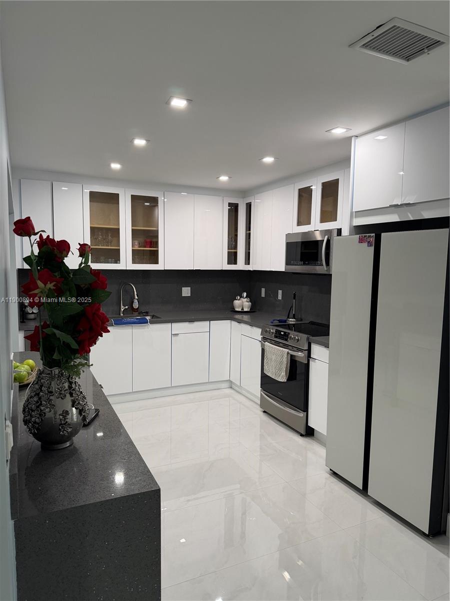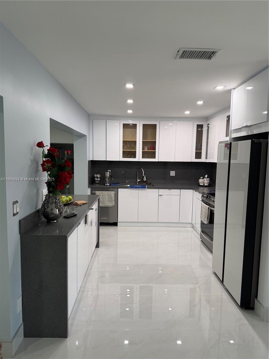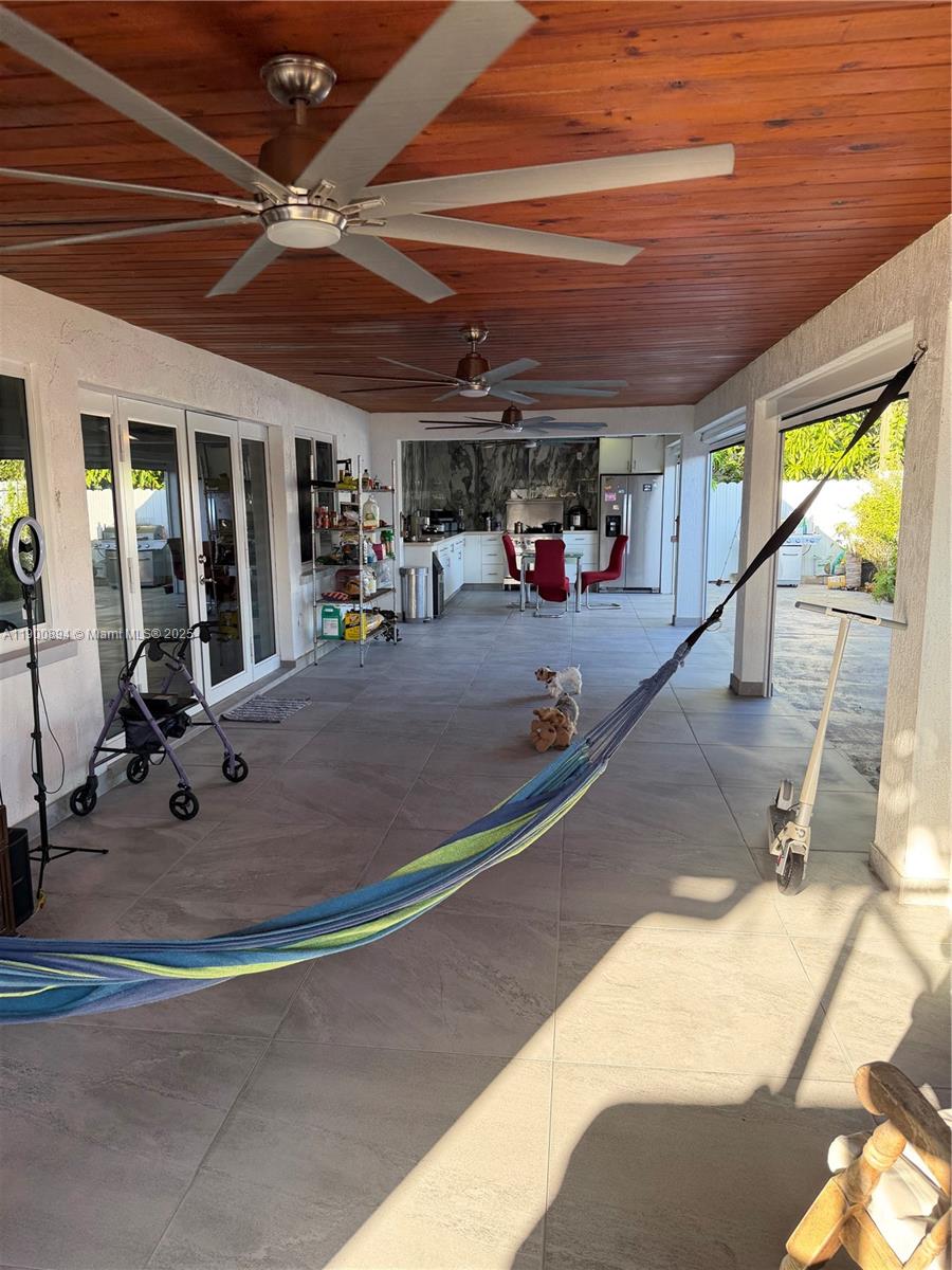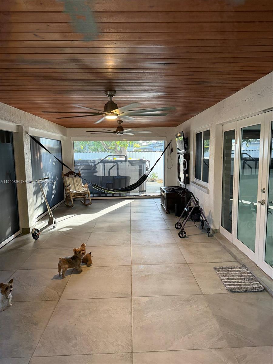 Completely remodeled residence with 3 bedrooms and 3 bathrooms featuring luxury finishes. Spacious driveway with enough space for parking. Modern washer and dryer with a confortable space of laundry. Modern indoor kitchen with a quartz counter top and enough spaces for storage. Terrace with outdoor kitchen. The jacuzzi shown in the photos is negotiable. Electric blinds throughout the property (including the terrace). Modern purified water system for the entire property. Impact windows and doors. Schedule your visit today.
