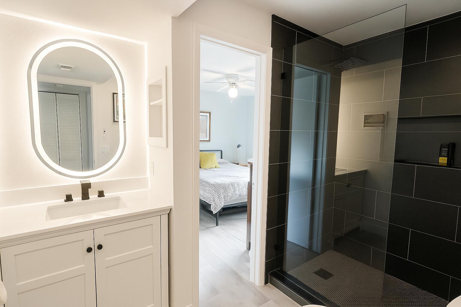 Welcome to your serene retreat in this stunning corner condo! Nestled among lush greenery, this fully furnished unit offers the perfect blend of privacy and convenience. Recently renovated with a modernized bathroom, this light-filled home exudes comfort and style. Enjoy a spacious layout, full-sized washer and dryer, and all the comforts of home. Within a gated community, you'll have access to a large pool, clubhouse, gym, workspace, basketball and tennis courts, and more--perfect for any lifestyle!
