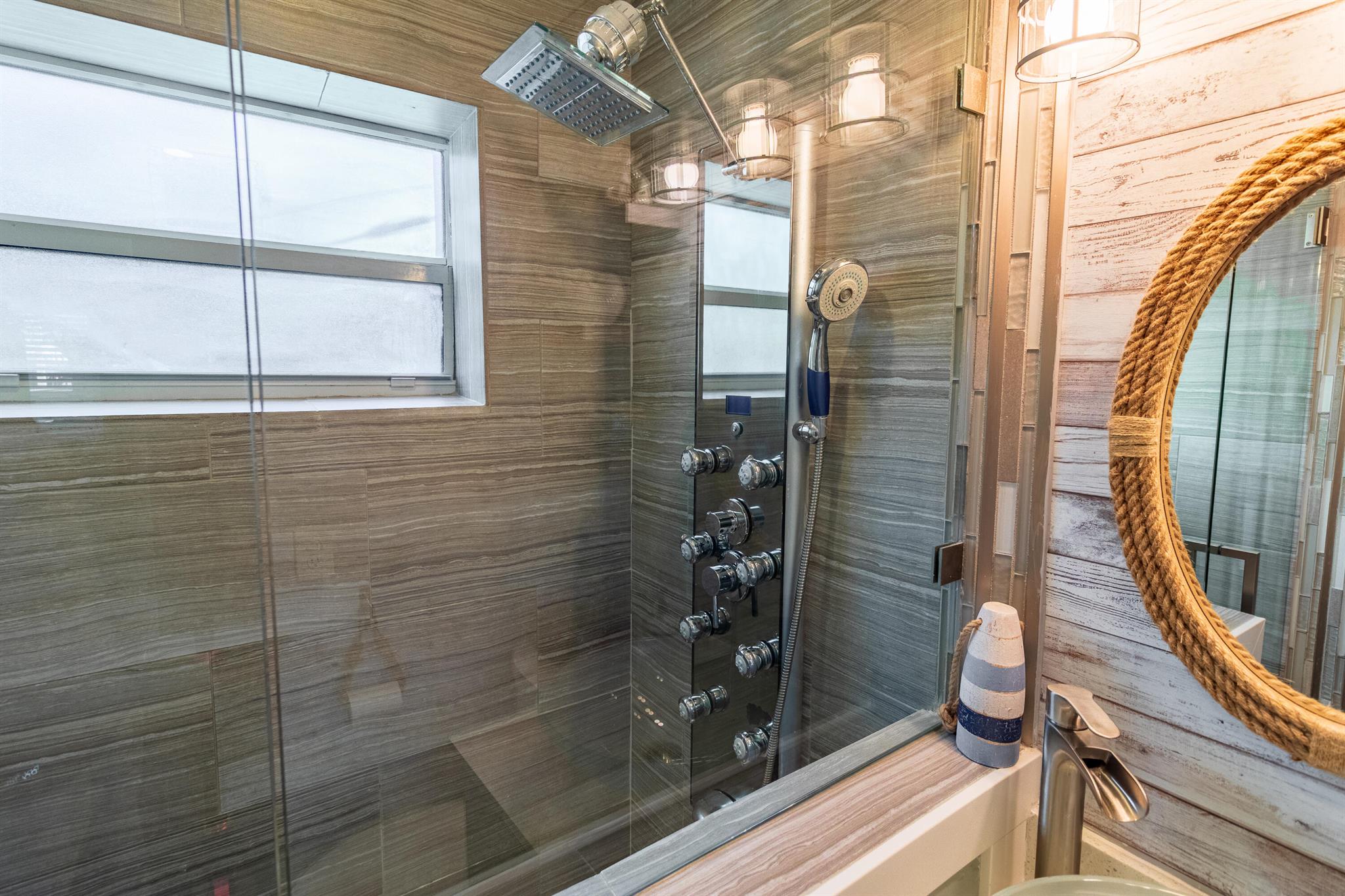 Stylishly Remodeled Gem in West Palm Beach!This beautifully upgraded 2-bedroom, 1-bath home perfectly combines modern finishes with warm Florida charm. From the moment you arrive, you're greeted by a lush front yard, mature shade trees, and a welcoming covered patio--ideal for relaxing in the evening breeze. Step inside to find an open-concept living area with exposed wood beams, crown molding, recessed lighting, and luxury wood-look tile flooring throughout.The custom kitchen is a showstopper with glossy European cabinetry, quartz countertops, a farmhouse sink, stainless-steel appliances, and a stunning glass mosaic backsplash. Enjoy meals in the cozy dining nook featuring a handcrafted wood table and built-in bench under a rustic chandelier.