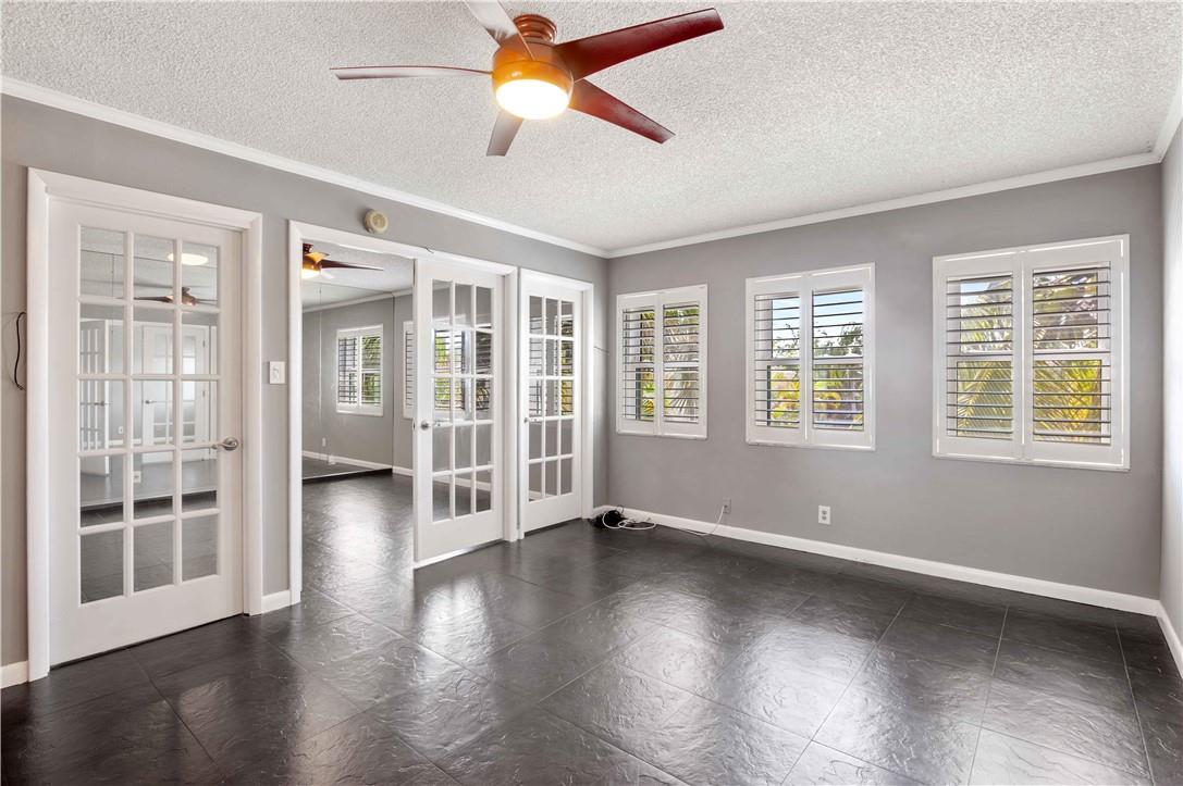 Updated 1BR/1BA condo at La Cancha in Victoria Park! Spacious and open floor plan with slate-like smooth tile throughout, crown molding and plantation shutters. Modern kitchen with pendant & accent lighting, euro-style cabinetry, granite counter tops and stainless appliances. Bedroom suite features a wall of French doors separating the living area, giving the apartment an even larger feel, and a spa-like bathroom (accessible from both living area and bedroom) which includes a shower with seamless glass enclosure, pebble floor, rain & hand held shower heads and modern vanity sink. Walk-in closet has been meticulously outfitted to maximize storage. Impact windows keep your sanctuary safe, quiet & cool. Very well run complex ideally located adjacent to Holiday Park & minutes to Las Olas!