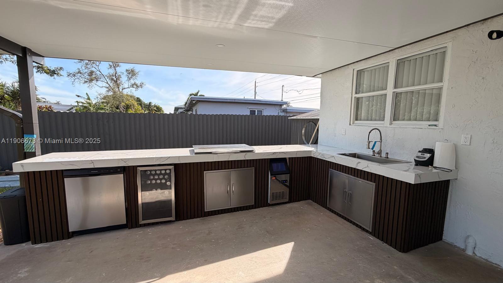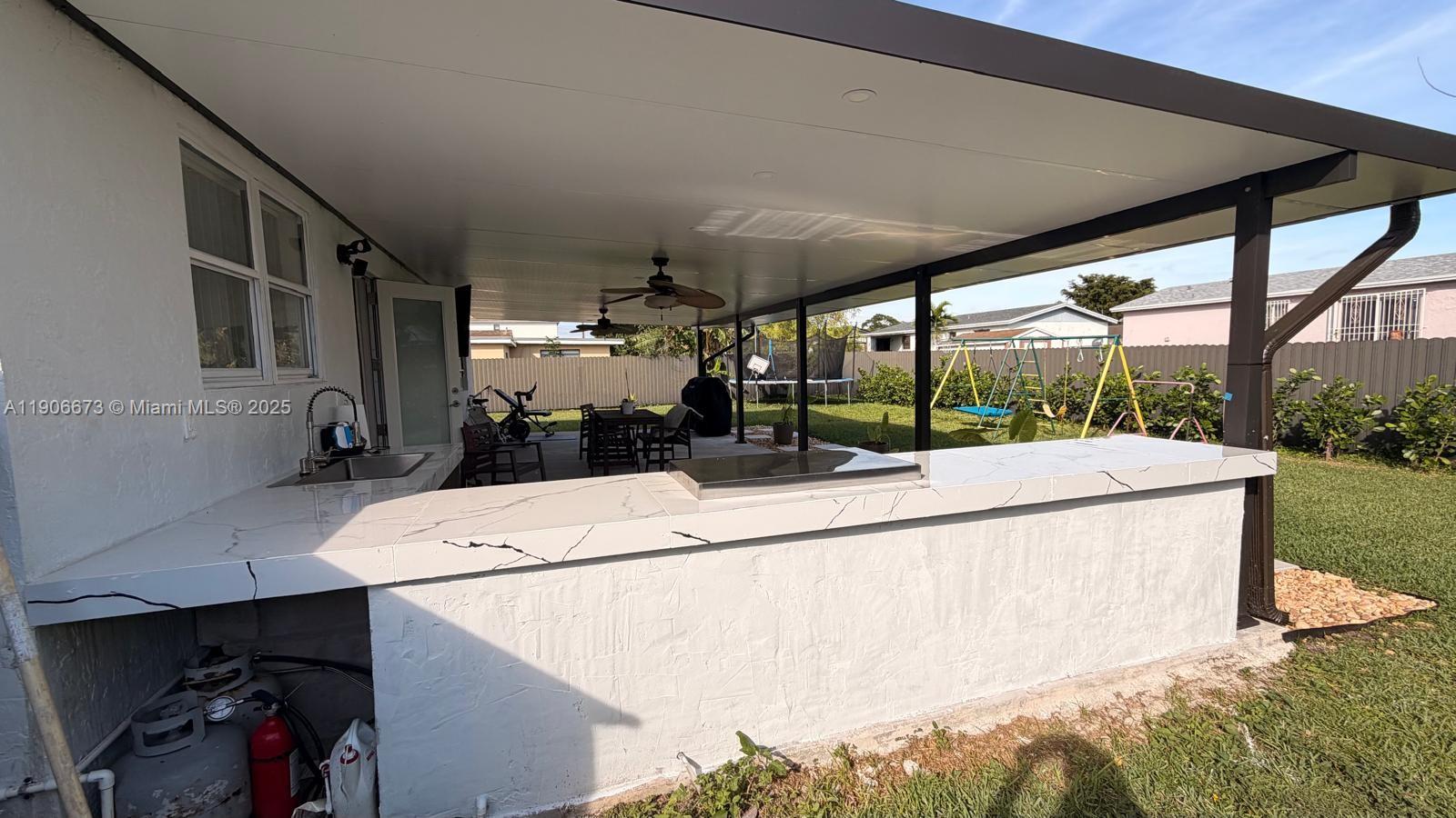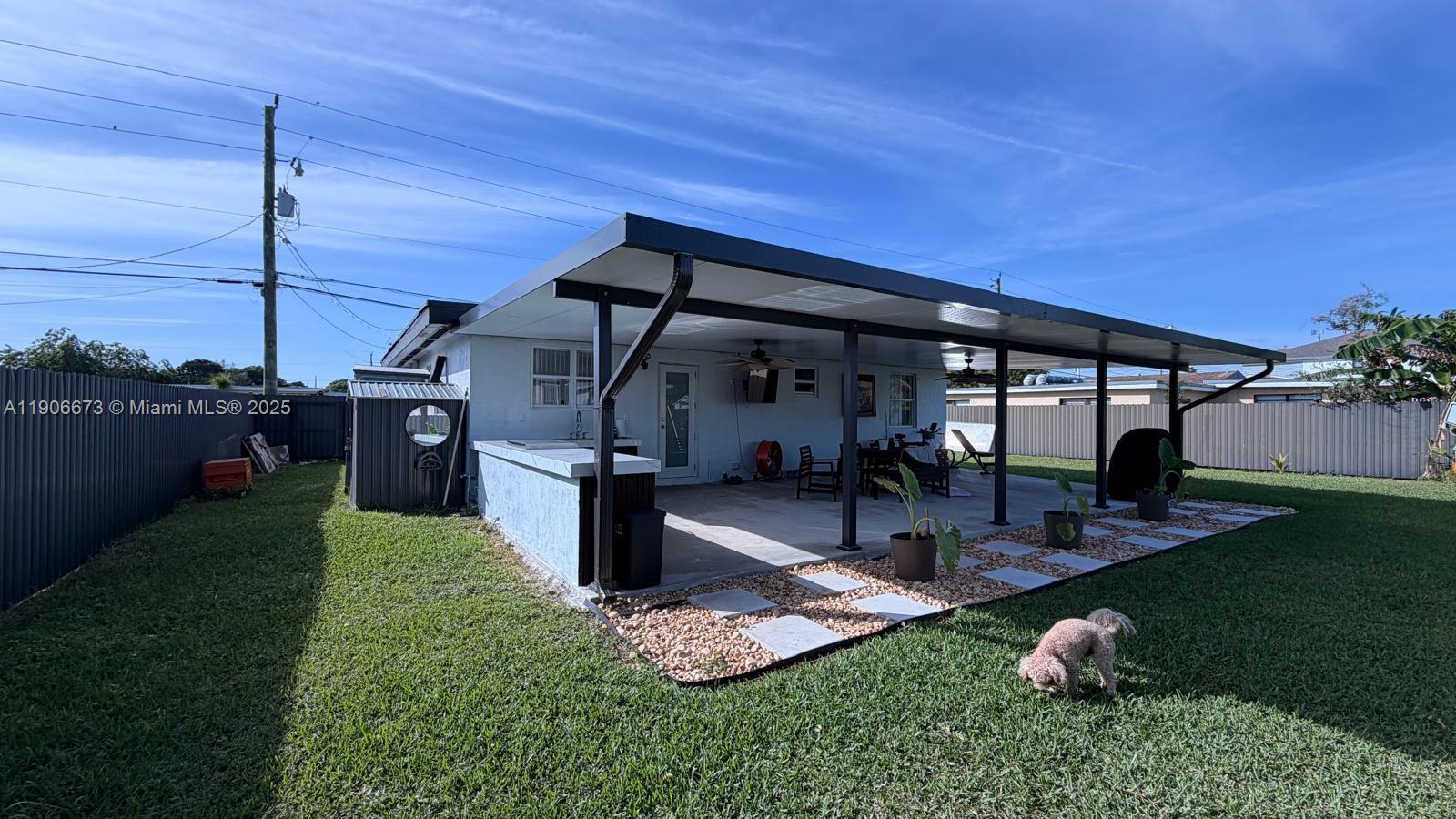 Beautiful fully remodeled home featuring 3 bedrooms and 2 modern bathrooms. Enjoy a brand-new kitchen, new flooring throughout, and a stunning 700+ sq. ft. covered terrace with a fully equipped outdoor kitchen — including a dishwasher, refrigerator, and sink — perfect for entertaining. The property is completely fenced with new aluminum fencing and offers a new front gate and spacious driveway. Move-in ready, this home combines comfort, modern finishes, and exceptional outdoor living. A must-see!