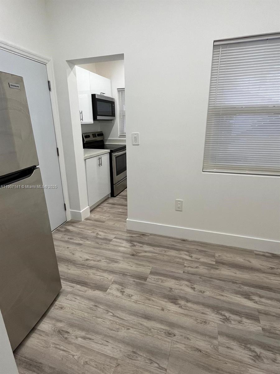 Completely remodeled on 2024 unit available for rent. Steps from Marlins stadium. Gated community with security cameras throughout. New impact windows, AC, stainless steel appliances and more. Walk to restaurants, shops and bars. Public transportation nearby. Apartment available on 1st floor. No pets. No smoking. Laundry in the building. Service included water and garbage. 1 parking.