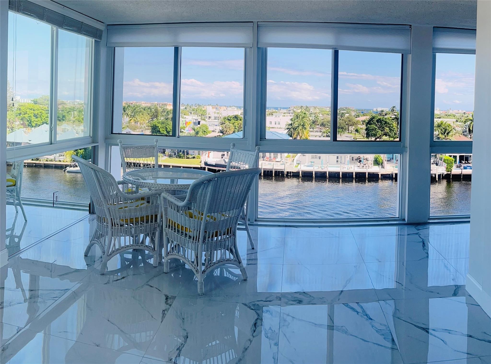 DIRECT intracoastal 2 bedroom and 2 full bathroom NE corner. Light and bright with recently updated kitchen and floors. Have a seat at the corner table that overlooks mega yachts passing under the Commercial Blvd bridge into LAUDERDALE BY THE SEA and have morning coffee what watching the sun rise from the ocean views in the horizon. Hurricane impact windows provide excellent sound suppression when closed and open up to allow amazing air flow throughout the entire living space. Walk immediately next door for dinner or drinks at Kaluz, or stroll right over the bridge for public beach access. The unit comes with garage parking and common area amenities include a direct intracoastal heated swimming pool and bbq grill. Fiber optic internet & tv, water, sewage and trash removal included in rent.