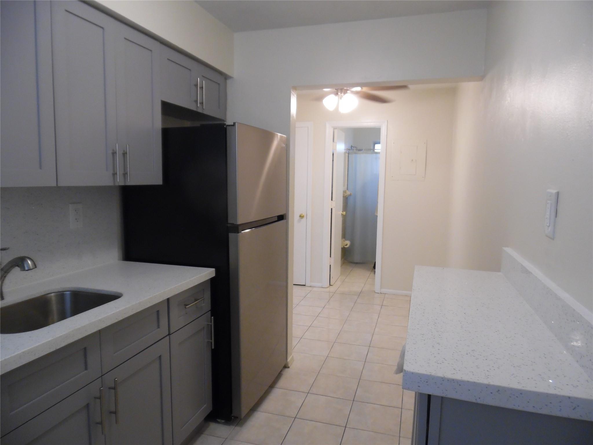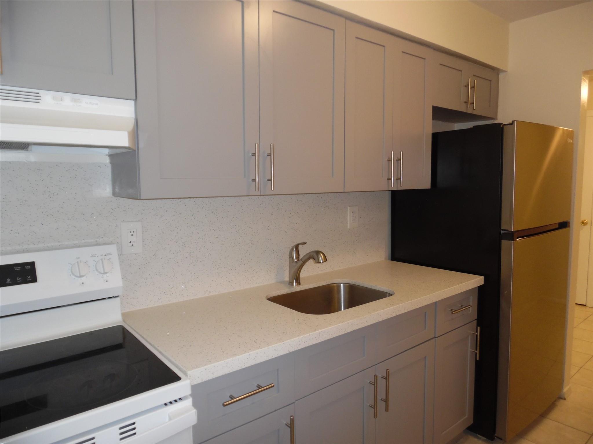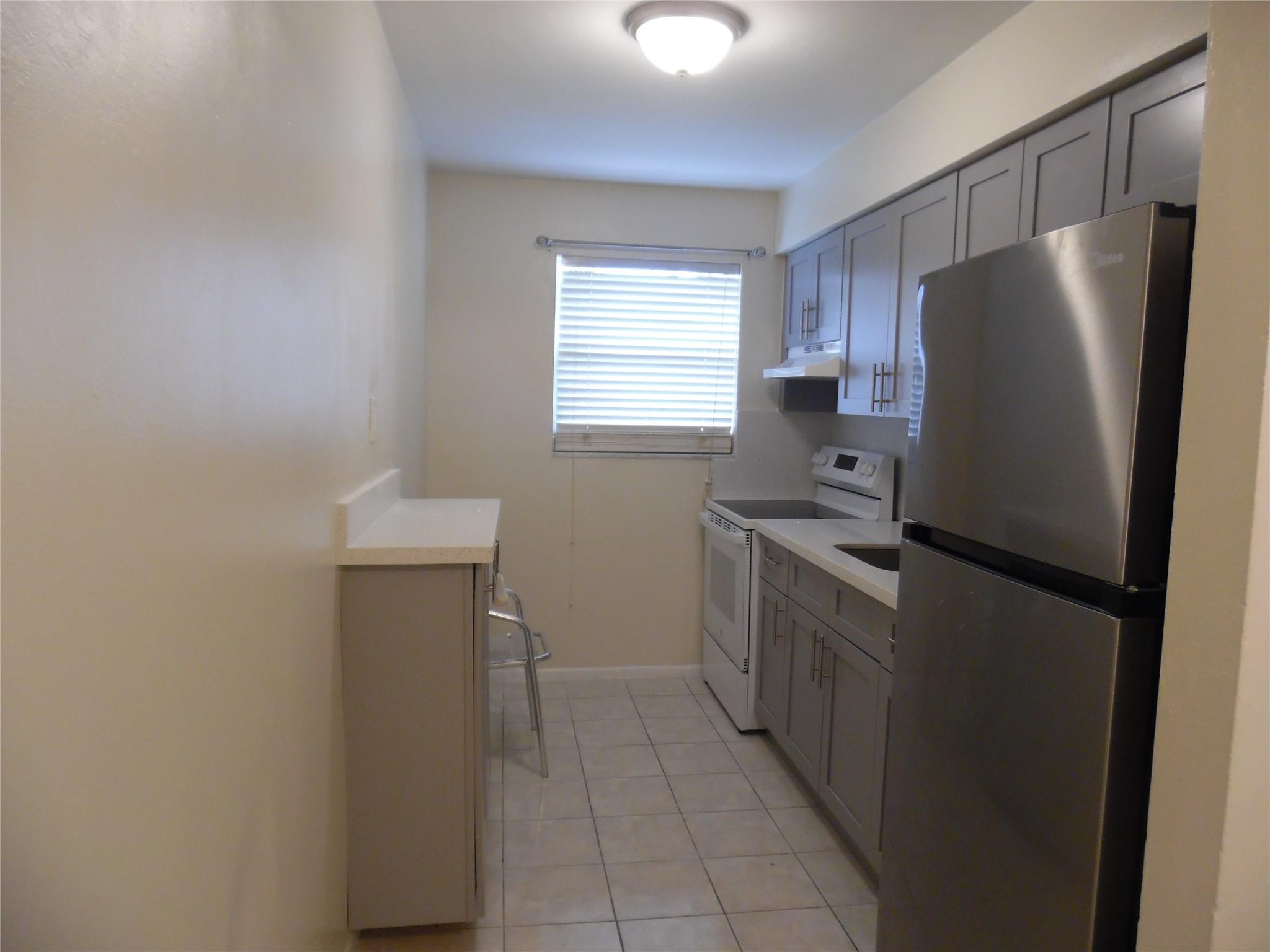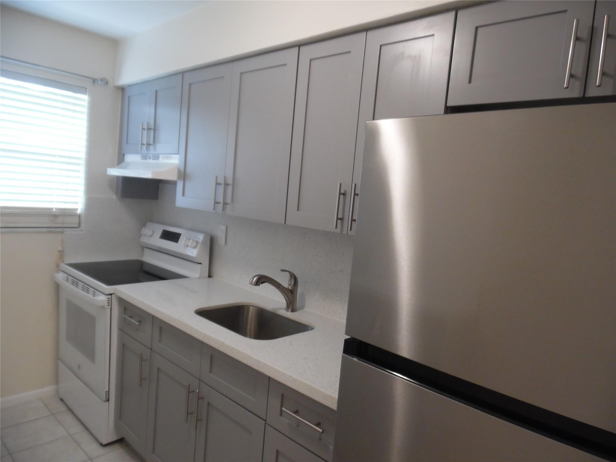 Spacious & clean 1bed & 1 bath available for immediate occupancy. This lovely end unit features brand new kitchen cabinets with quartz counter tops and backsplash and new appliances, new a/c , updated bathroom, new paddle fans and freshly painted. New vertical blinds on all windows, tile floors throughout. Close to Davie colleges, shopping and transportation. Only require 1st month and 1 month's security deposit to move in. Water & sewer is included up to $60. Enjoy low electric bill. Present your offer with completed application, d/l, credit report, proof of income, background report and proof of funds.