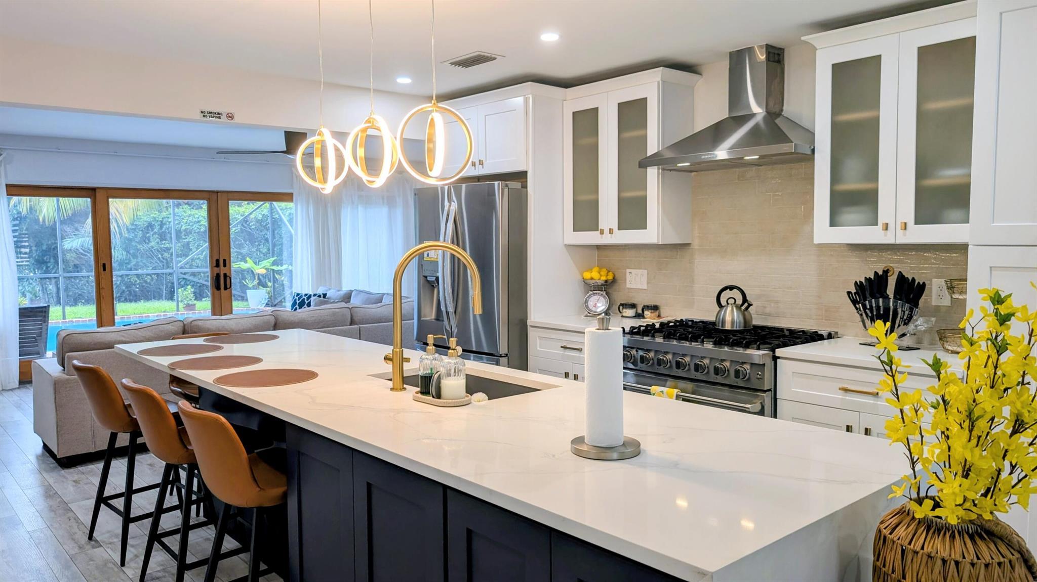 Available for the Winter season starting February 1st 2026. This lakefront fully renovated turn-key home with a boat dock secures up to a 20 foot boat. Enjoy direct lake access that is navigable to the Intracoastal Waterway and the Atlantic Ocean. Enjoy the outdoor space poolside for a true Winter in South Florida experience. The home has undergone meticulous renovations and is turn-key. There is a beautiful open kitchen with a gas range and hood, and a formal dining room. A unique feature is one of the bedrooms is set up as a private guest suite with views of the pool.