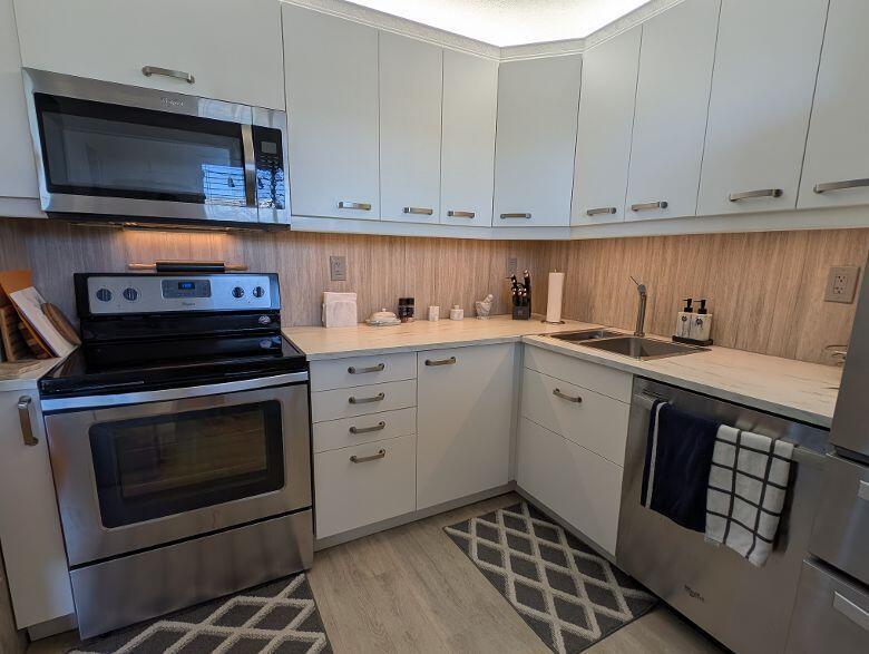 Beautiful condo with view of the canal and all the wildlife. Huge patio that is peaceful and quiet. 2 bedrooms, 1 bath, beautifully furnished, all wood laminate flooring throughout, updated kitchen with stainless steel appliances and spa like bathroom.Available 3 to 6 monthsTHIS IS A 55+ COMMUNITY AND TENANT MUST BE APPROVED BY ASSOCIATION TO LIVE THERE.