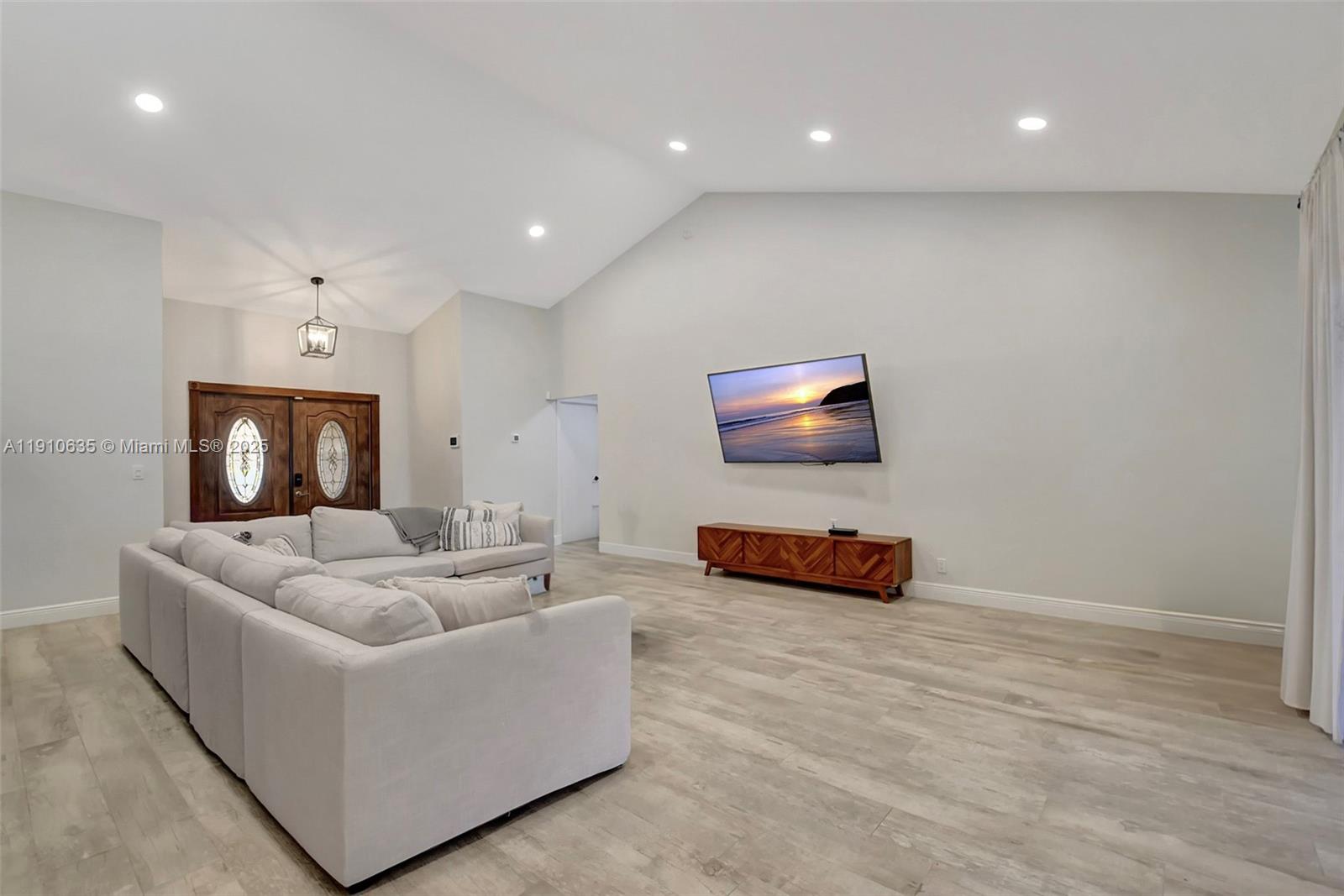 AVAILABLE JANUARY 2026! This stunning 4-bedroom, 3-bath pool home offered furnished or unfurnished is perfect for comfortable family living. Designed with a sleek contemporary style, your welcomed thru a covered porch leading into an open foyer and spacious living room that flows effortlessly into the dining area and breakfast kitchen with bar seating. A custom addition enhances the layout with a large media room, office, or study, complete with its own full bathroom. Each bedroom features generous closet space, including a walk-in closet in the primary suite. Additional highlights include a 2-car garage, laundry area, and a screened patio with deck terrace overlooking the backyard. Outdoor living with a heated pool, jacuzzi, and tiki hut—perfect for relaxing or entertaining year-round.