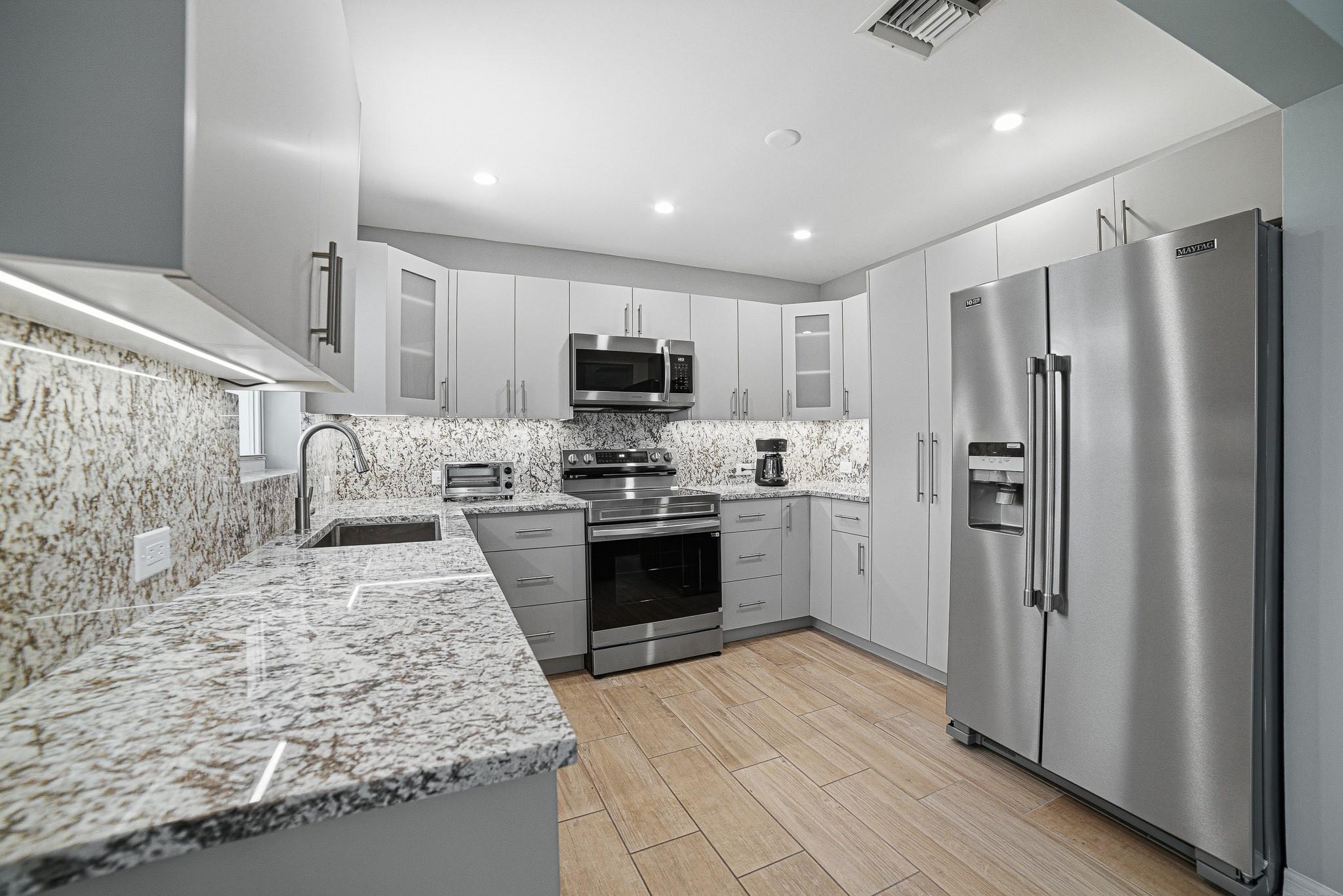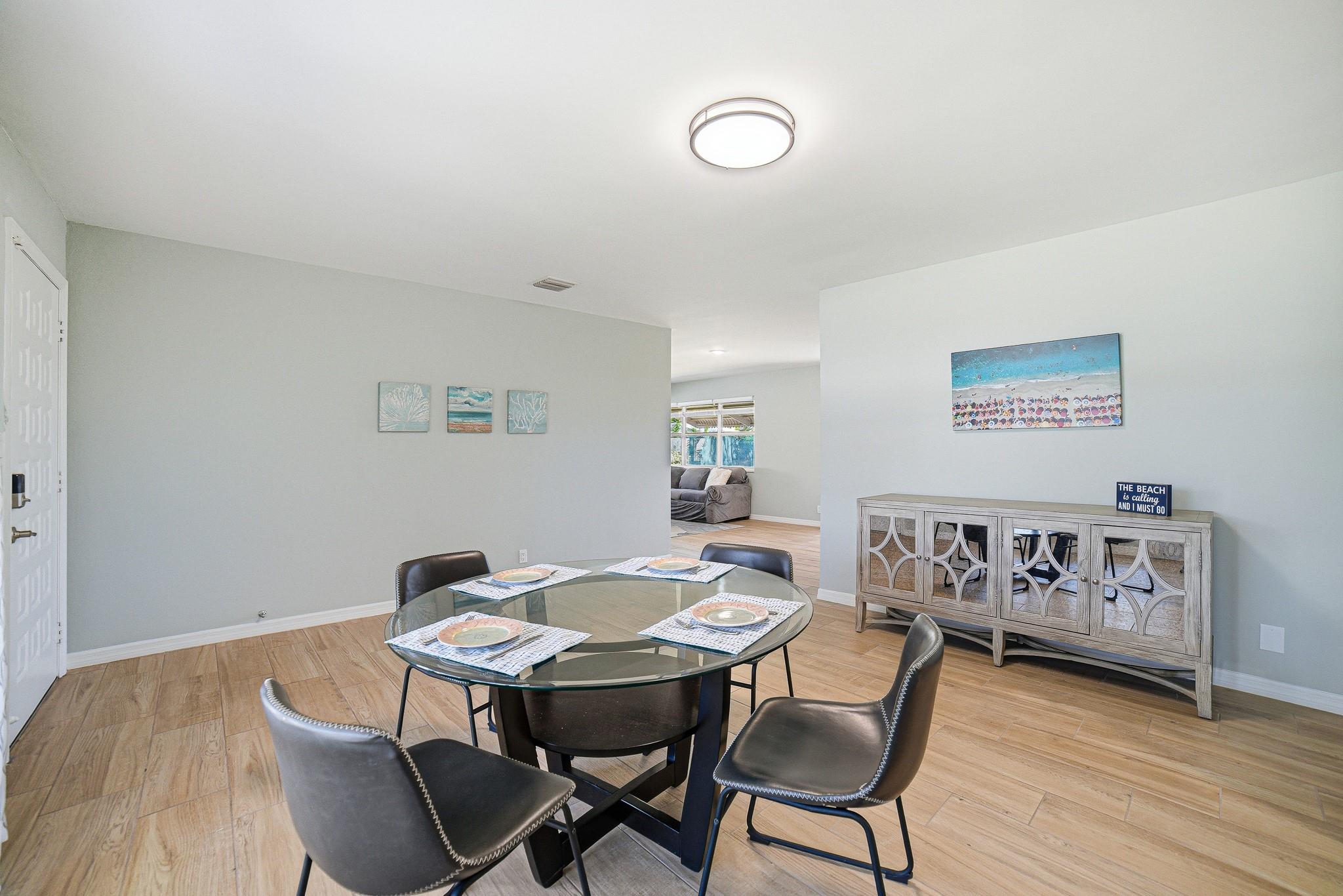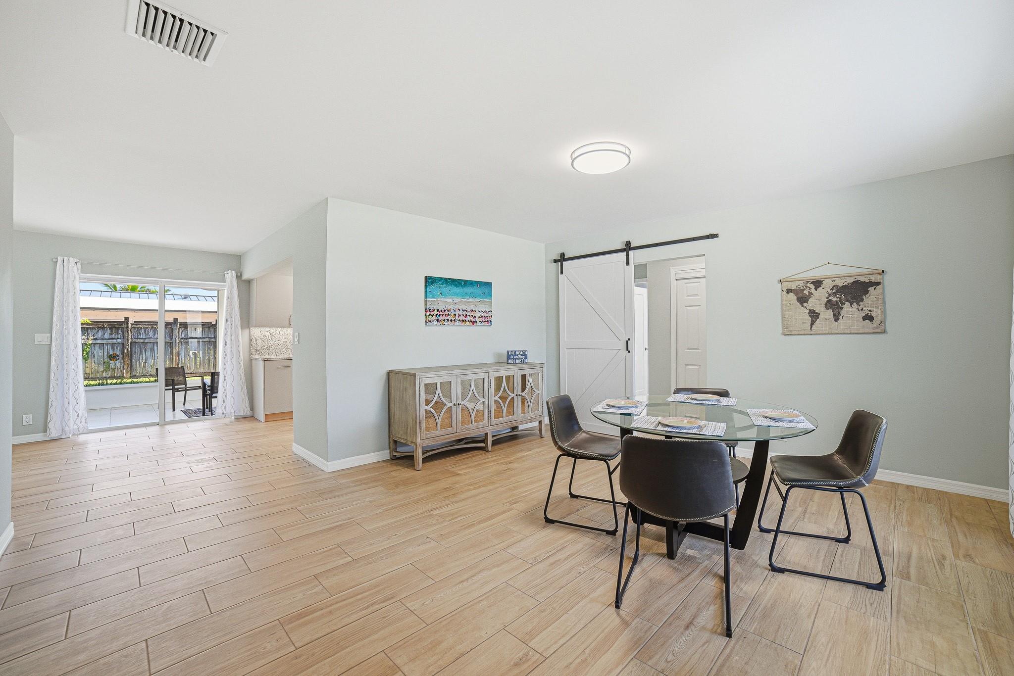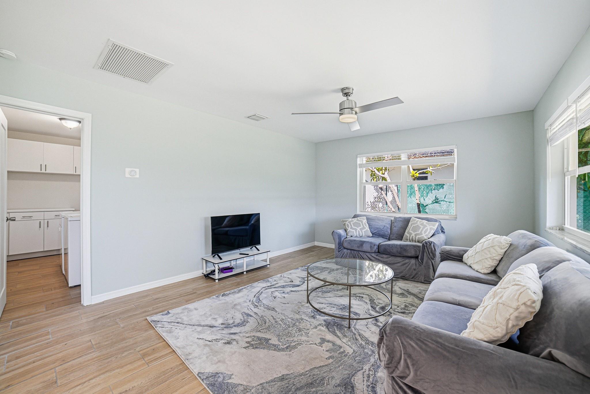Enjoy your stay in this fully renovated, quiet, and comfortable home just minutes from the beach. Two spacious bedrooms and two spa-inspired bathrooms offer comfort and style, complemented by a modern kitchen, separate dining area, and in-home laundry. Relax in the spacious backyard, unwind on the outdoor patio, or have a light supper under the covered veranda—perfect for warm Florida nights. Explore the vibrant, newly renovated Deerfield Beach Pier area filled with shops, restaurants, and oceanfront charm. Downtown Boca Raton, Mizner Park, and Town Center Mall are only a short drive from your door. Publix, the Cove, and Intracoastal are within walking reach. SEASONAL OPTION AVAILABLE FOR A HIGHER RATE. 2 months minimum stay.