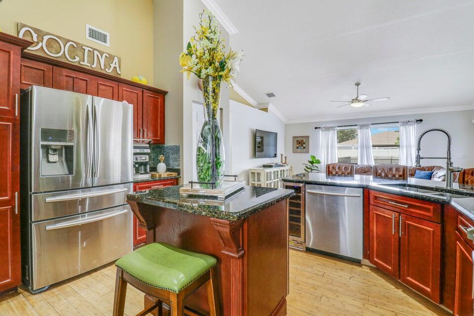 Beautiful Pool Home for Rent. This spacious 3-bedroom, 2-bath plus office/flex room or 4th bedroom., 2,062 sq. ft. 10,000 lot with no HOA. Recently updated with new tile flooring throughout, newer appliances, and washer and dryer included, this home blends comfort and convenience in every detail. Enjoy your private, fully fenced backyard oasis complete with a covered patio and full outdoor kitchen -- perfect for relaxing weekends or entertaining family & friends. The home has been freshly pressure washed and is move-in ready. Pool service is included, and tenants are responsible for lawn care. Ideally located near shopping, dining, the Turnpike, & I-95 with quick access to Stuart and the beaches. LANDLORD WILL ACCEPT LAST MONTHS RENT IN 6 PYMTS OF 583.33 EACH TO MAKE IT EASIER FOR TENANT