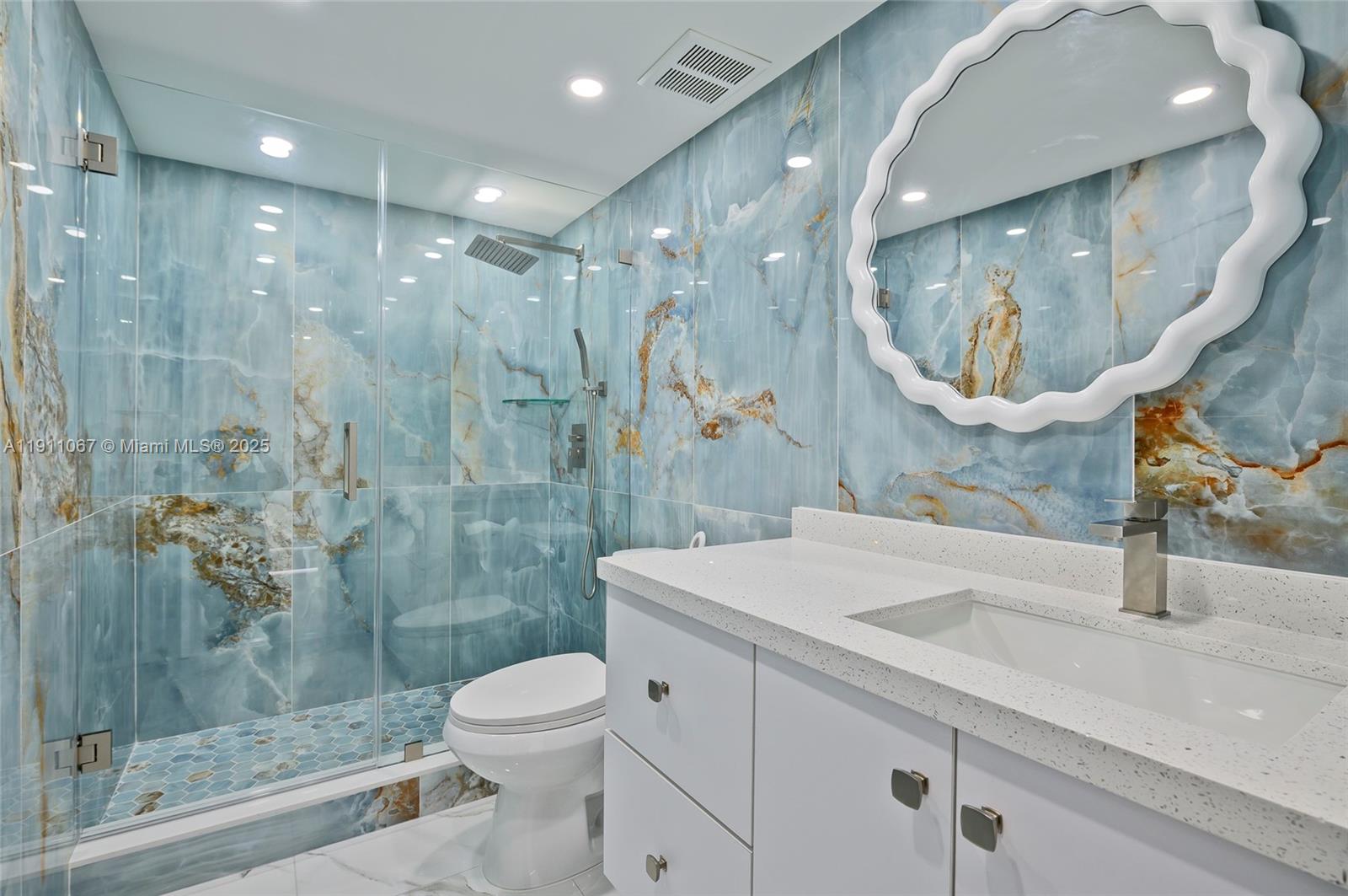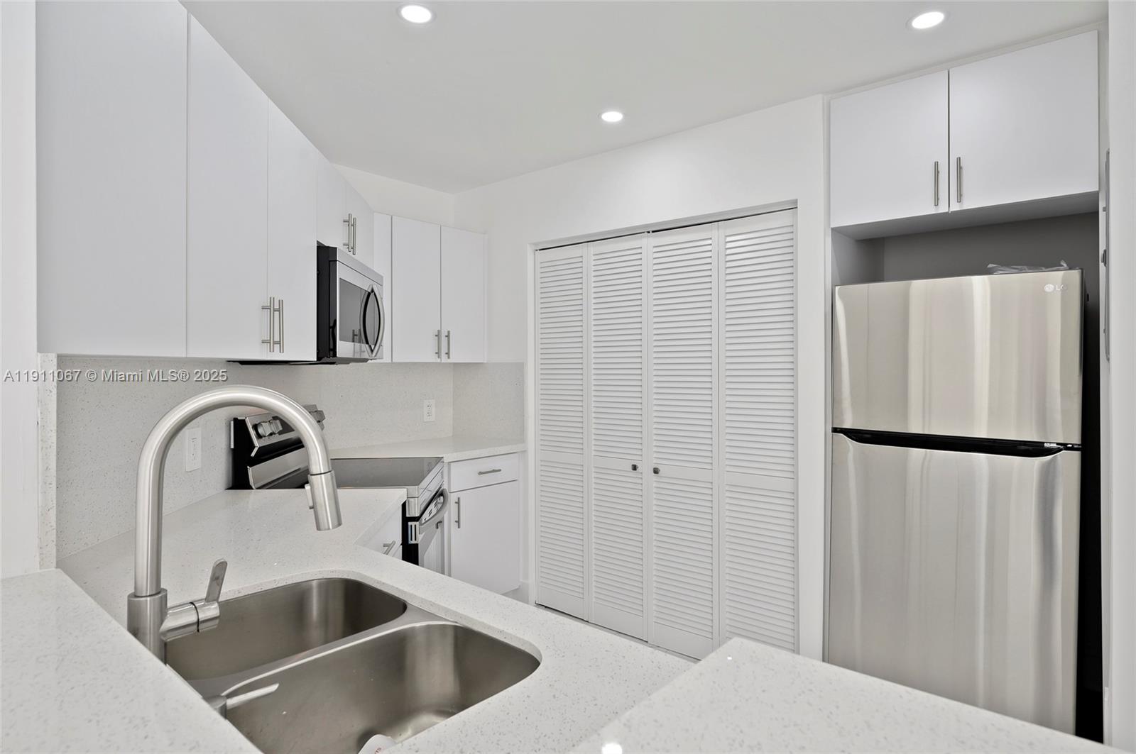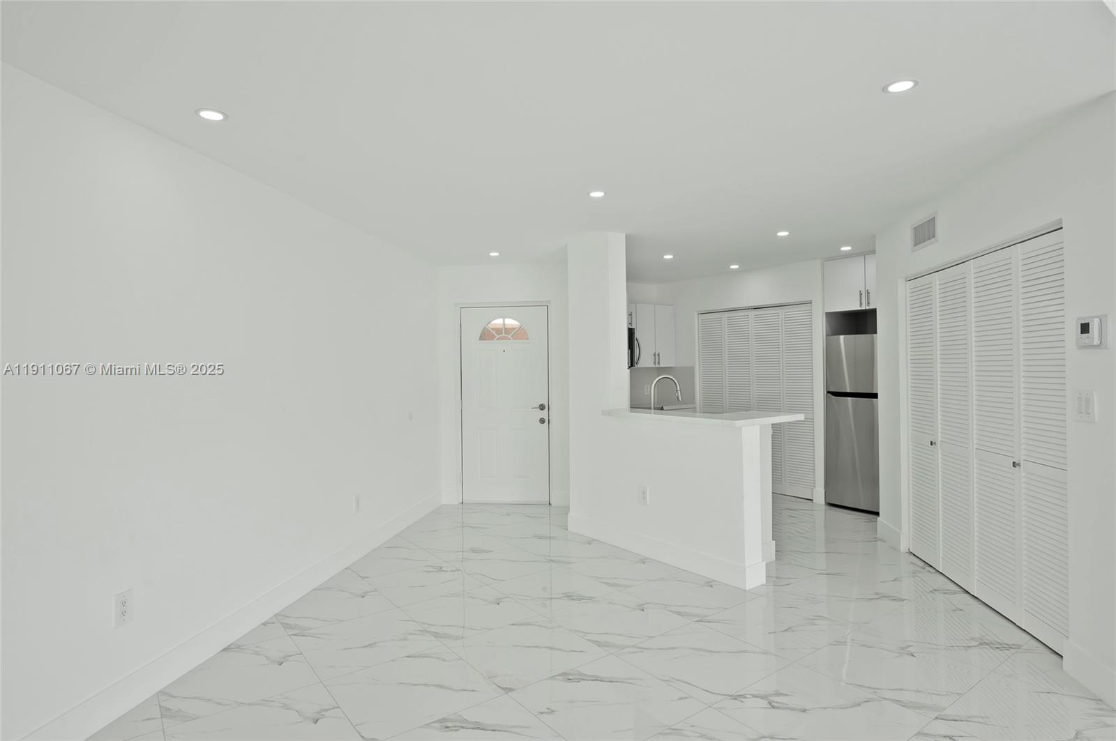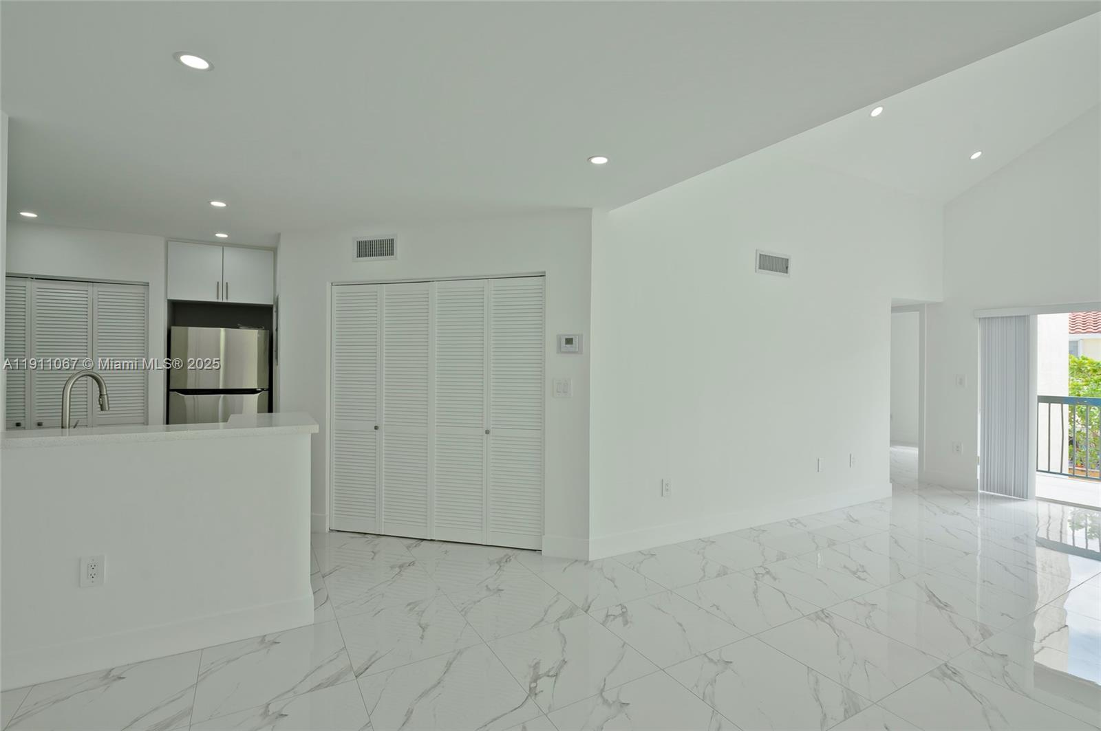 Welcome to this beautifully fully renovated 2-bedroom, 2-bath residence located in a charming, gated Mediterranean-style. This unit has all new stainless-steel appliances, brand new kitchen with white quartz counter tops, washer, dryer, AC and electric box. It has a beautiful marble flooring, and luxury porcelain tile bathrooms. It is conveniently located next to shops, restaurants, supermarkets, etc. The community has a nice Gym, pool, jacuzzi, and security patrol.