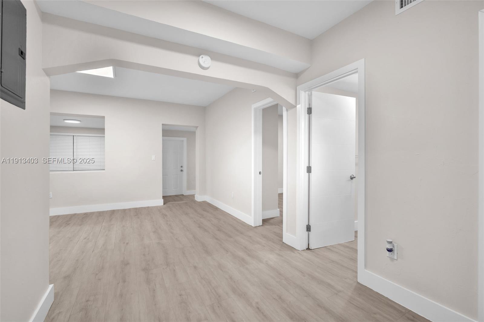 Now available for rent: a beautifully updated 3-bed, 1-bath first-floor unit featuring recently upgraded plumbing, electrical, and AC; impact windows and doors; a modern kitchen with stainless steel appliances; updated flooring; and sleek contemporary finishes. The unit also offers a versatile additional room perfect for an office, playroom, or extra storage. Enjoy two parking spaces and access to a separate laundry area with washer, dryer, and utility sink. Nestled on an oversized lot with shaded outdoor areas and mature fruit trees (mango, avocado, lime, orange), this home is just blocks from the future Miami Freedom Park stadium and minutes from the airport, hospitals, Downtown, Brickell, and Miami Beach. Move-in ready with no HOA approval required. Schedule your showing today!