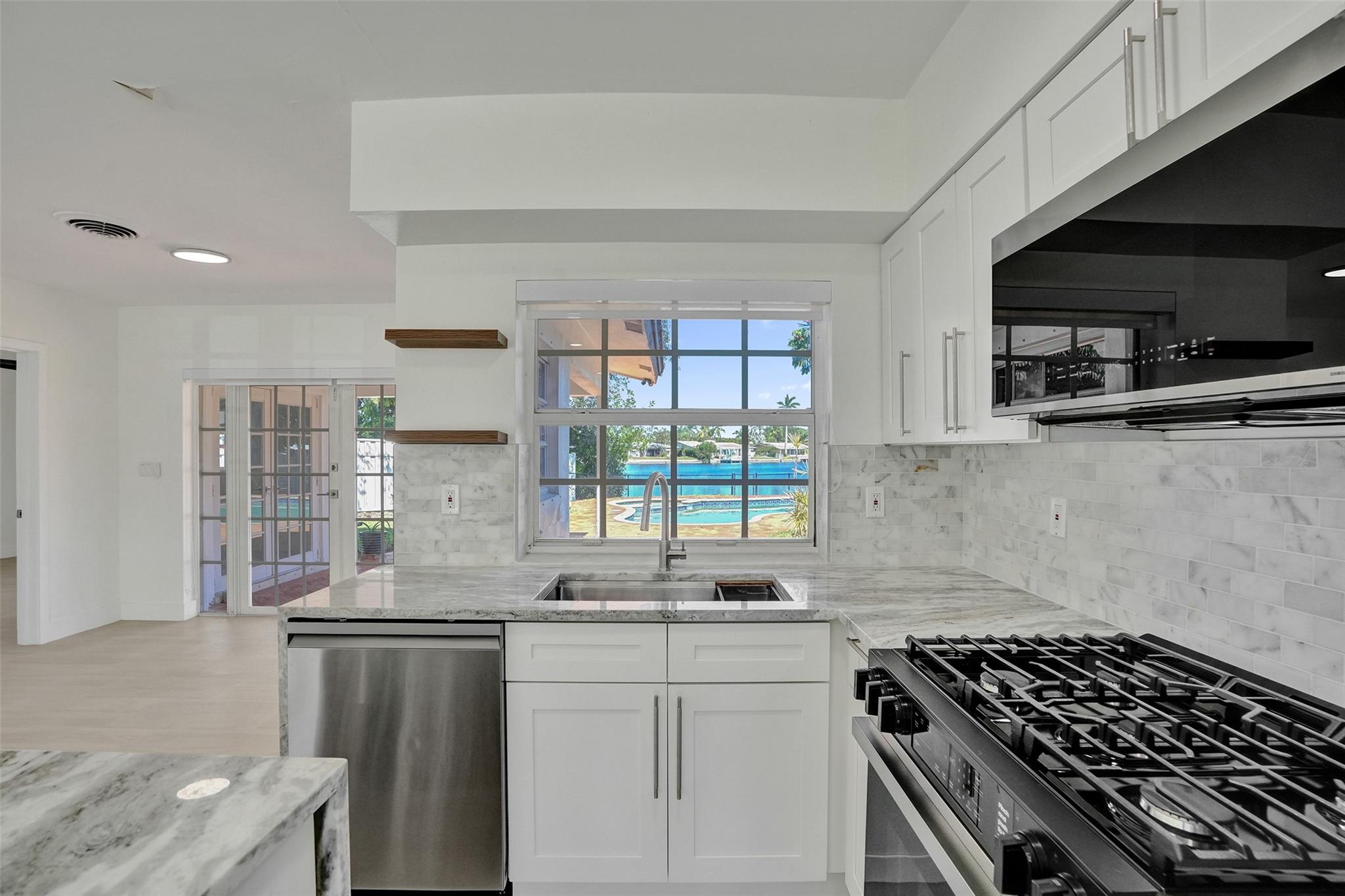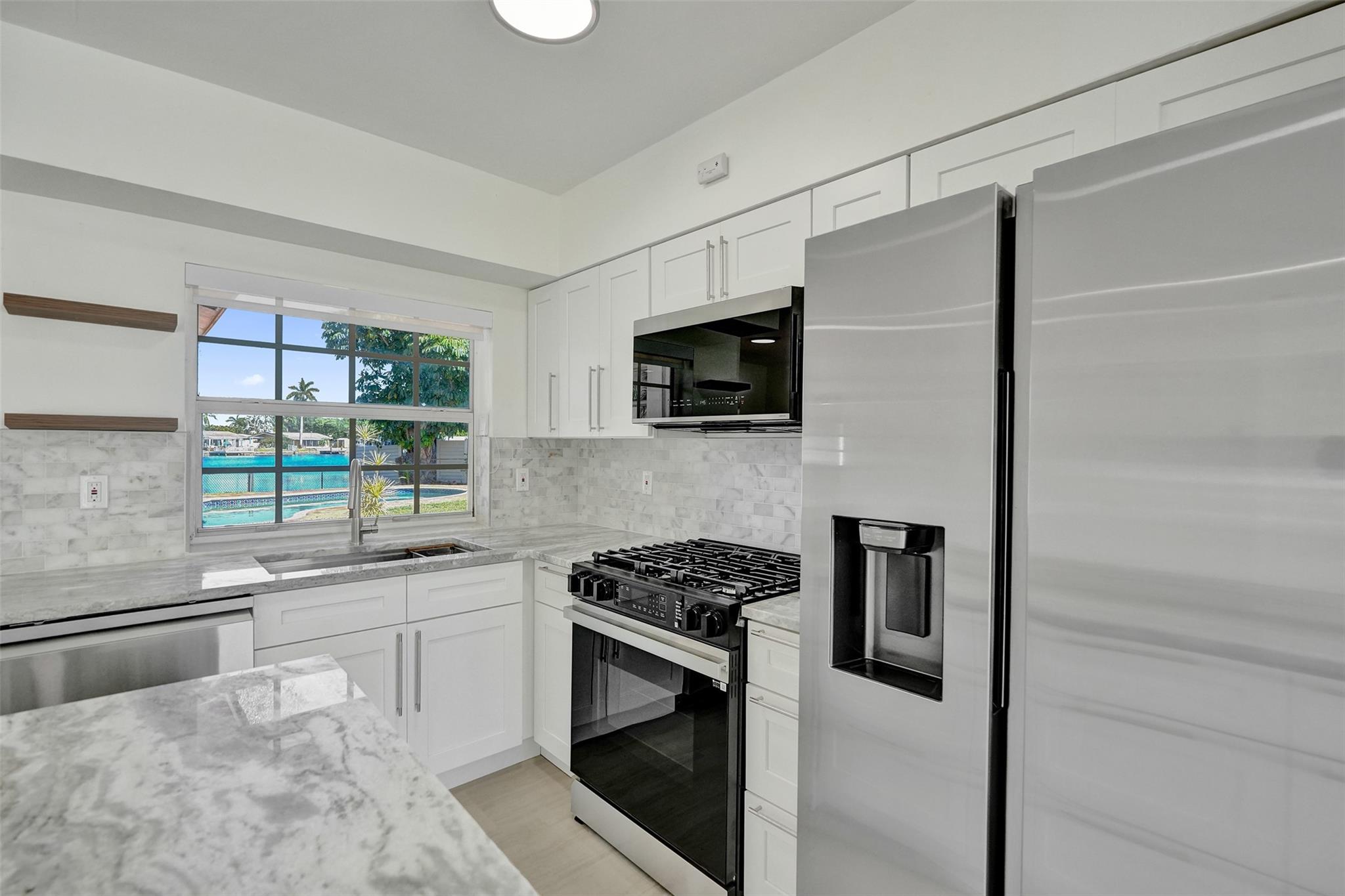 Updated 3 bedroom 2 bath Pool home on the water in CORAL HEIGHTS. Large Corner property. Bring the Kayaks and Paddle Boards. GIGANTIC backyard with pool and large paver deck. Lots of room inside and outside the home to spread out. Split bedroom plan. Gourmet Kitchen with a Gas range and prep Island for cooking and storage with ALL NEW APPLIANCES, EVEN THE WASHER AND DRYER. Clean, bright and freshly painted with lots of room for your family. This home is available now. Close to all major thoroughfares. Peaceful neighborhood with beautiful homes. Listing price INCLUDES POOL & LAWN MAINTENANCE.