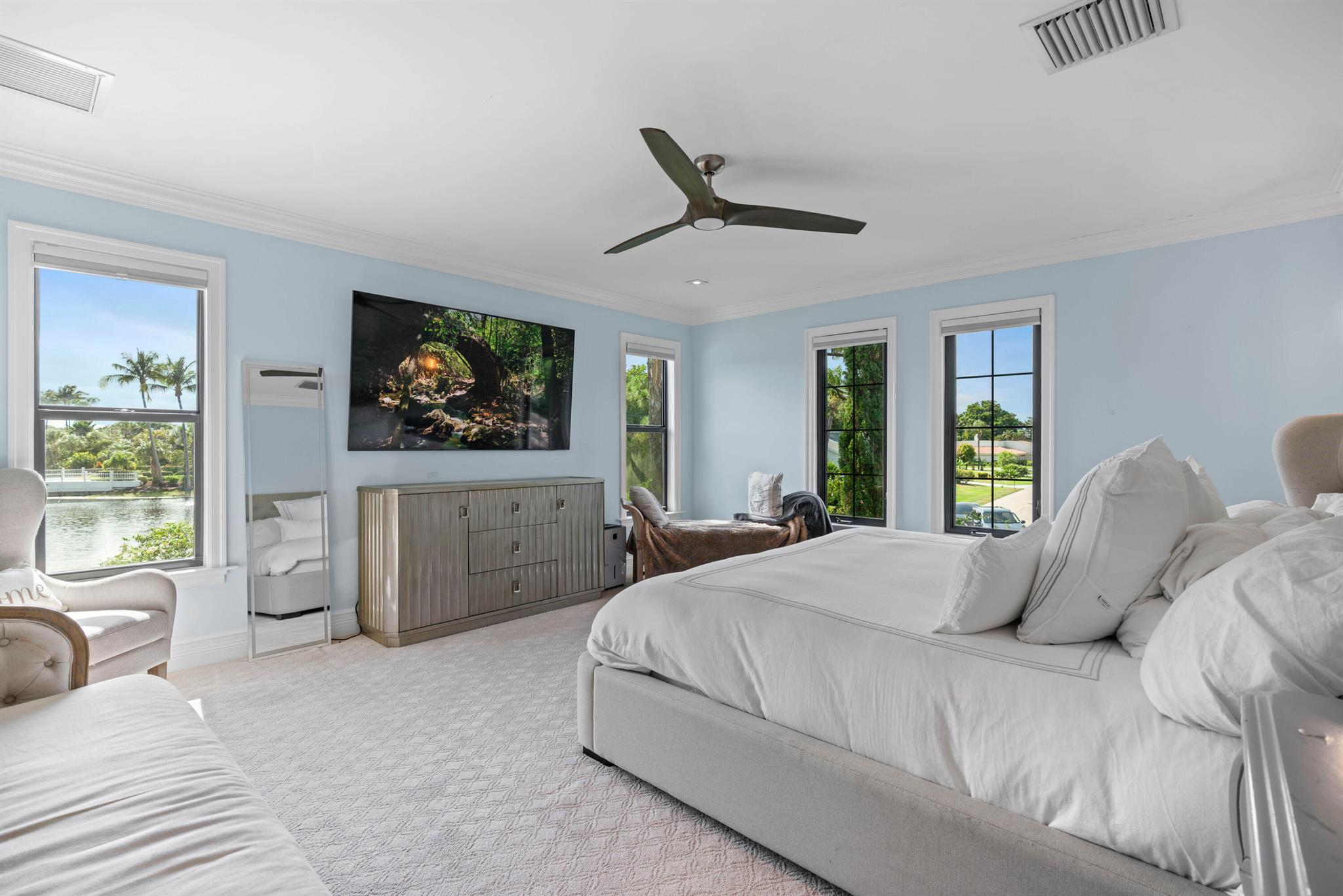 Winter retreat is here! Truly one of a kind offering an exquisite residence in the sought after Eastpointe Country Club. one of the largest homes featuring breathtaking views of the lake from every room and enjoy the oversized property, giving the utmost privacy. Completely remodeled and designed by an exclusive custom home builder and designer. This immaculate estate boasts one of the largest lots in the neighborhood, offering expansive outdoor space for relaxation and entertainment. This home features all impact glass, custom marble countertops, high-end cabinetry and appliances, porcelain tile flooring, gorgeous landscaping, and one of the most desirable floor-plans Eastpointe has to offer. Brand new state of the art Clubhouse just built making this Country Club living at its finest.