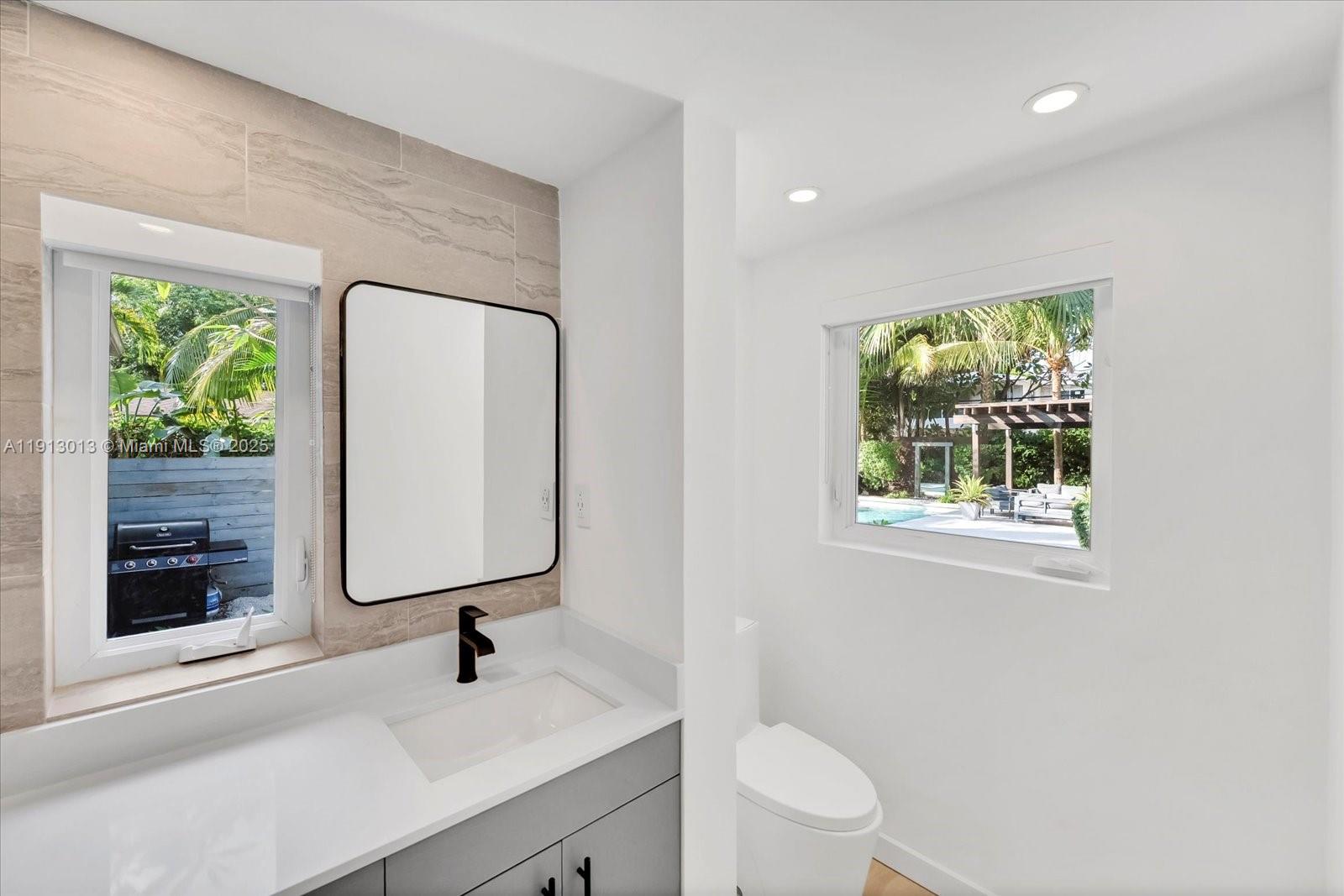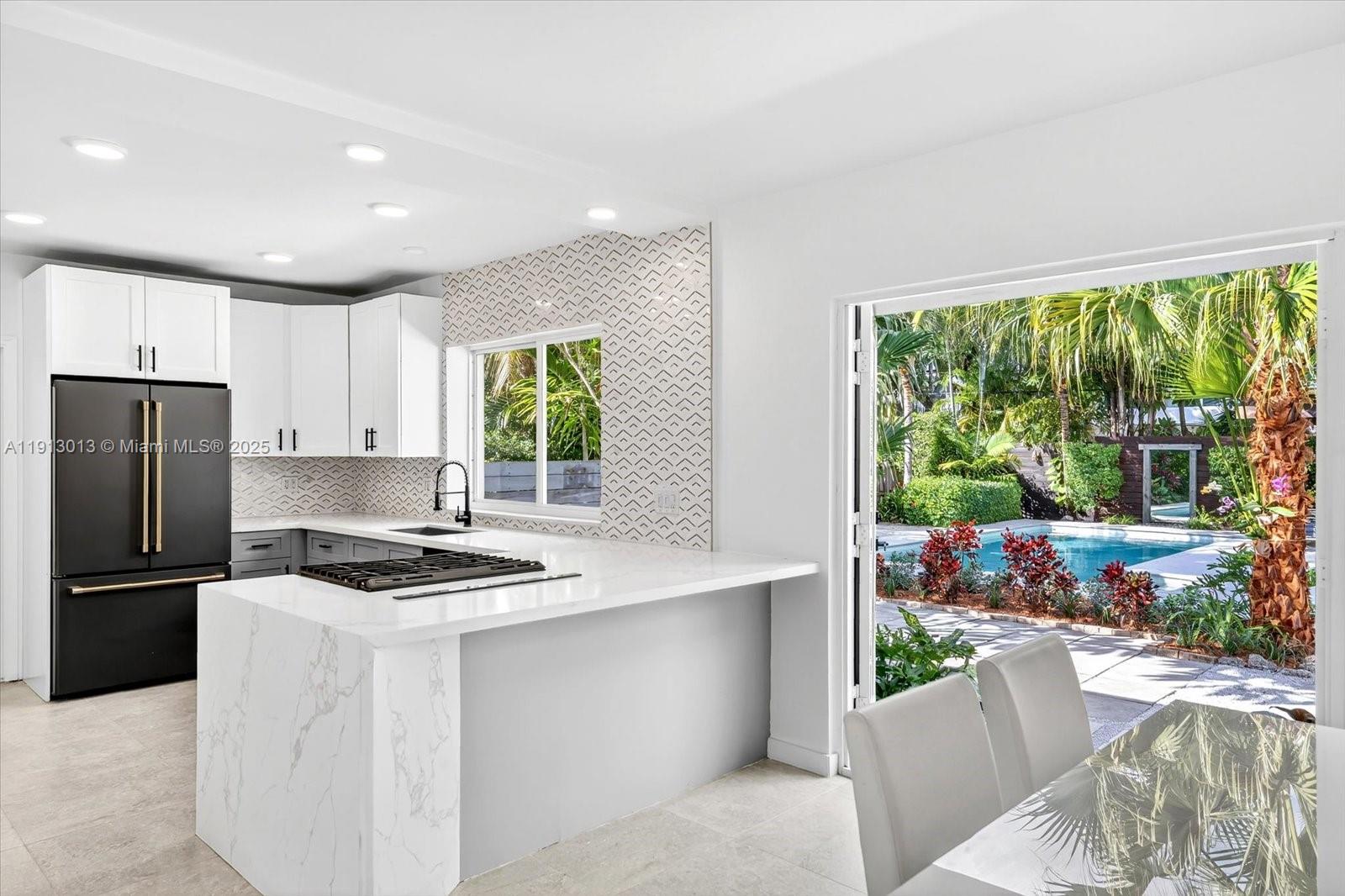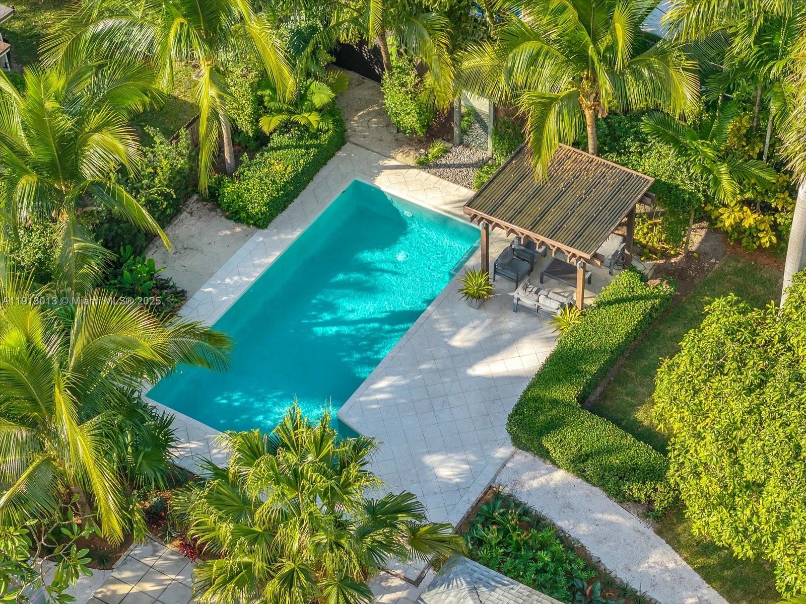 Step inside this paradisiac and lush tropical oasis, featuring 3 spacious bedrooms and 2 bathrooms bathed in natural light, with open and modern, recently upgraded living spaces and kitchen. Outside, enjoy an oversized sparkling pool, an expansive deck and outdoors showing, perfect for entertaining or relaxing to the gentle songs of birds and nature. The spacious front and back yards, surrounded by mature tropical landscaping, create a private retreat on a 9,750 SF lot that offers a true indoor-outdoor lifestyle. Ideally located just an 8-minute walk to the bay, 2 minutes to Military Trail Park (with dog park), 1 mile from Miami Shores Country Club, and minutes from Publix, Walgreens, TD Bank, and more—this home beautifully combines convenience, natural beauty, and tranquility.