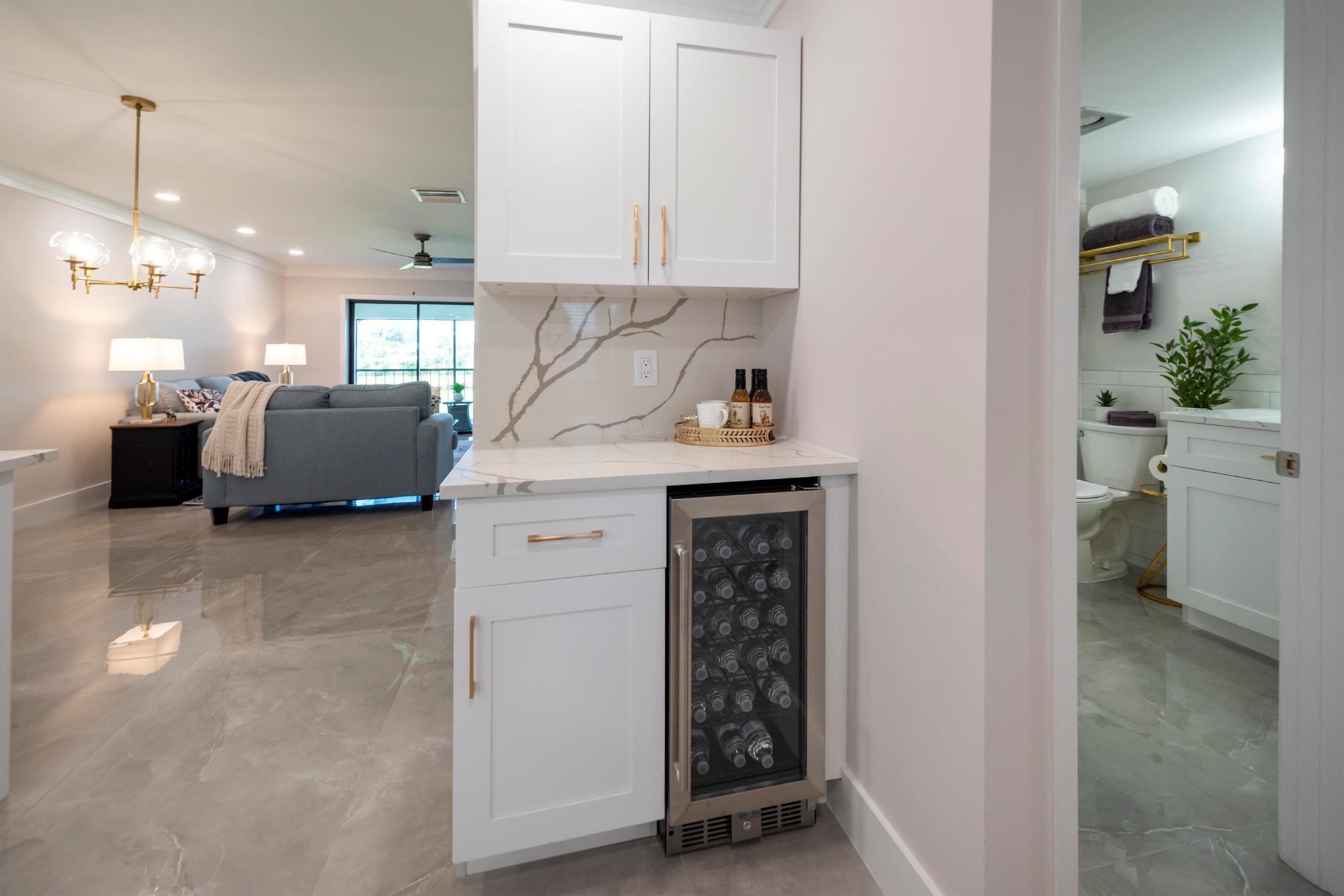 Beautifully remodeled 2/2 condo located in the highly sought-after 55+ Boca Lago golf community. Condo is filled with designer touches including ceramic tile throughout, fully updated kitchen and bathrooms with quartz countertops and backsplash, stainless appliances, wine cooler, designer hardware and ceiling fans. Beautiful view of the golf course from a screened-in porch. Located in the heart of West Boca with quick access to amazing shopping and dining. Golf and country club membership available but not mandatory.